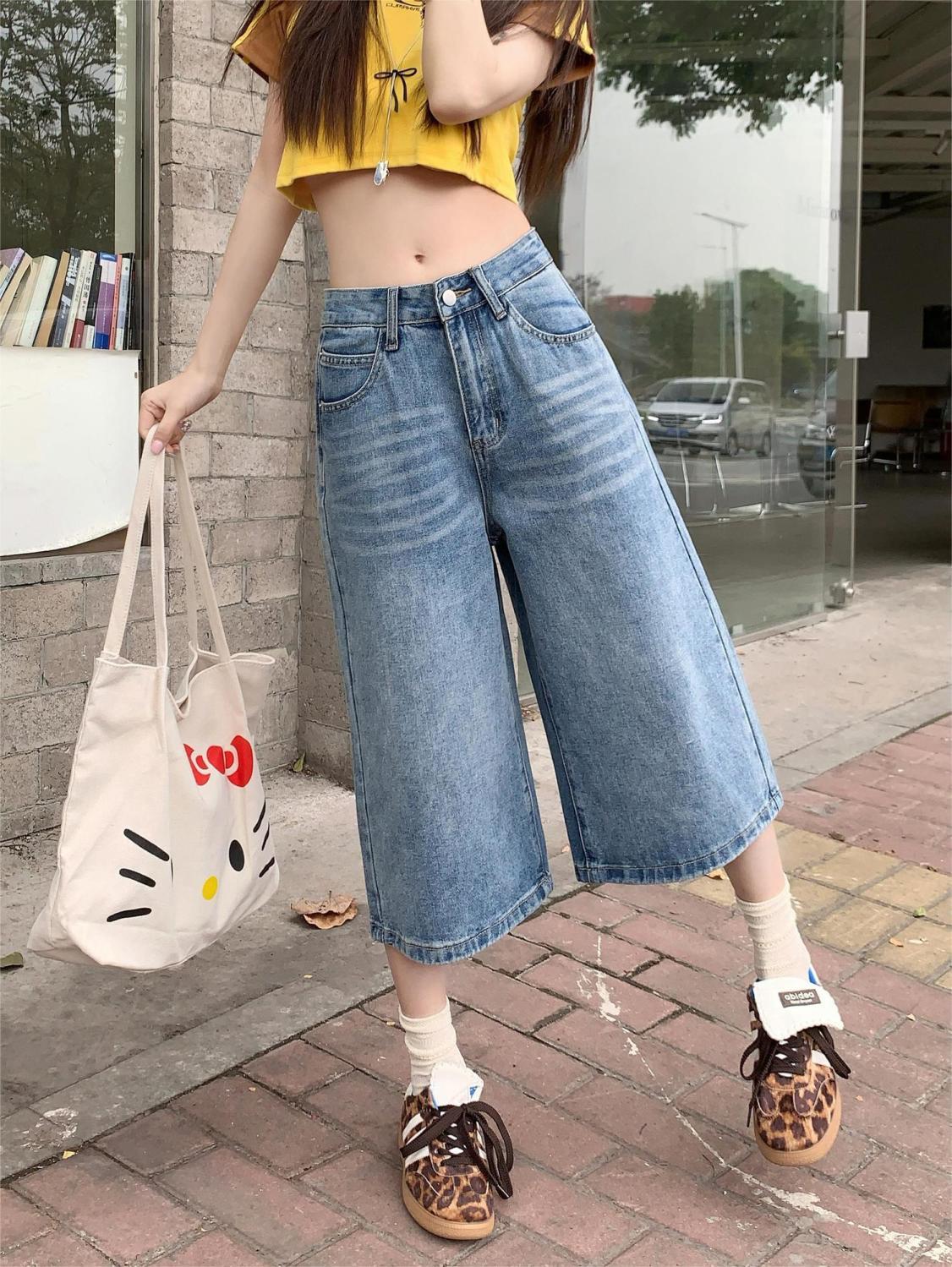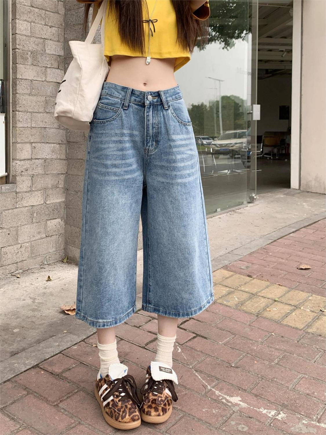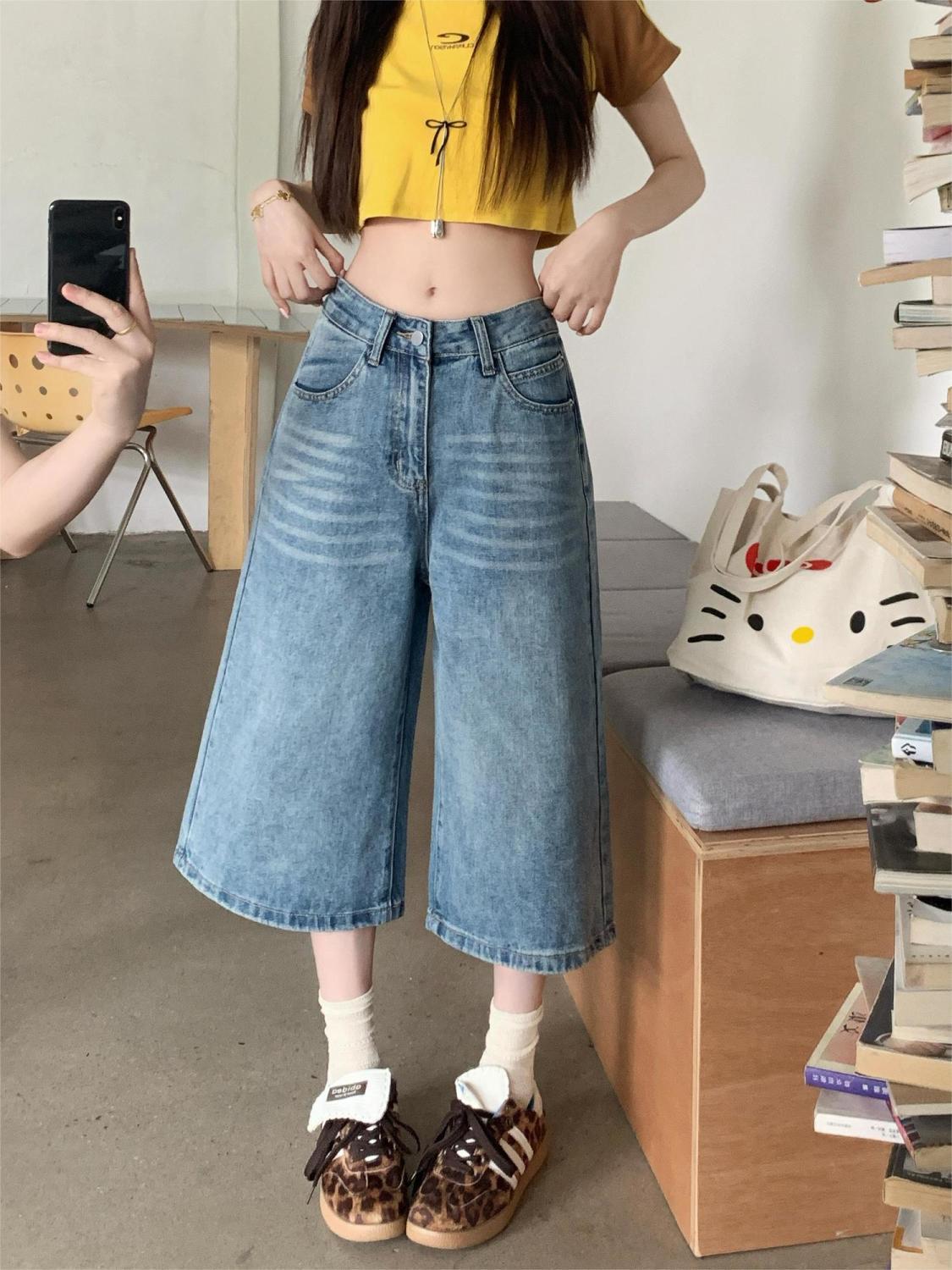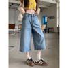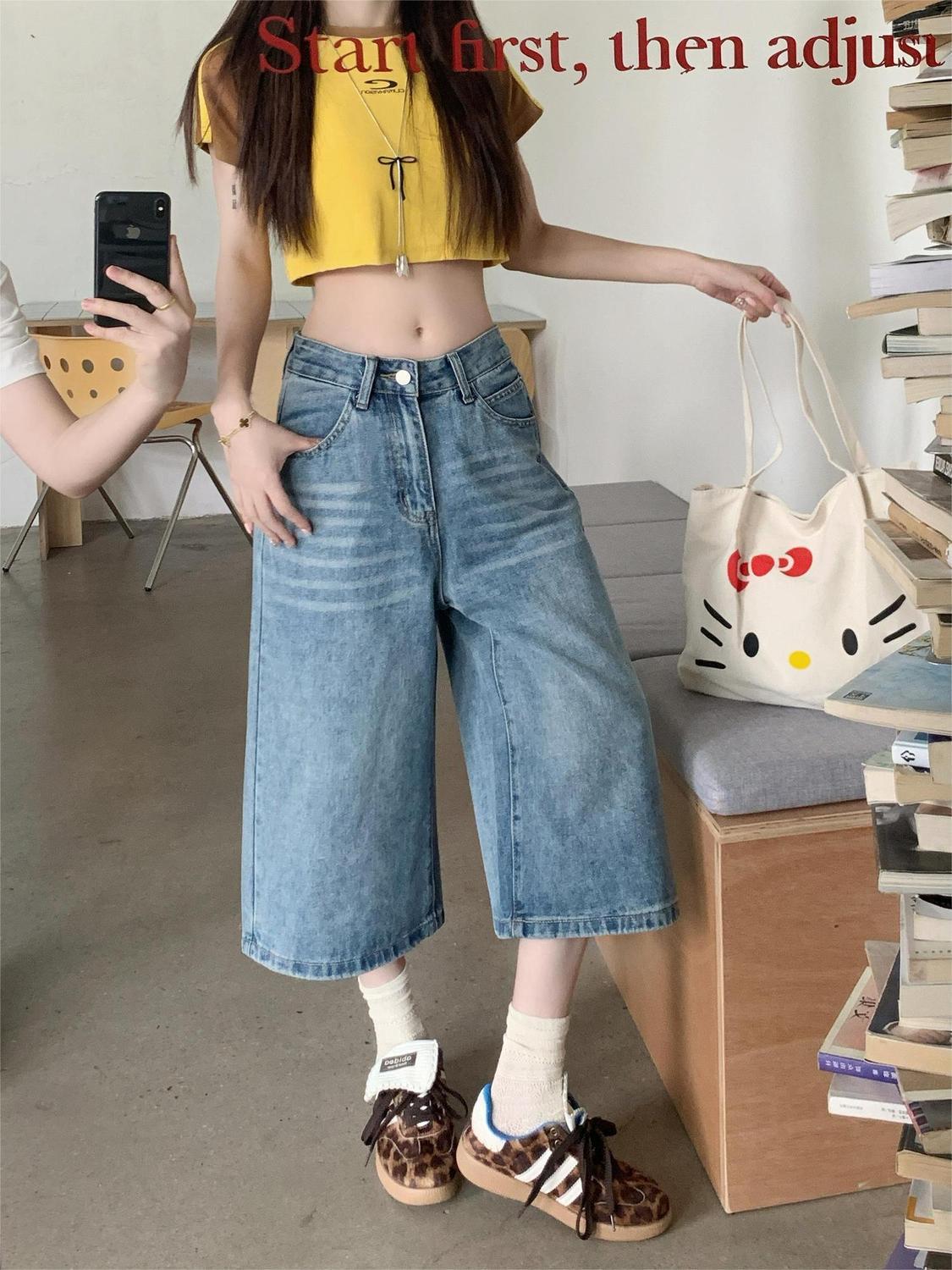 Jeans Americanos Retro de Cintura Alta Sueltos Cortos para Mujer 2025 Nuevos Rectos Adelgazantes Figura de Pera Pantalones Cortos de Pierna Ancha