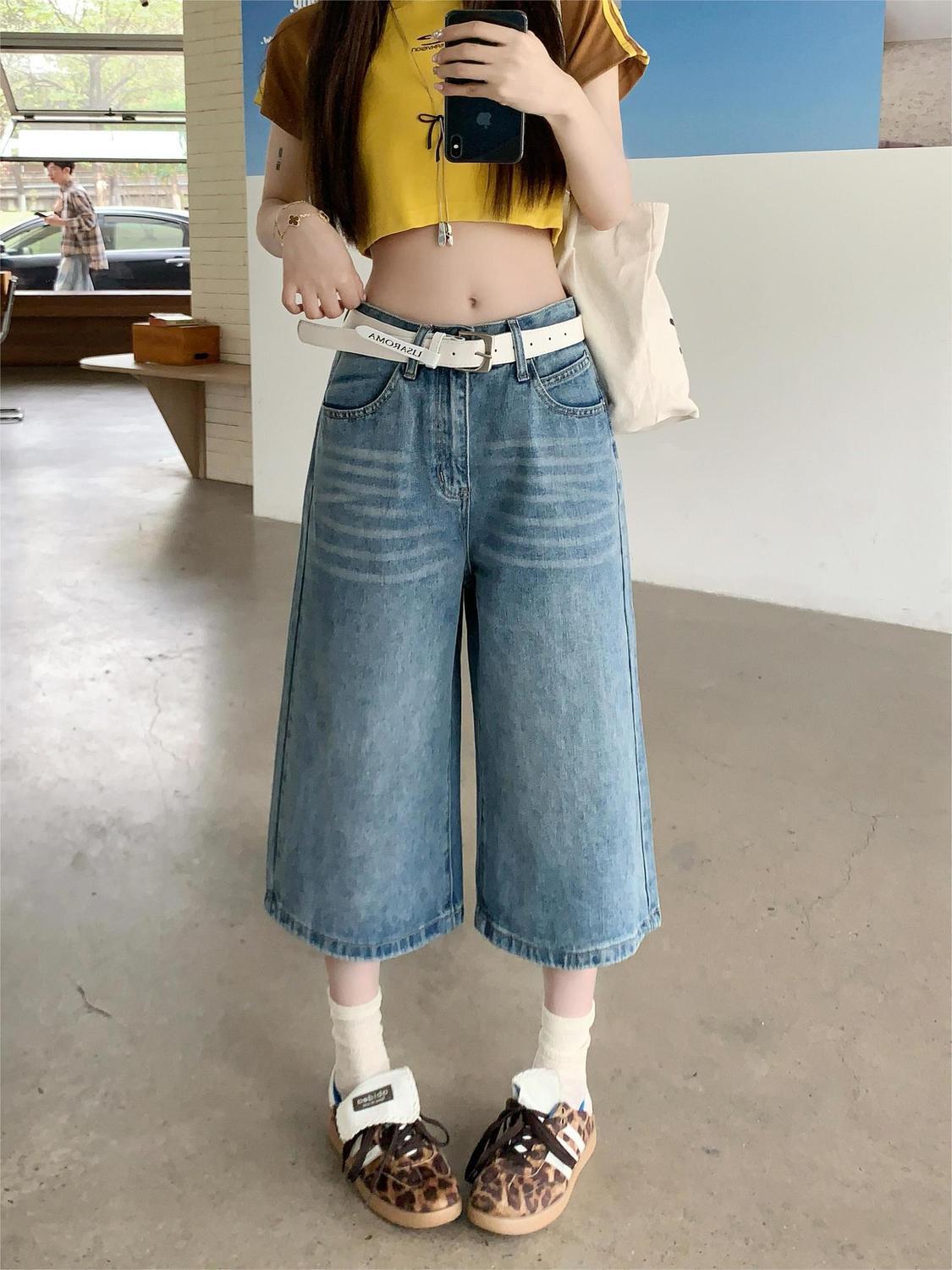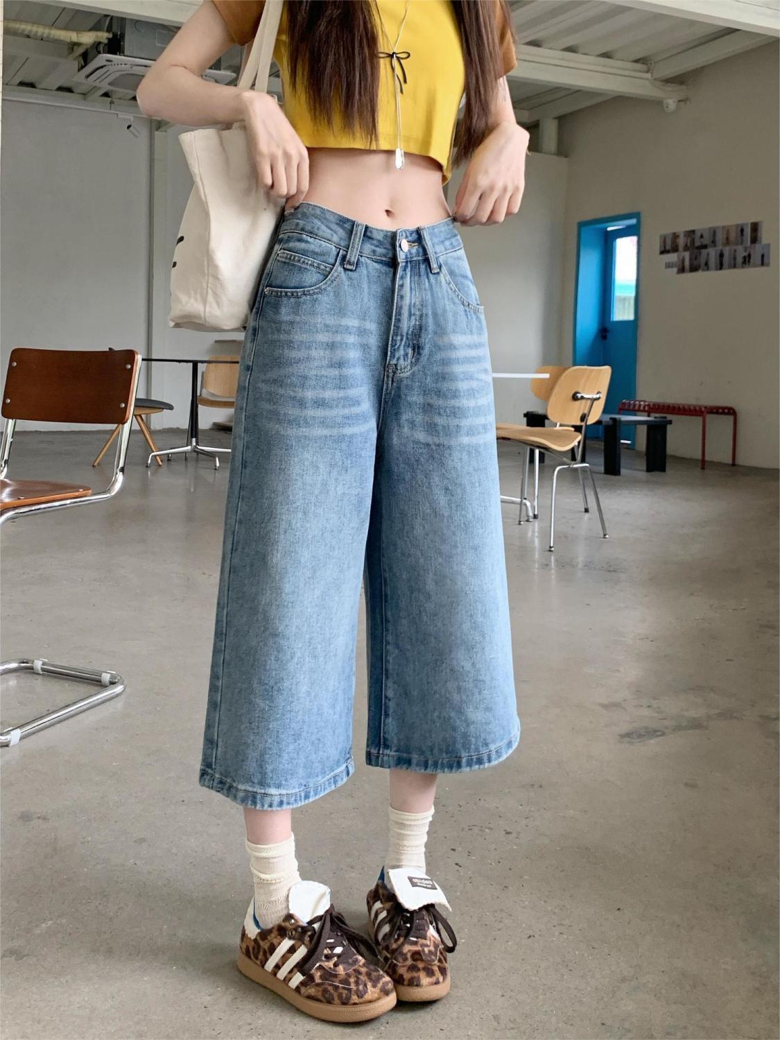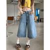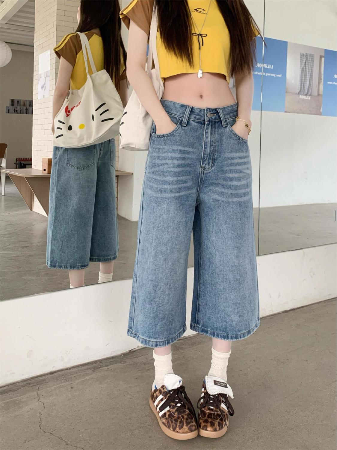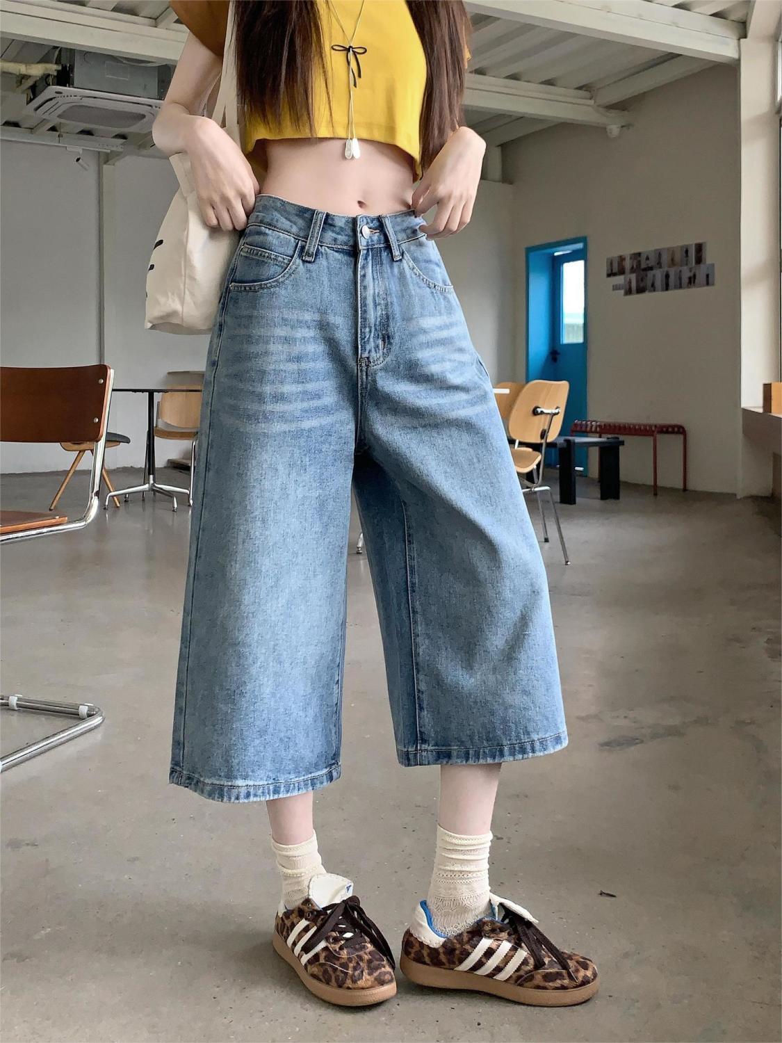 Jeans Americanos Retro de Cintura Alta Sueltos Cortos para Mujer 2025 Nuevos Rectos Adelgazantes Figura de Pera Pantalones Cortos de Pierna Ancha