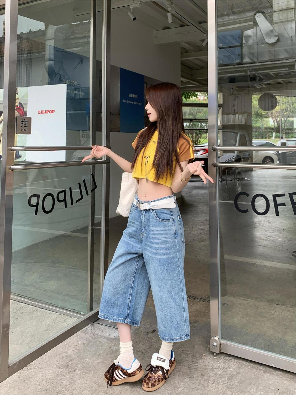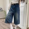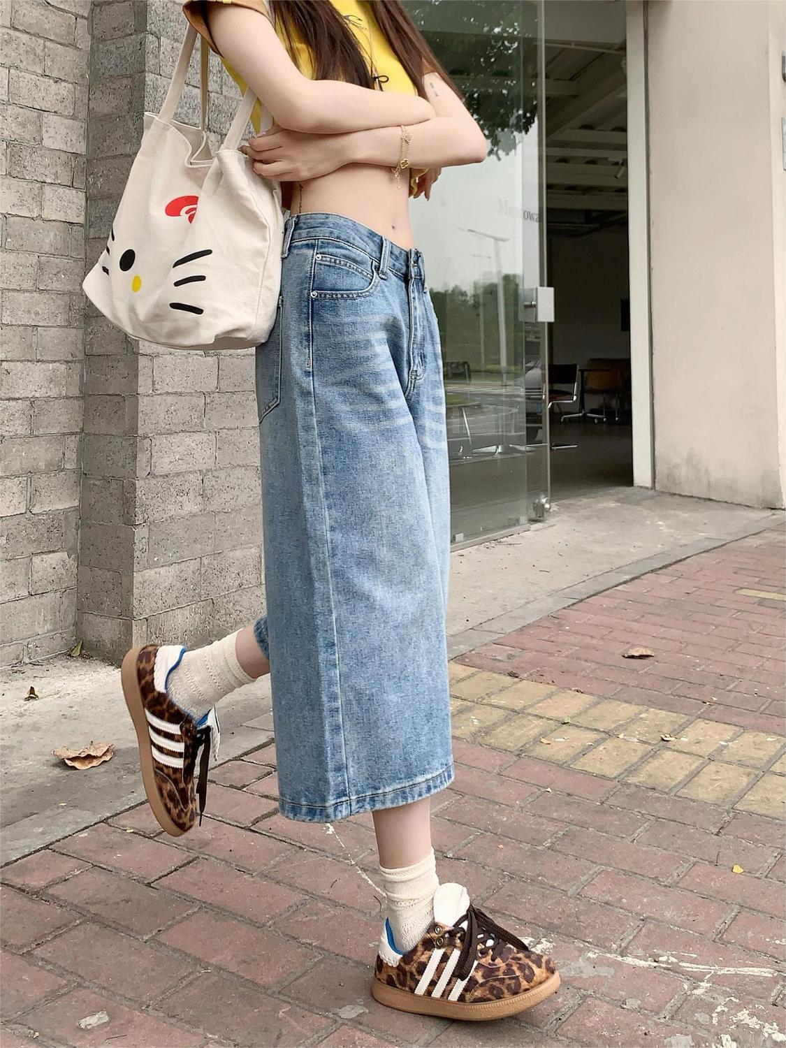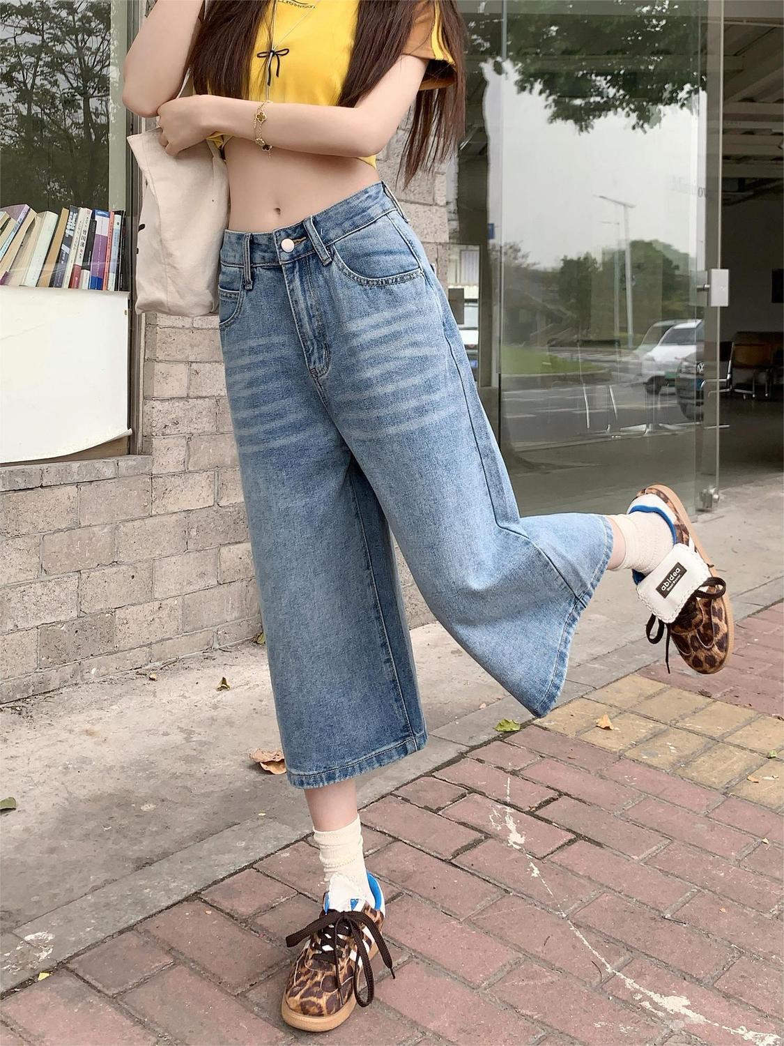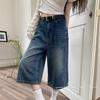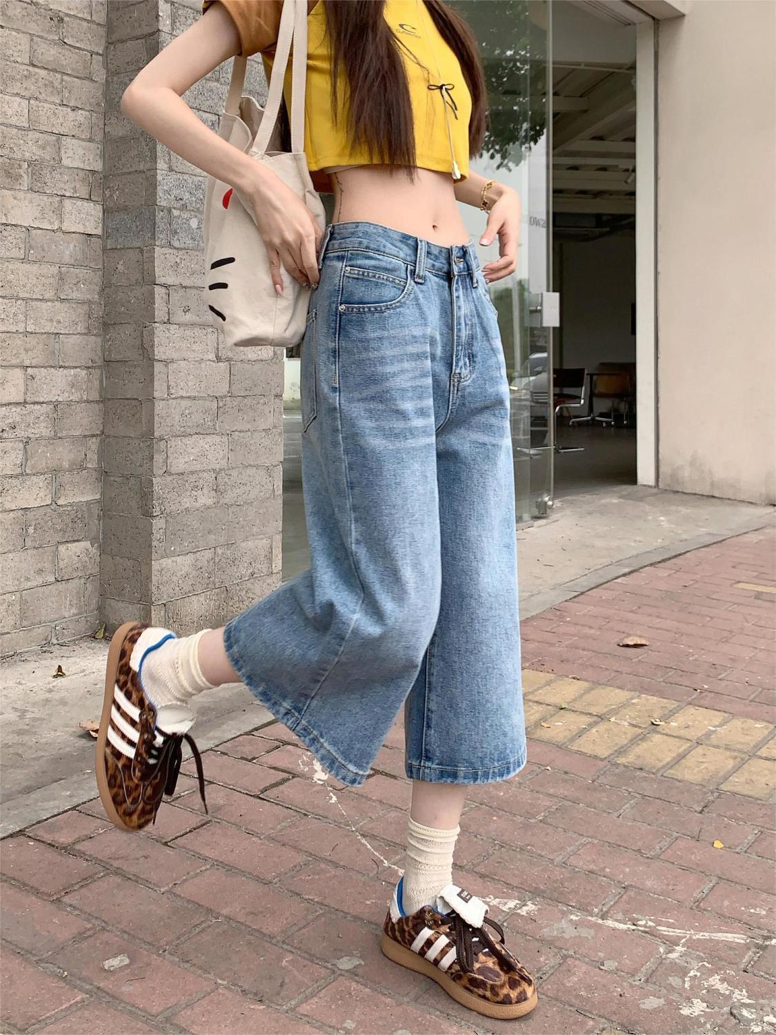 Jeans Americanos Retro de Cintura Alta Sueltos Cortos para Mujer 2025 Nuevos Rectos Adelgazantes Figura de Pera Pantalones Cortos de Pierna Ancha