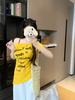 Camiseta de Mujer de Verano 2025 con Estampado de Letras de Diseño Sensato en el Hombro, Manga Corta, Irregular, Ajustada, Adelgazante, Versátil, Top de Moda
