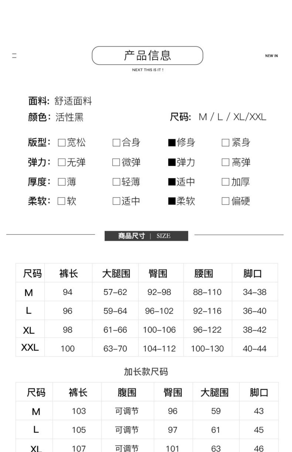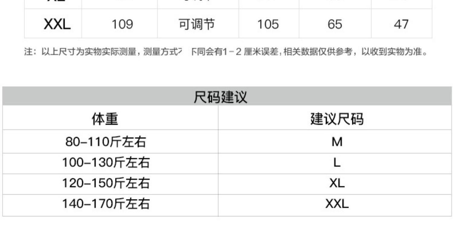 One size fits all ( 45-57.5kg ), Large size ( 57.5-67.5kg ), Plus size ( 67.5-82.5kg, Extra large size ( 82.5-100kg )