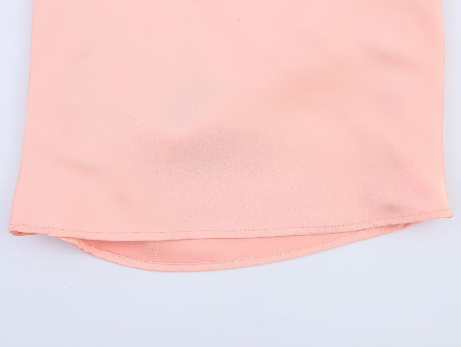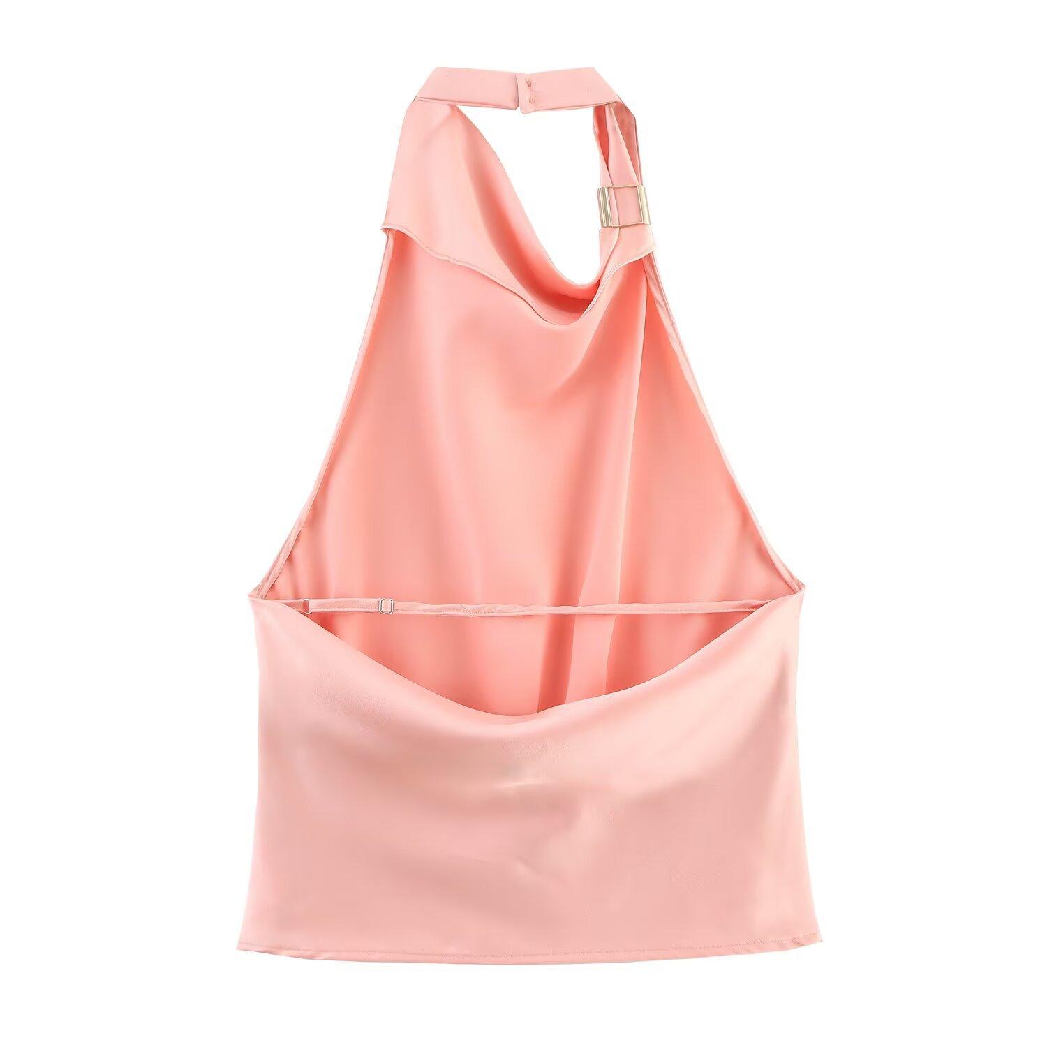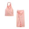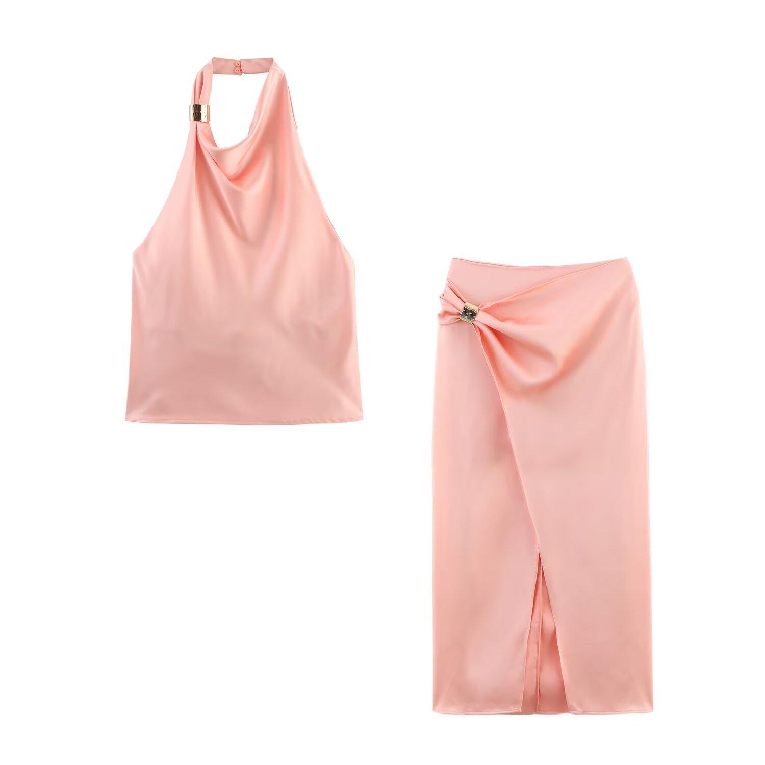Ropa de Mujer Transfronteriza Europea y Americana 2025 Nuevo Verano Moda Sexy Diseño Descubierto Top de Satén + Falda Midi de Cintura Alta