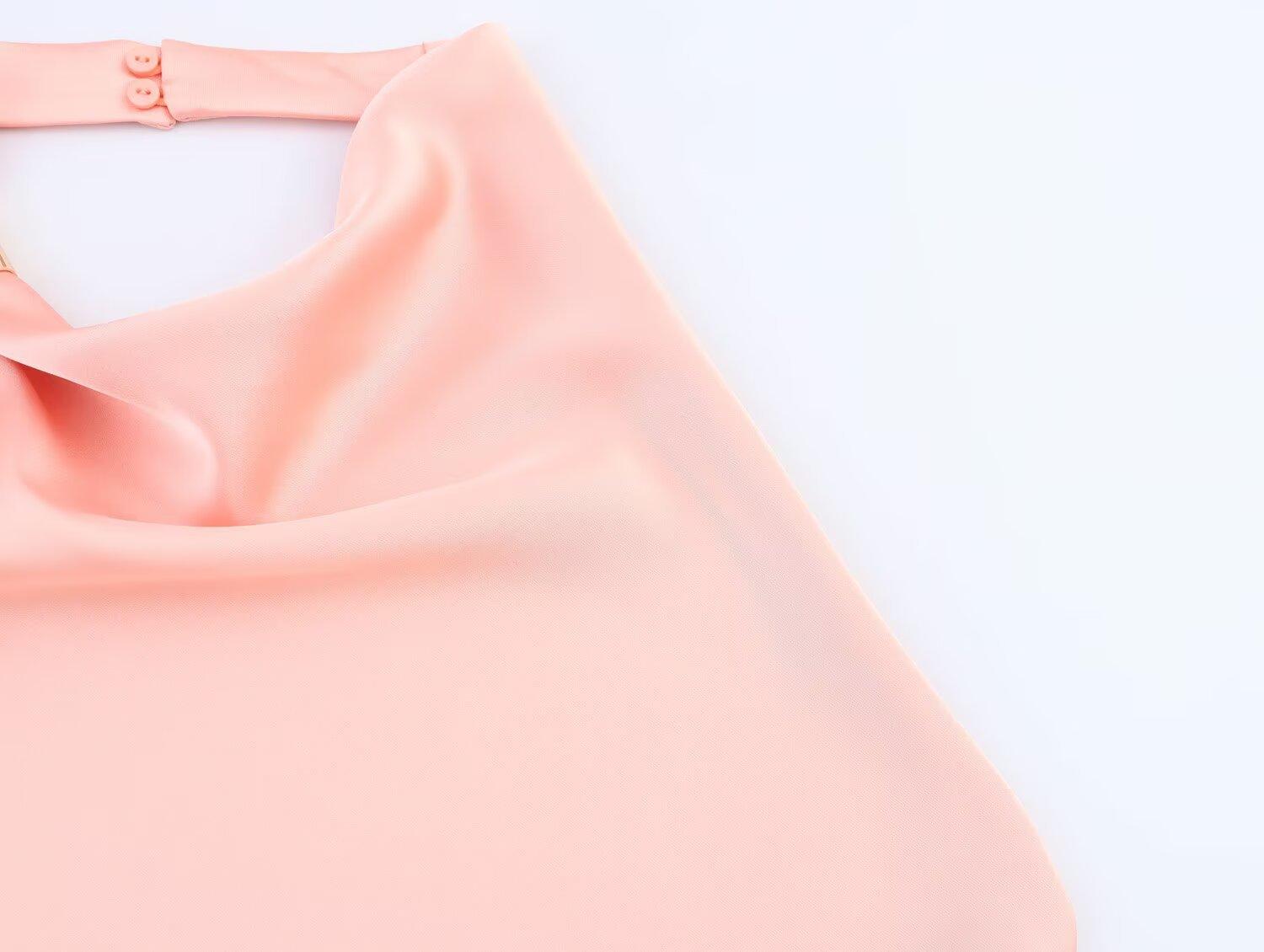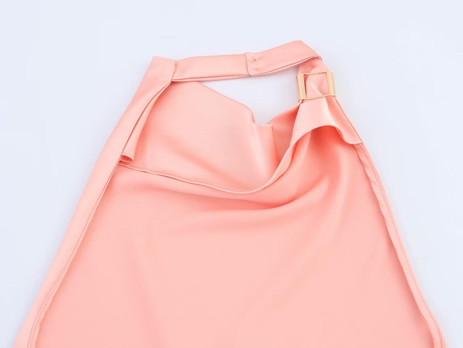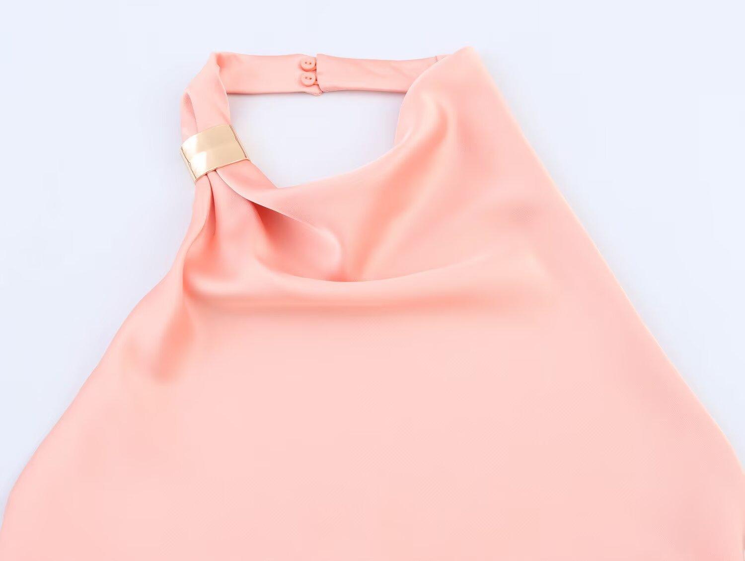 Ropa de Mujer Transfronteriza Europea y Americana 2025 Nuevo Verano Moda Sexy Diseño Descubierto Top de Satén + Falda Midi de Cintura Alta