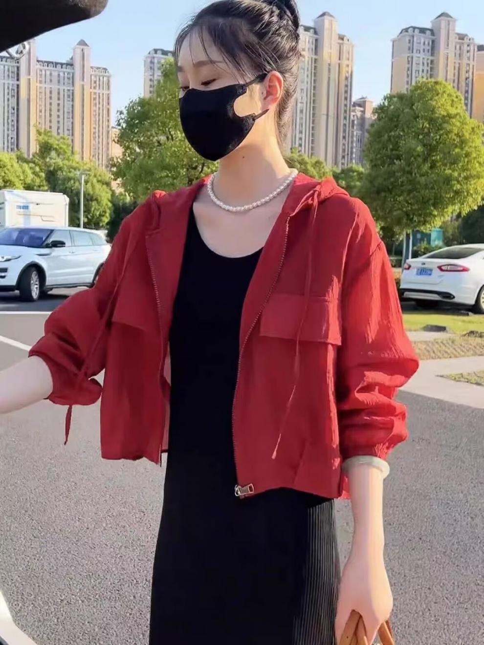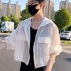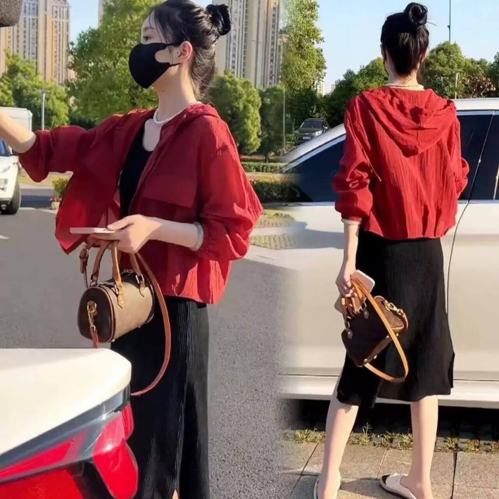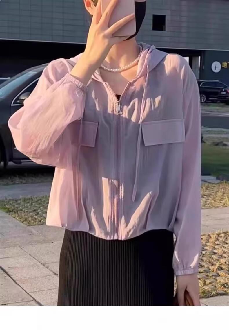 2025 Nuevo Color de Verano Chaqueta Corta Holgada Top Estilo Coreano con Capucha Versátil Ligera Ropa de Protección Solar para Mujer