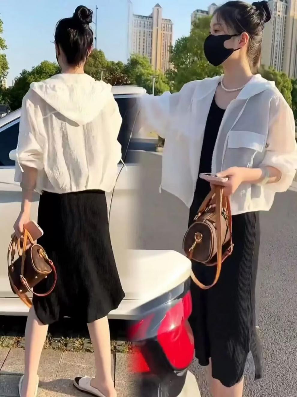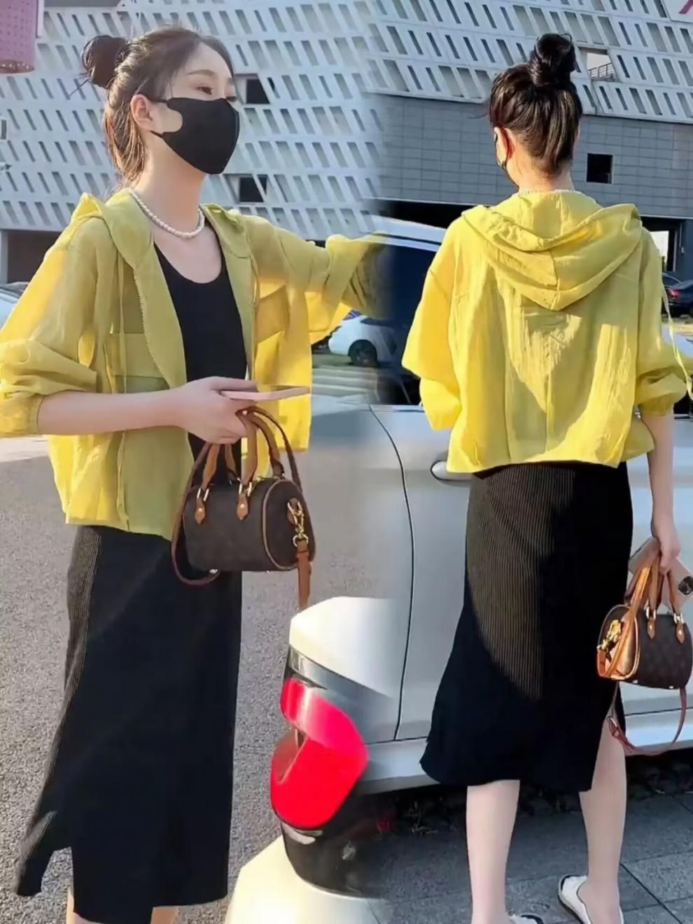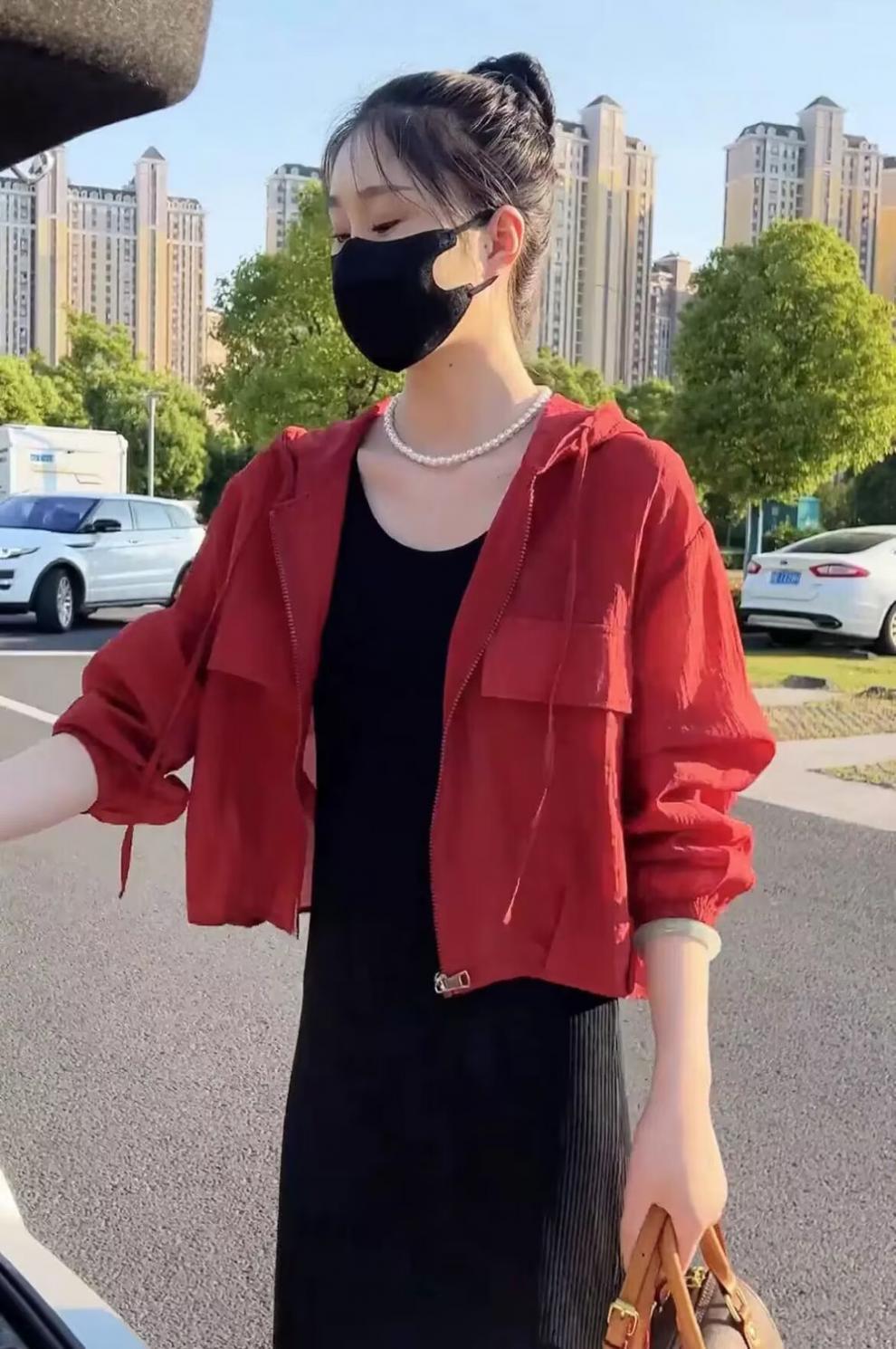 2025 Nuevo Color de Verano Chaqueta Corta Holgada Top Estilo Coreano con Capucha Versátil Ligera Ropa de Protección Solar para Mujer