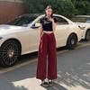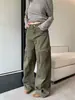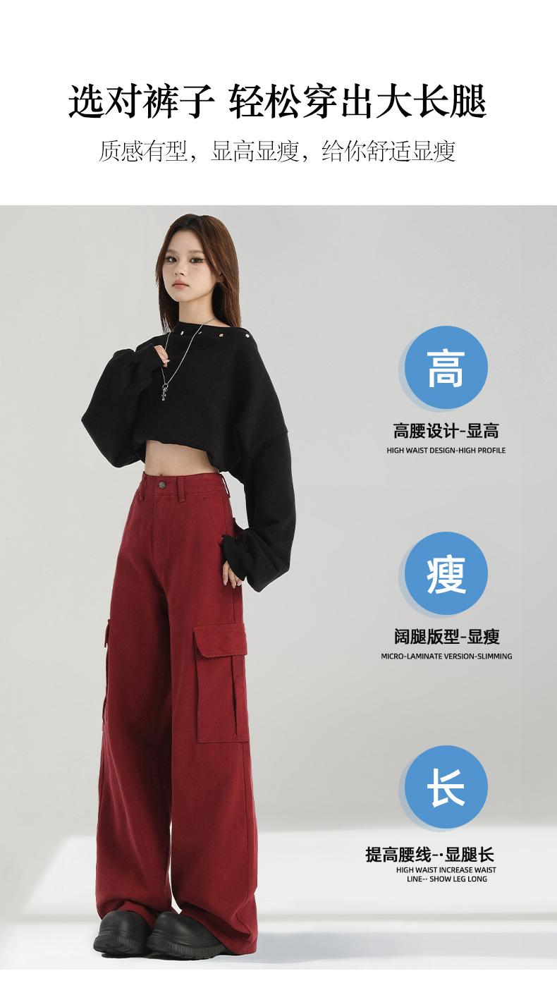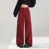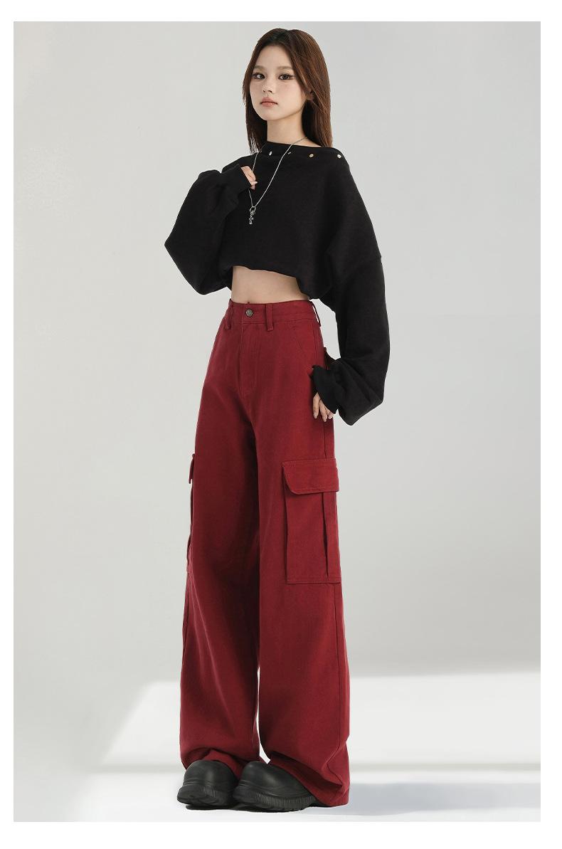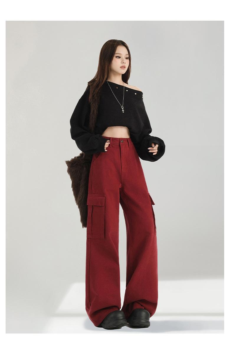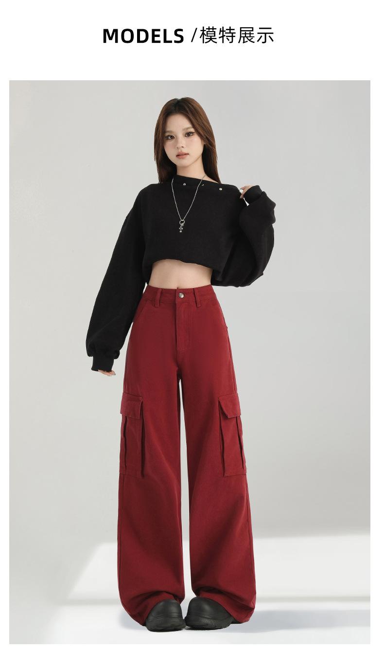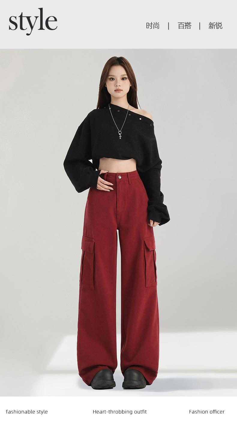 Ankesela Pantalones Cargo Rojos Jeans para Mujer Otoño 2025 Nuevo Diseño de Pantalones con Bolsillos de Múltiples Solapas Pantalones Holgados de Pierna Ancha