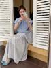 Kaiyu Shang LSARAJ Verano Estilo Coreano Verano Nuevo Estilo Dama Elegante Combinación Total Aspecto Delgado Vestido Floral de Media Longitud con Orejas de Madera