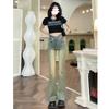 Jeans Retro de Cintura Alta Estilo Americano Jeans Micro-Lar Elásticos Viejos Nuevo Corte Slim Adelgazantes Pantalones Herradura Pantalones Bordados
