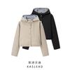 2024 Nueva Ropa de Invierno para Mujer Estilo Europeo y Americano Moda Sencilla Versátil Chaqueta Corta de Algodón Bicolor con Capucha