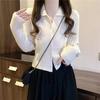 Otoño e Invierno Nuevo Abrigo Suéter de Solapa Diseño Nicho Slim Top Base Interior Cárdigan Corto de Punto para Mujer