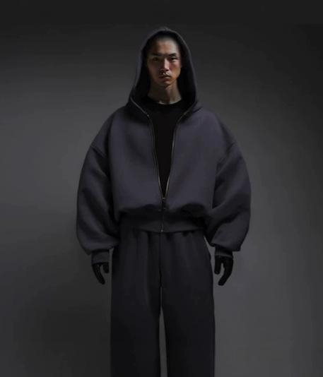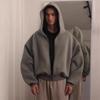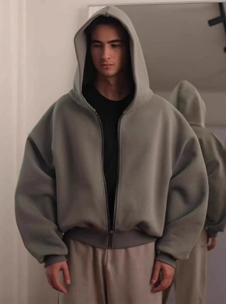 Sudadera con capucha con cremallera de nicho holgada de diseño casual de color sólido de peso pesado para otoño e invierno 2025 europea y americana al por mayor