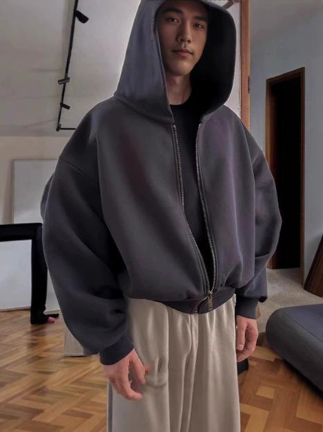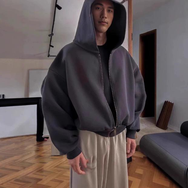 Solid color, street, design, loose, niche, zipper, hooded