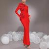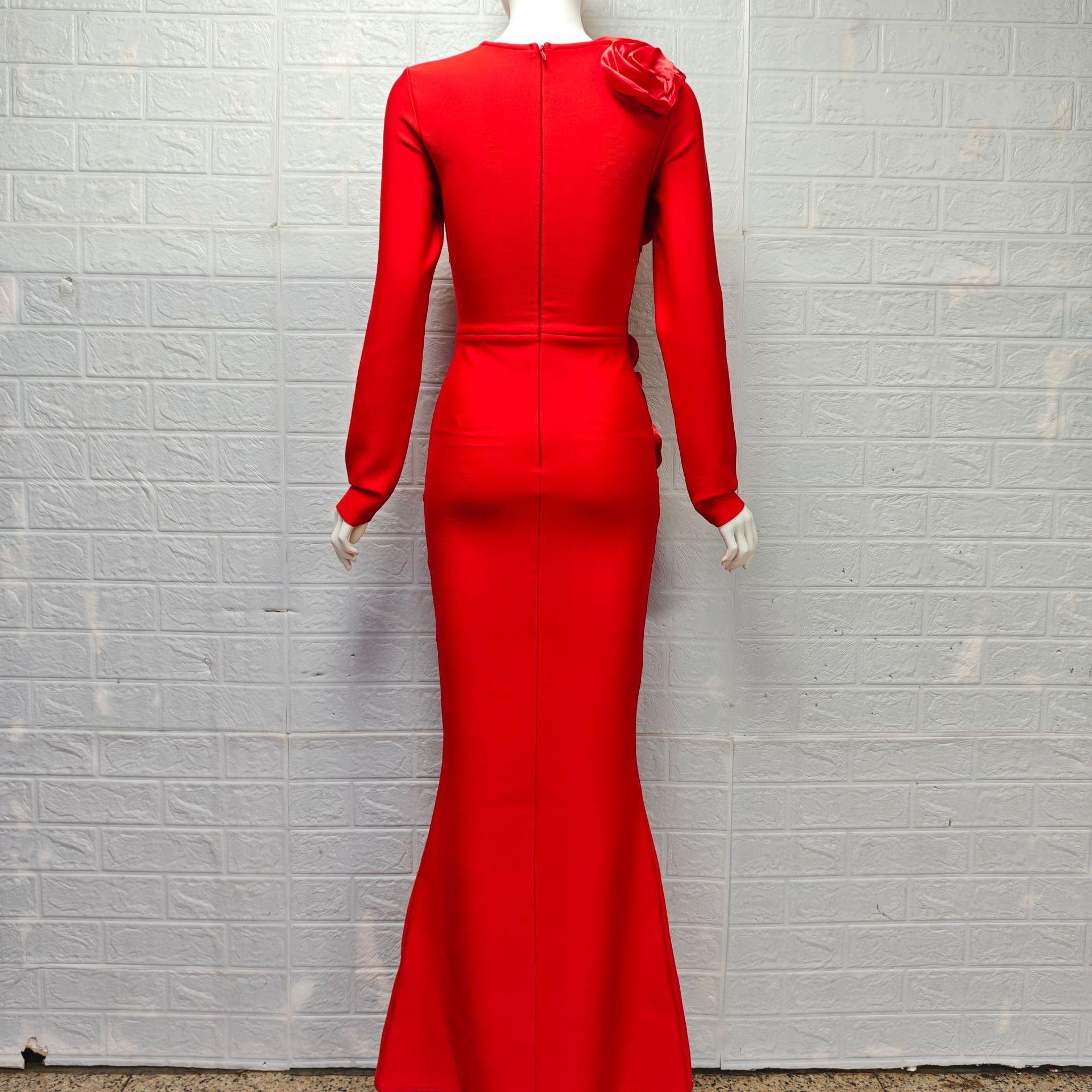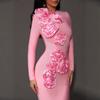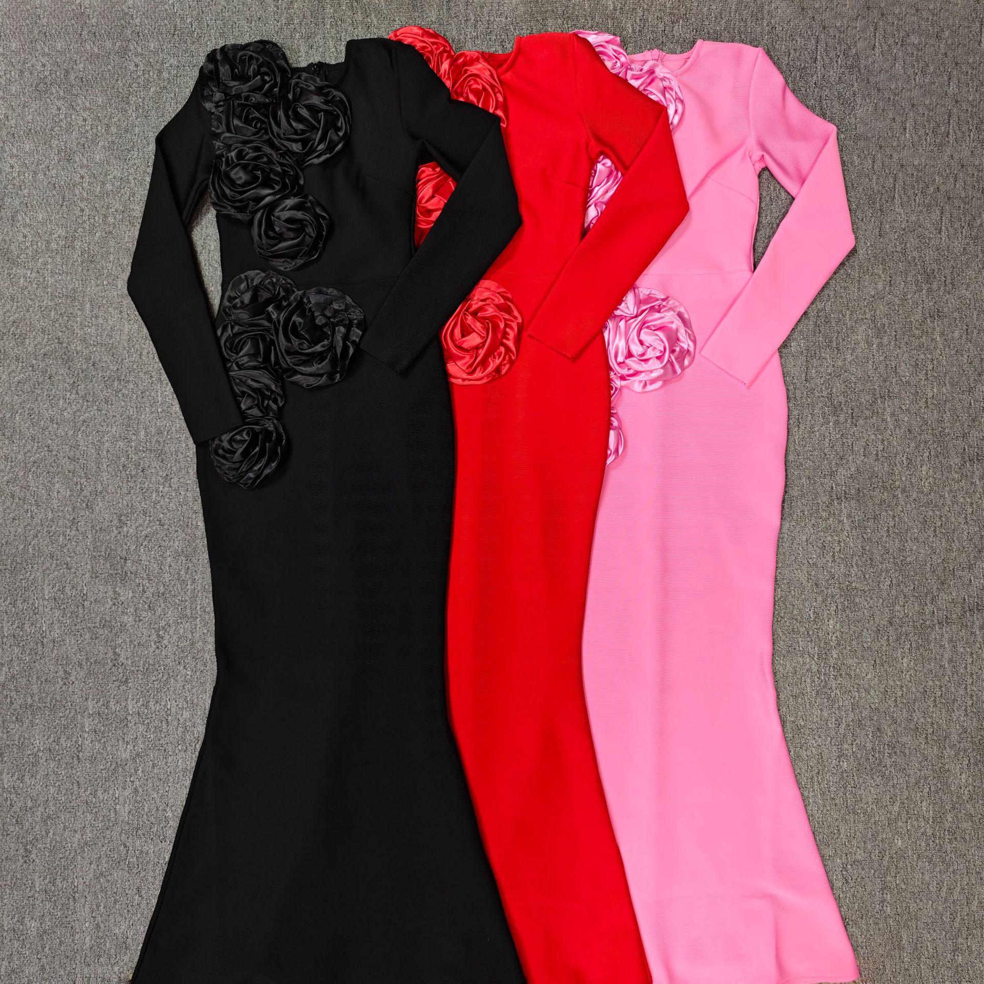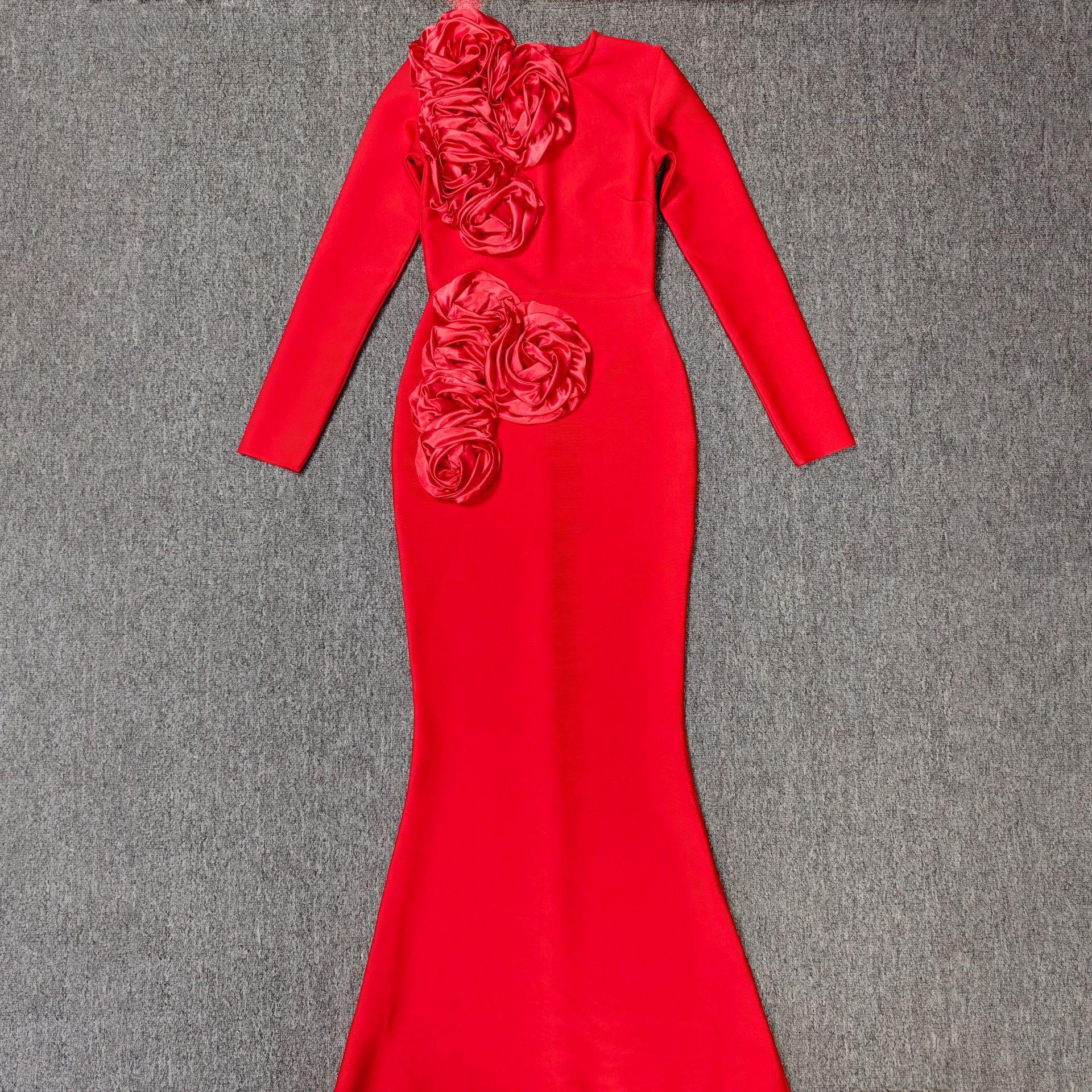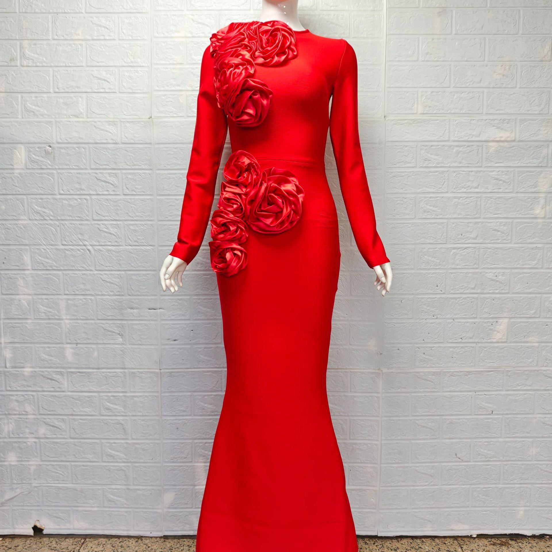 Europeo y Americano Transfronterizo Nueva Moda Flor Tridimensional Vendaje Delgado Vestido de Mujer Fiesta Cena Vestido de Noche Falda Larga