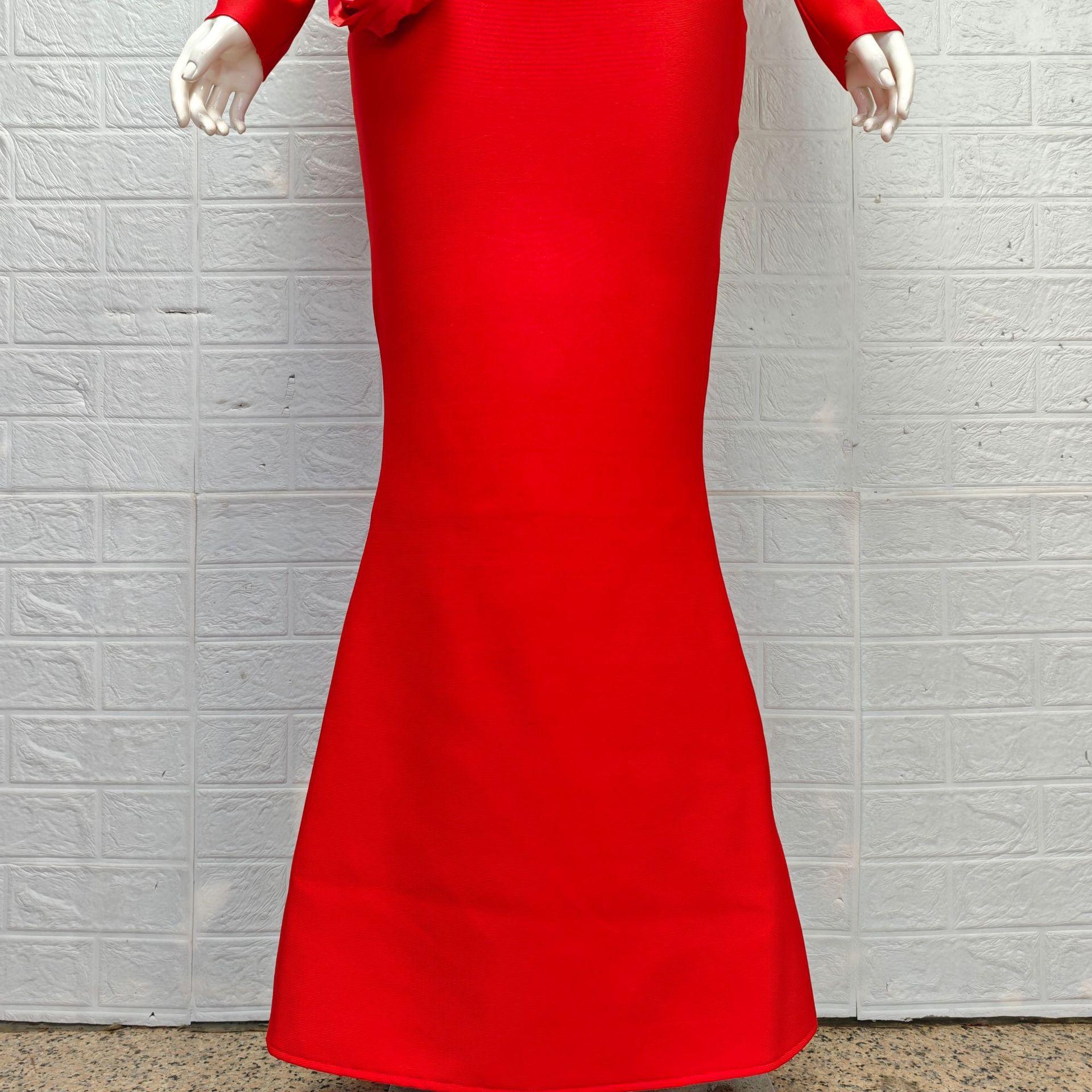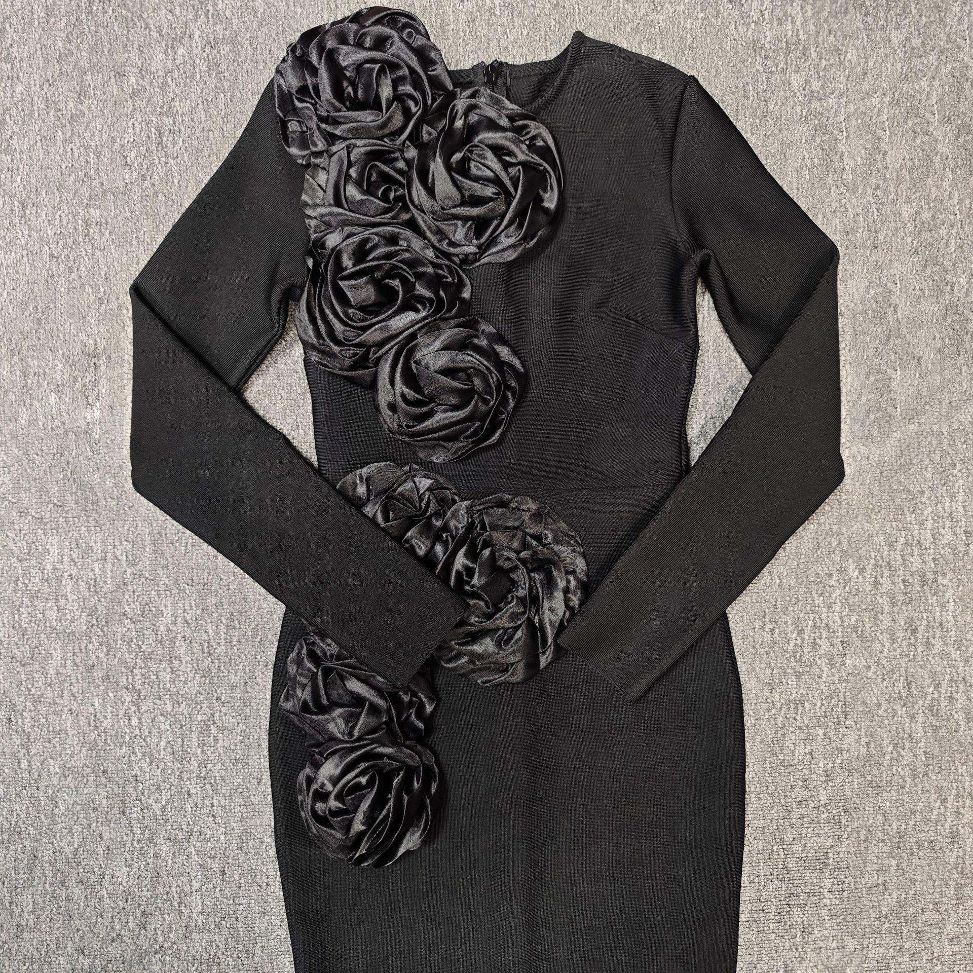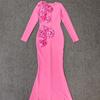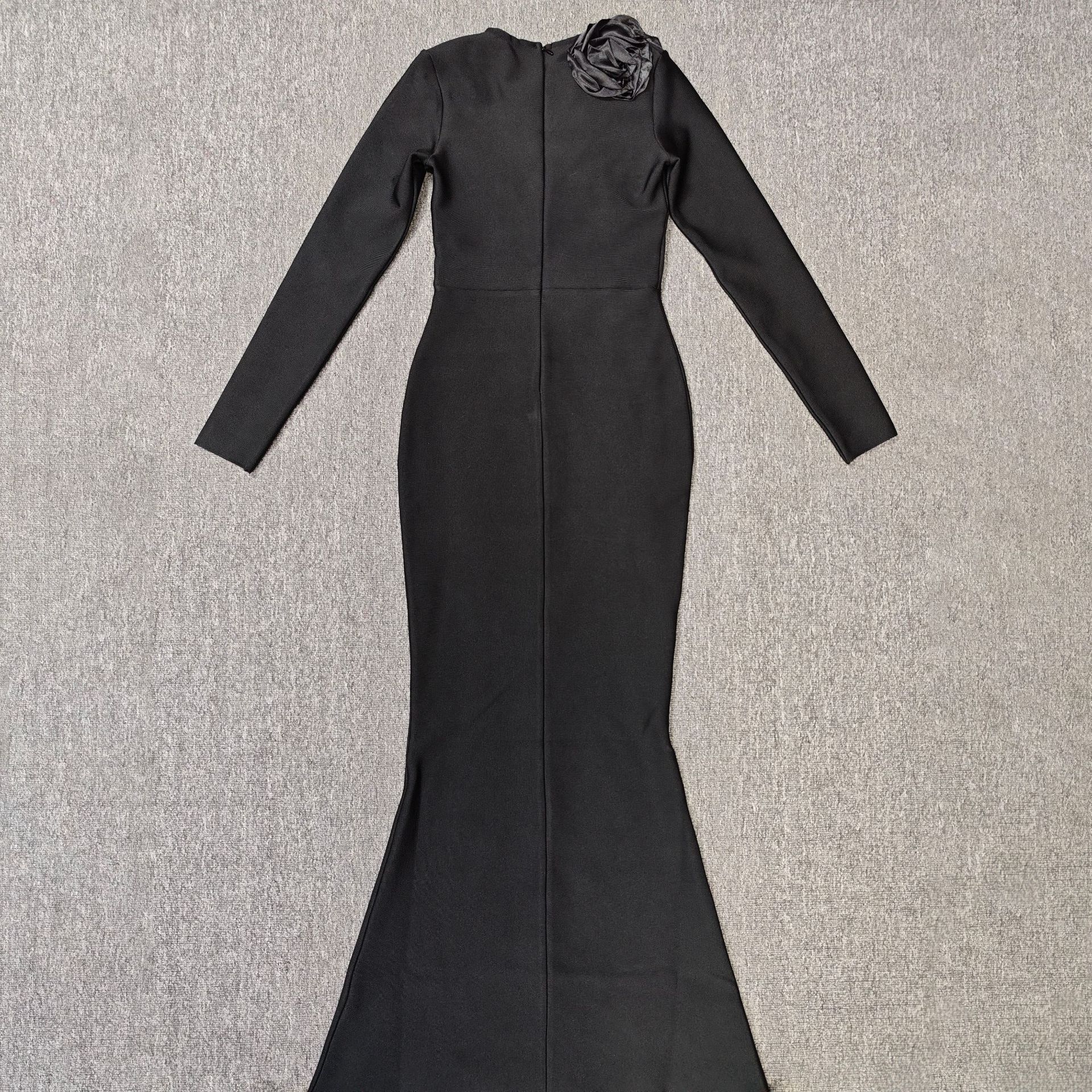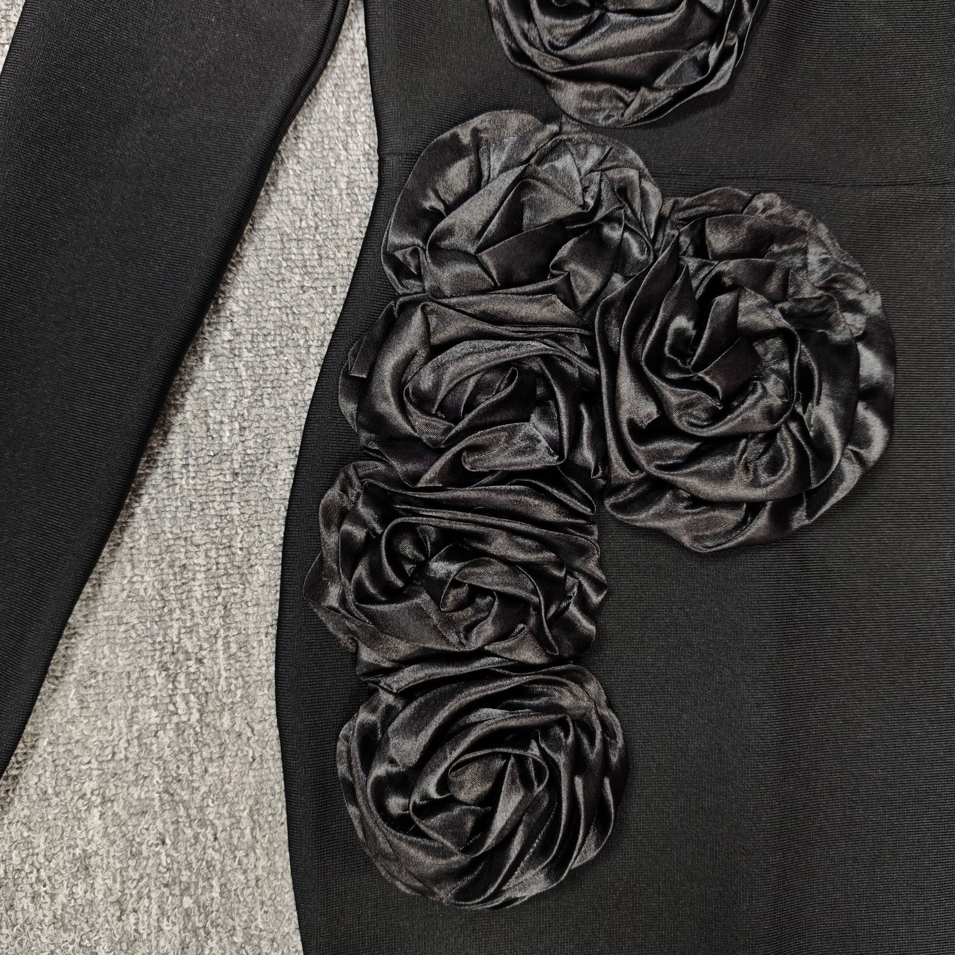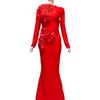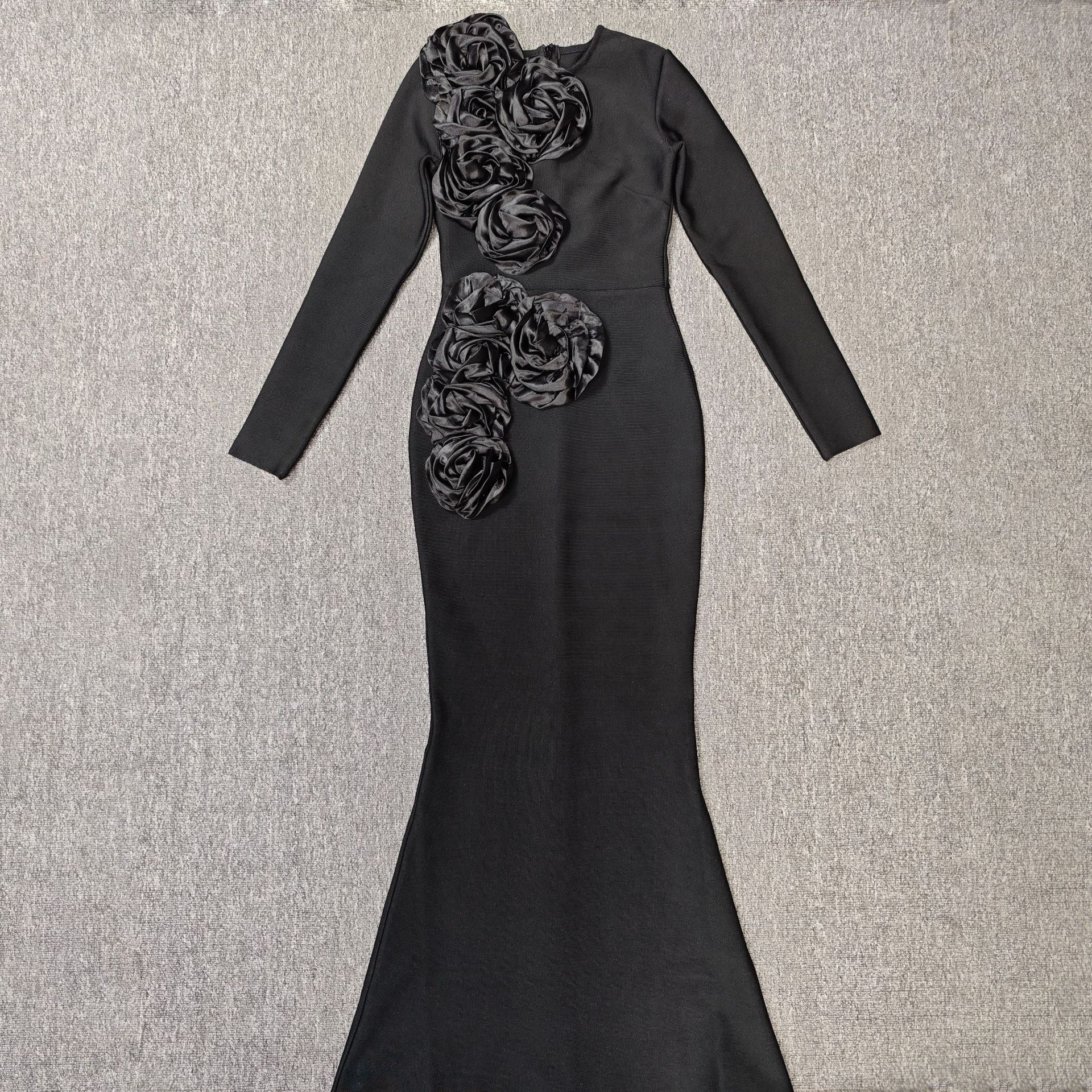 Europeo y Americano Transfronterizo Nueva Moda Flor Tridimensional Vendaje Delgado Vestido de Mujer Fiesta Cena Vestido de Noche Falda Larga
