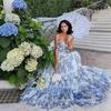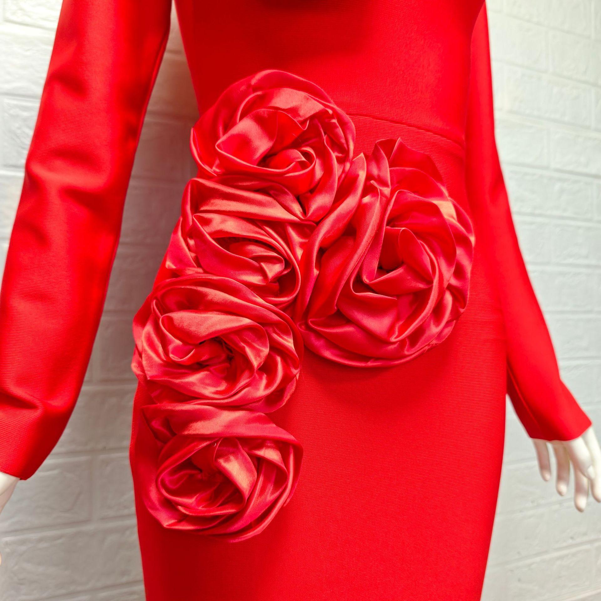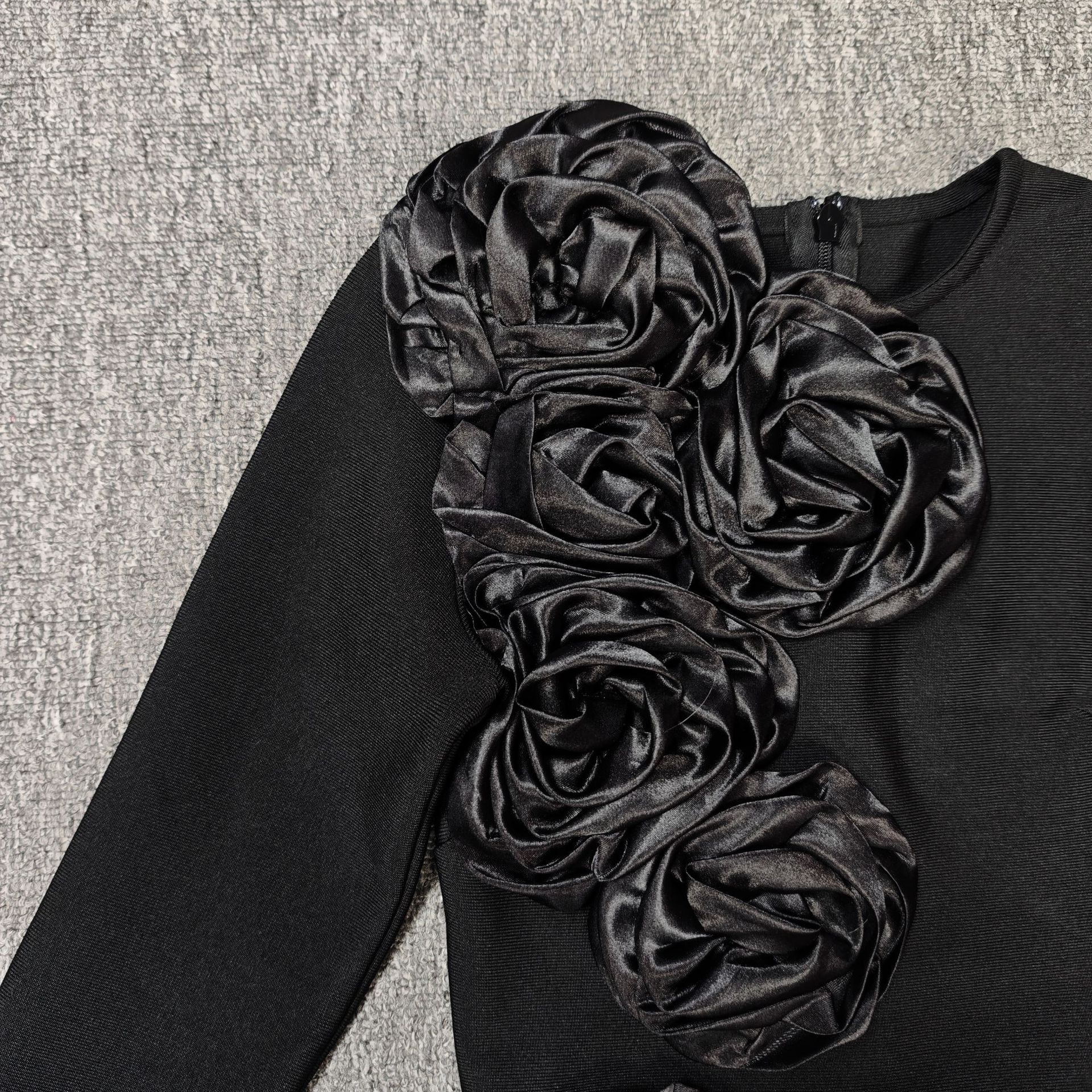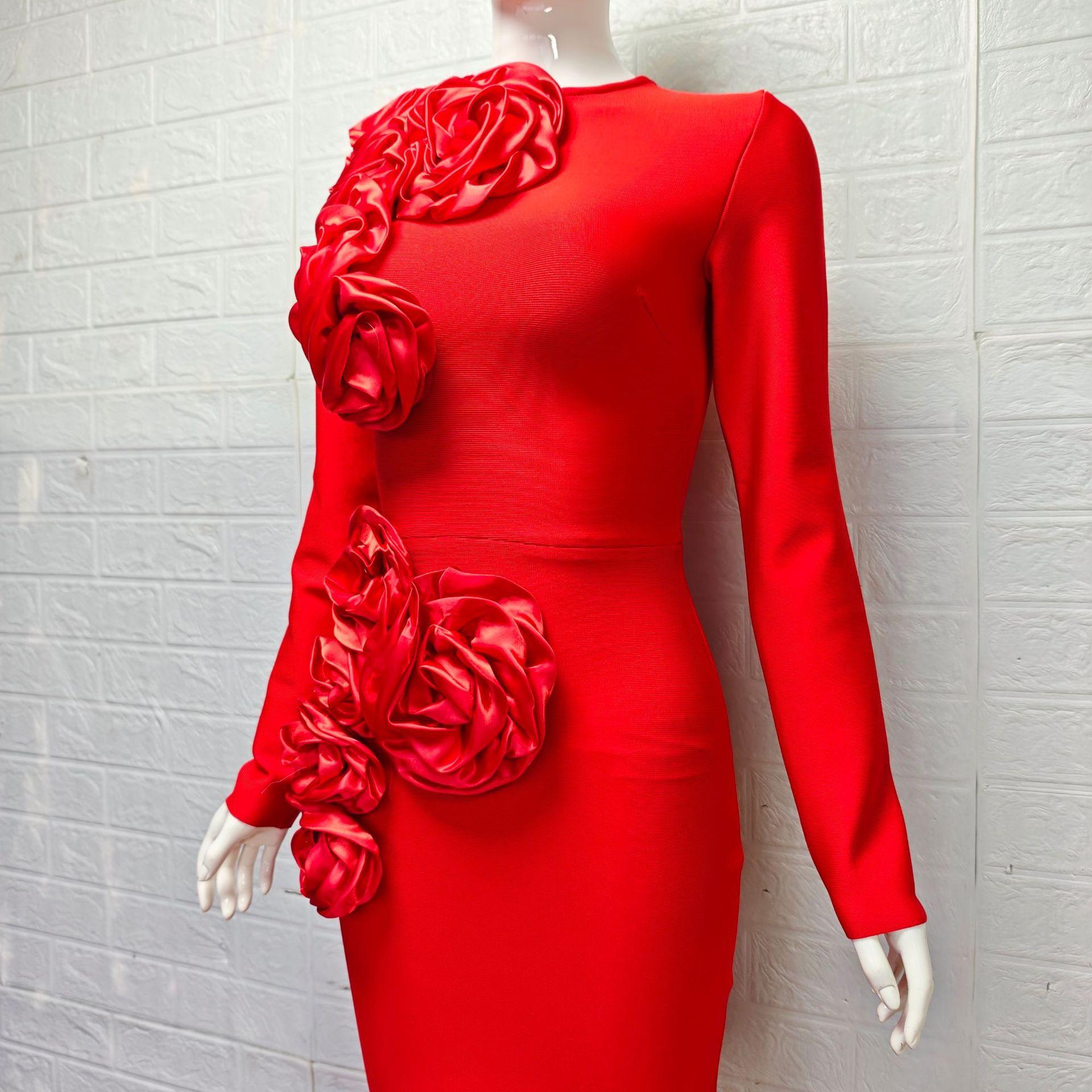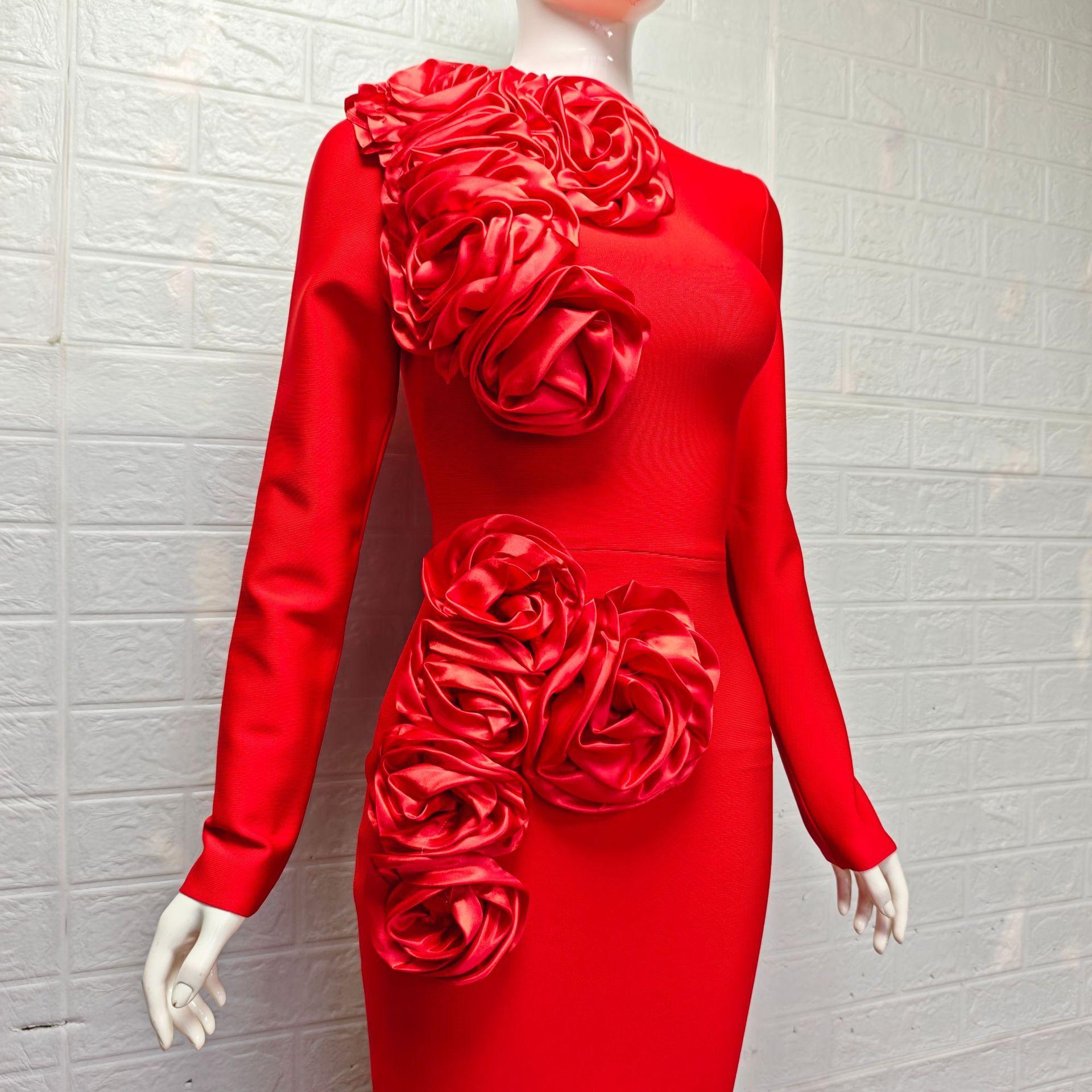 Europeo y Americano Transfronterizo Nueva Moda Flor Tridimensional Vendaje Delgado Vestido de Mujer Fiesta Cena Vestido de Noche Falda Larga