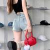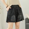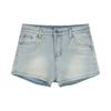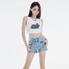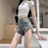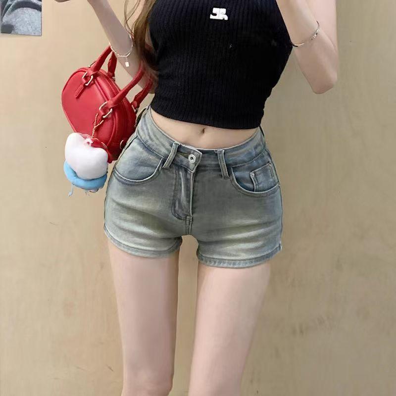 Shorts de mezclilla modernos de talle alto, corte ajustado, elásticos y desgastados para mujeres petite en verano