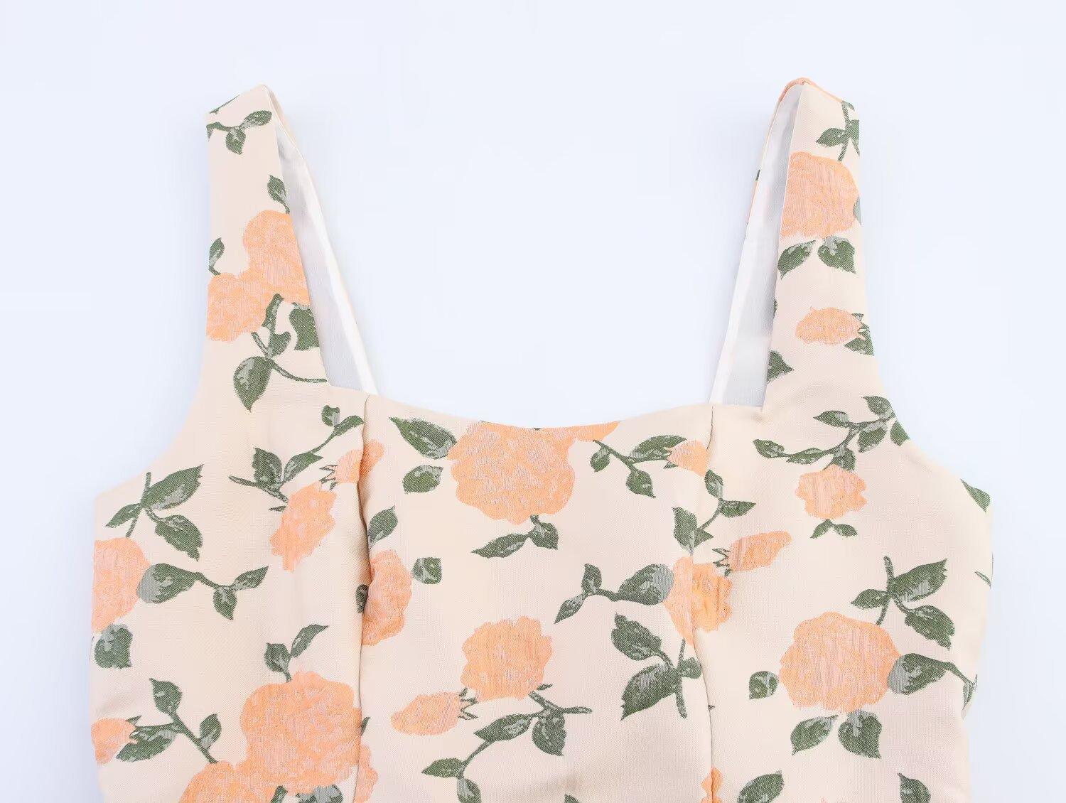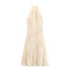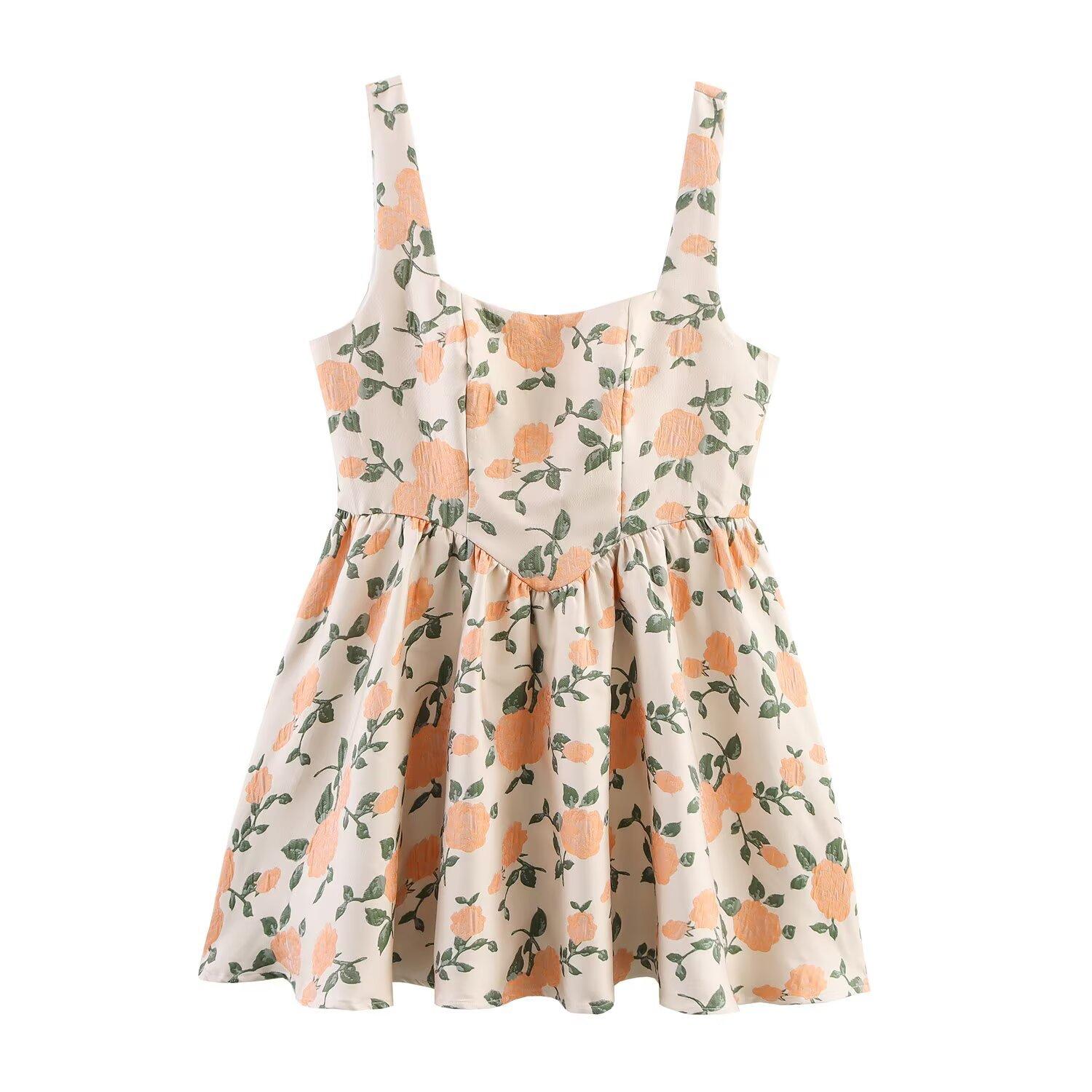 Z Transfronterizo Europeo y Americano 2025 Diseño Nicho Retro Lazo Cintura Alta Jacquard Tirantes Talla Grande Vestido