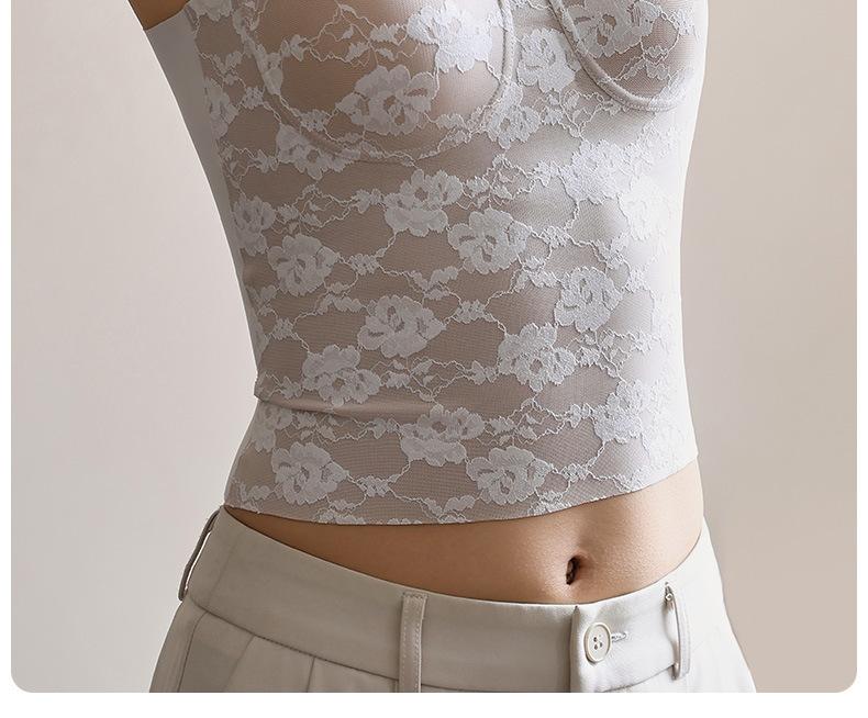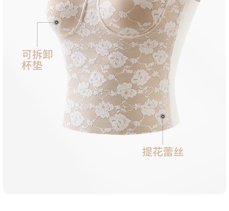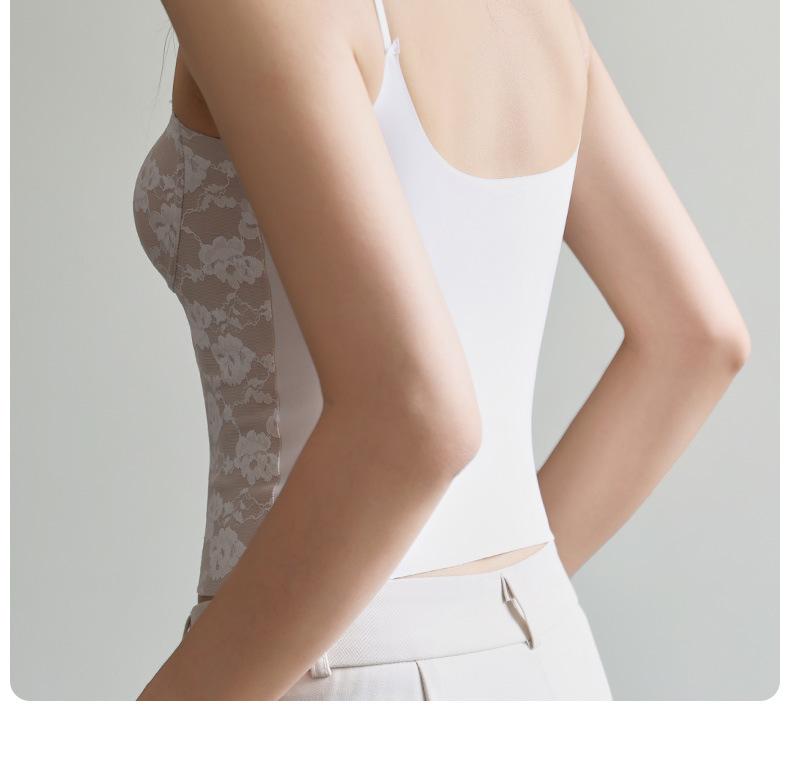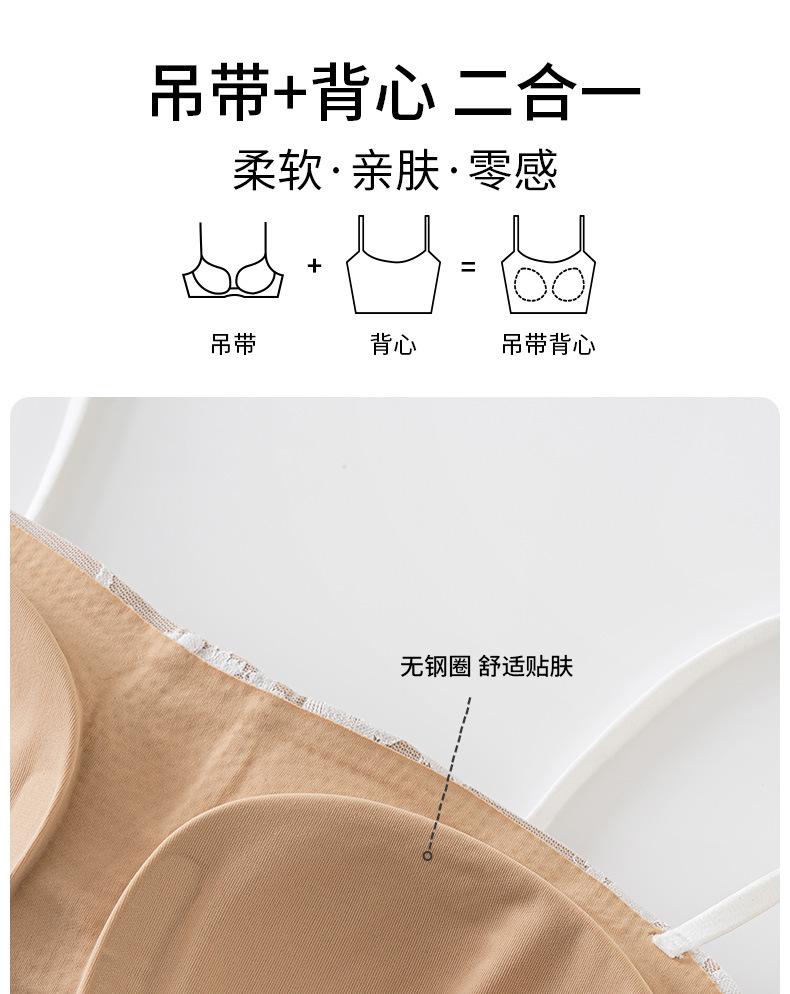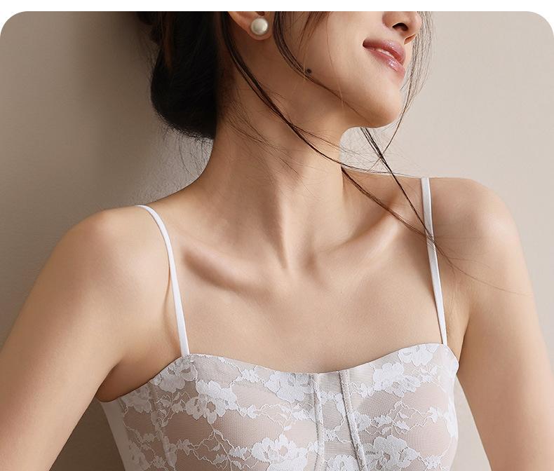 Camisola de Encaje para Mujer Verano Ropa Exterior 2025 Nueva Tirantes Finos con Almohadillas en el Busto y Hermoso Sujetador de Espalda Top Todo en Uno