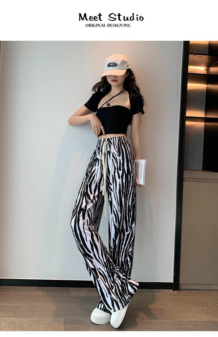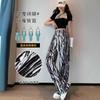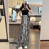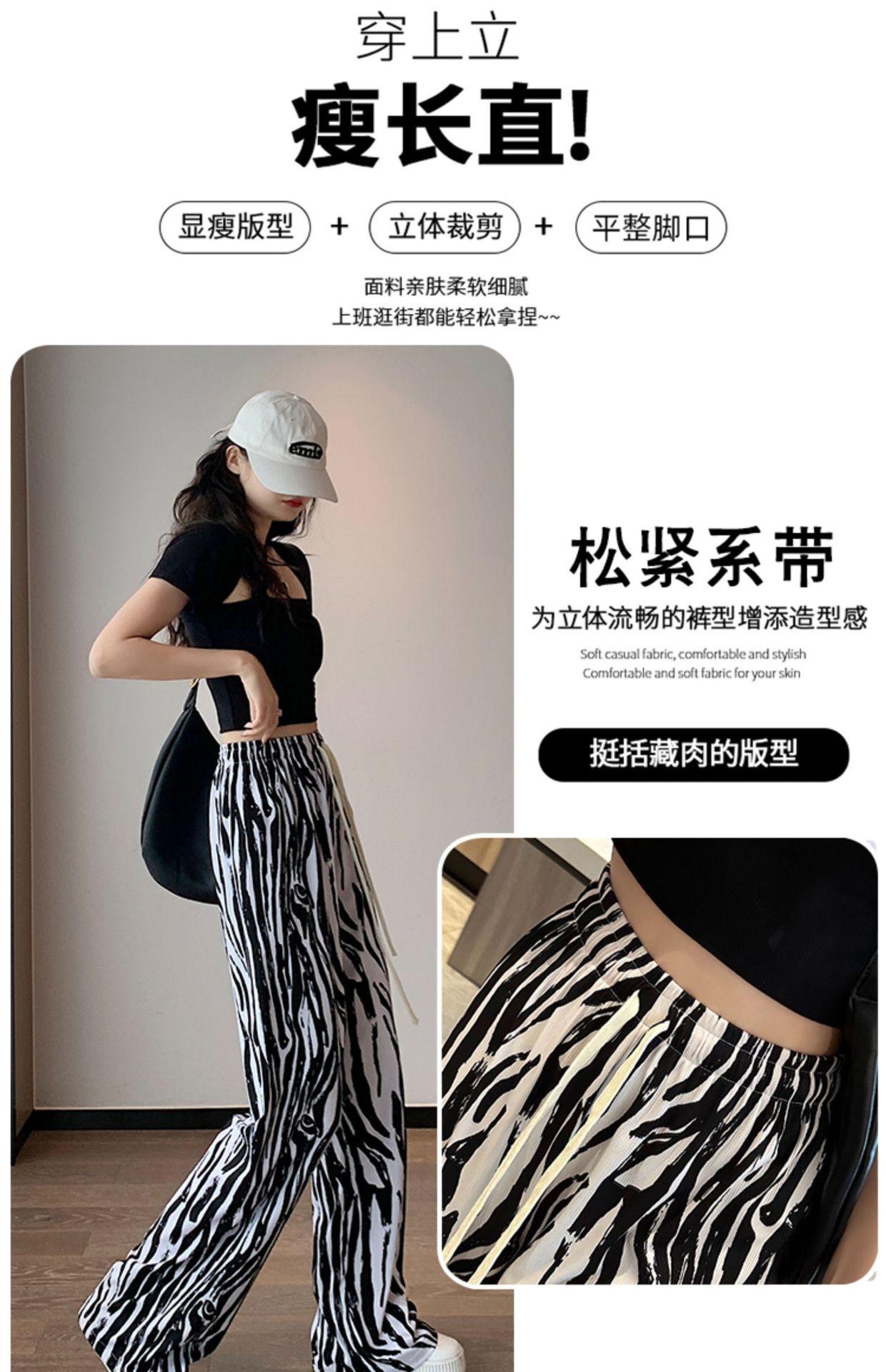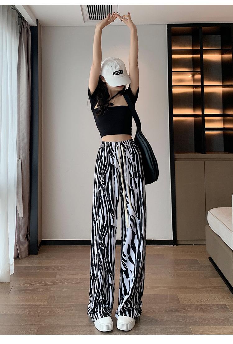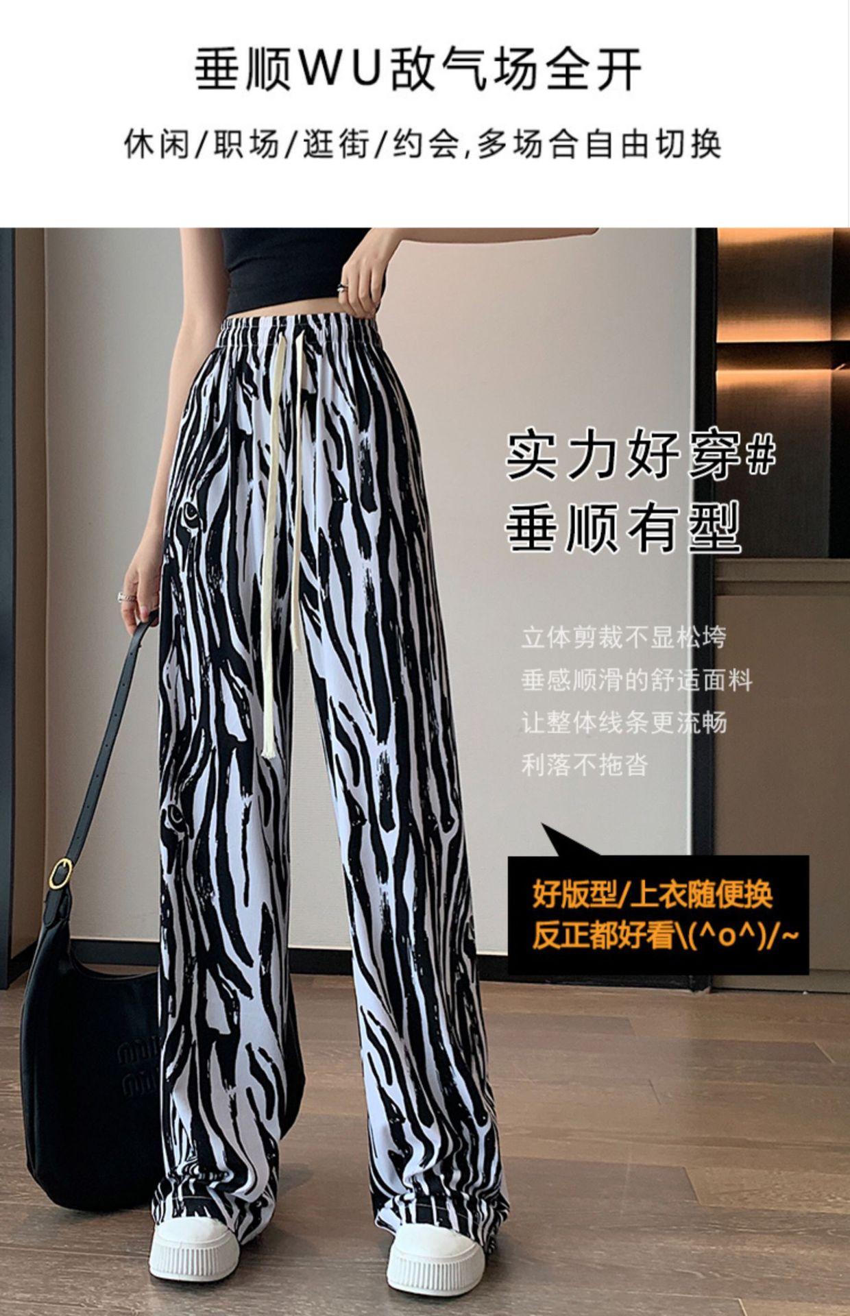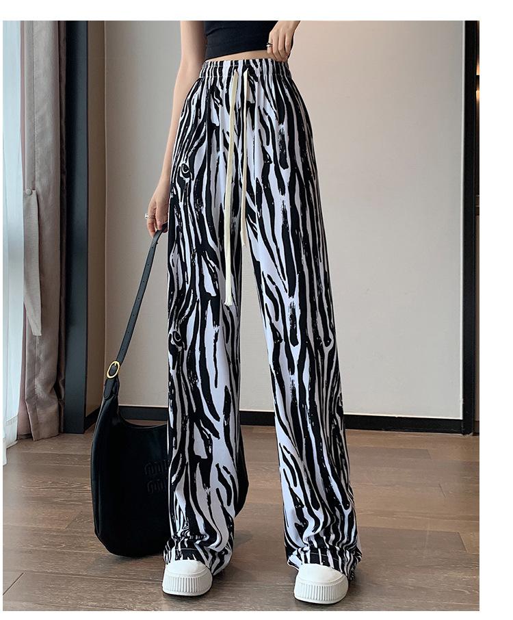 Pantalones de Pierna Ancha de Seda Helada Tie-Dye para Mujer, Verano Delgados Estilo Nuevo, Caída Alta Pierna Recta Estrecha Pantalones Largos hasta el Piso