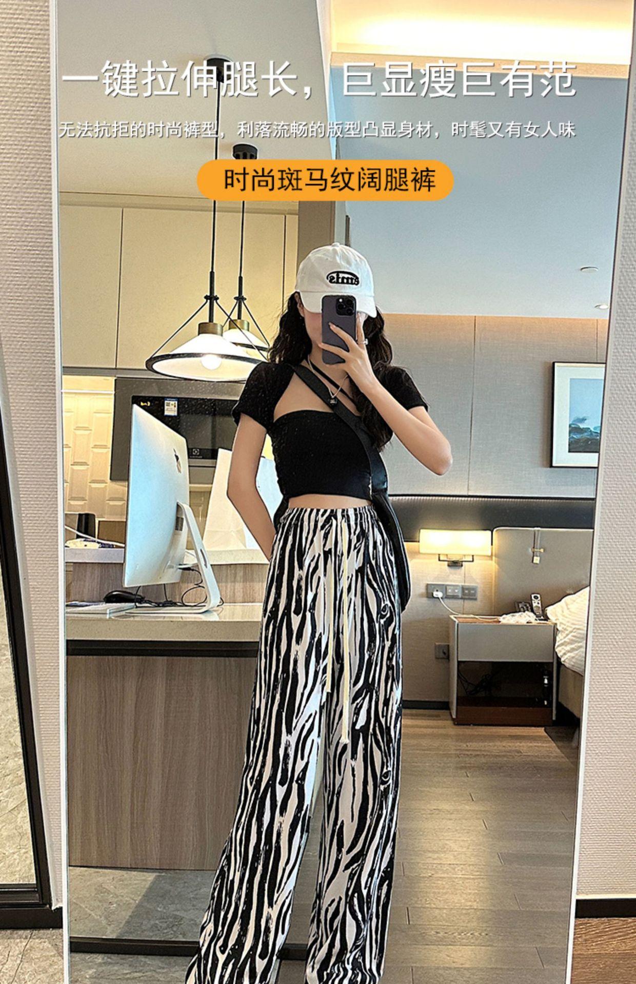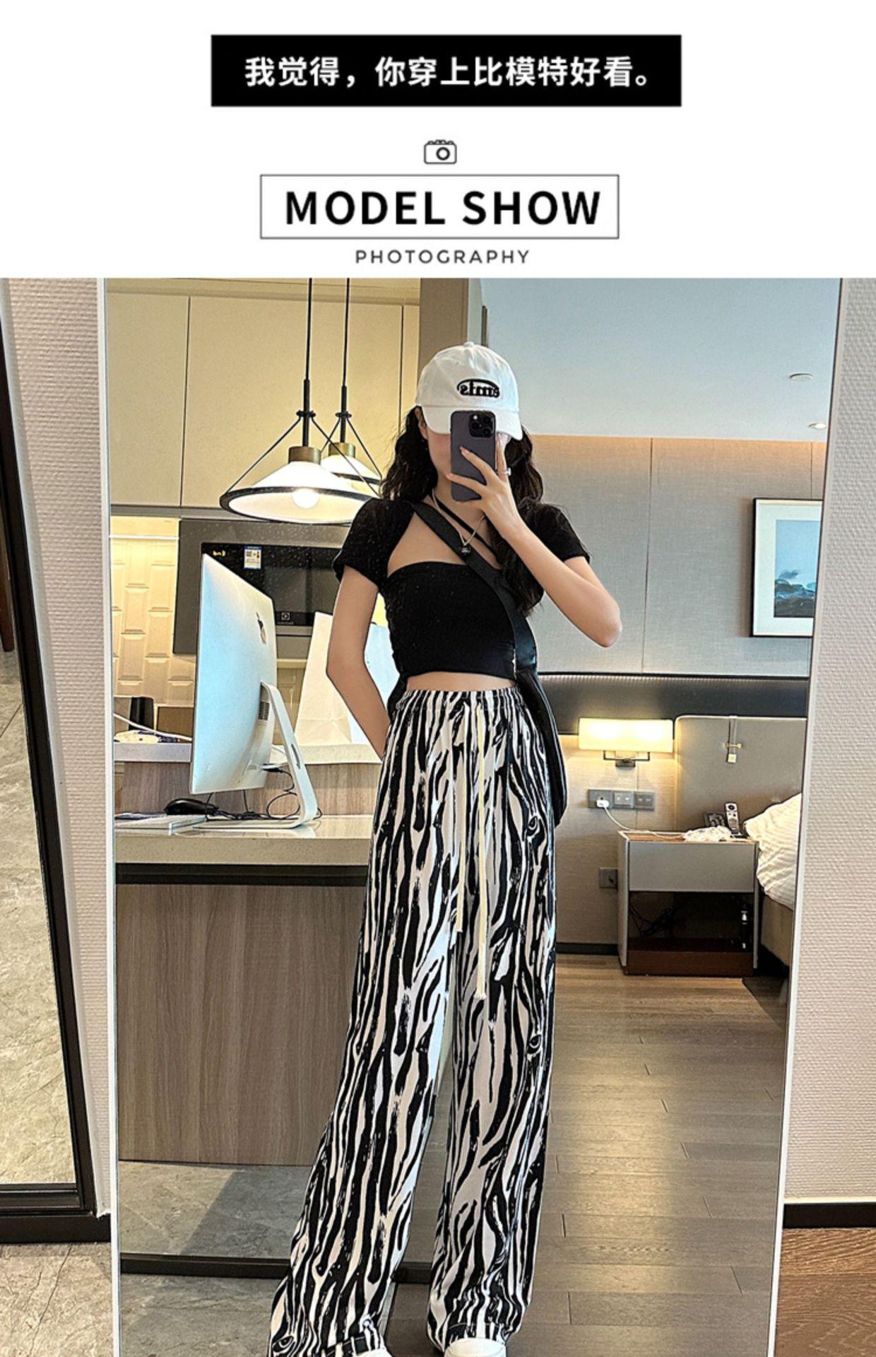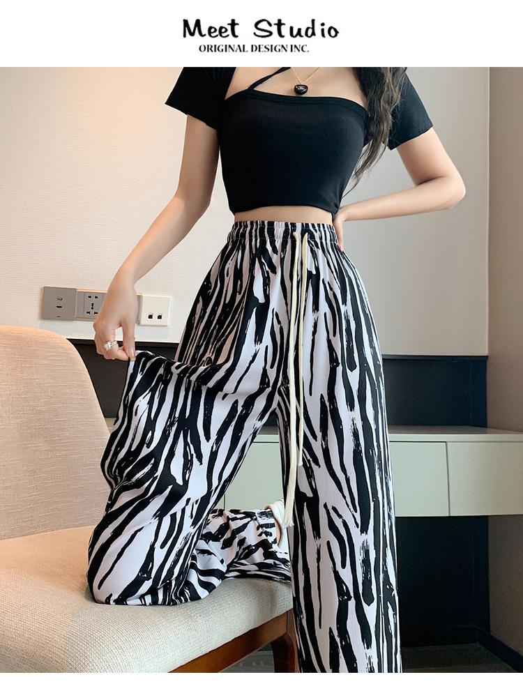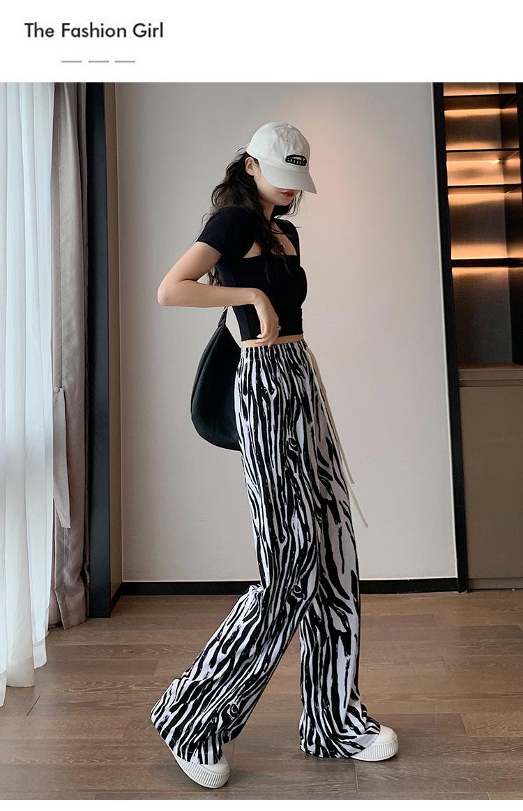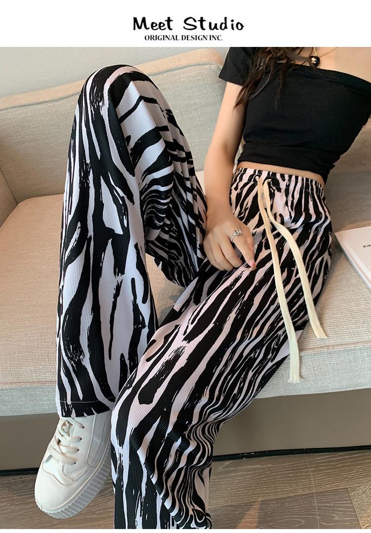 Pantalones de Pierna Ancha de Seda Helada Tie-Dye para Mujer, Verano Delgados Estilo Nuevo, Caída Alta Pierna Recta Estrecha Pantalones Largos hasta el Piso