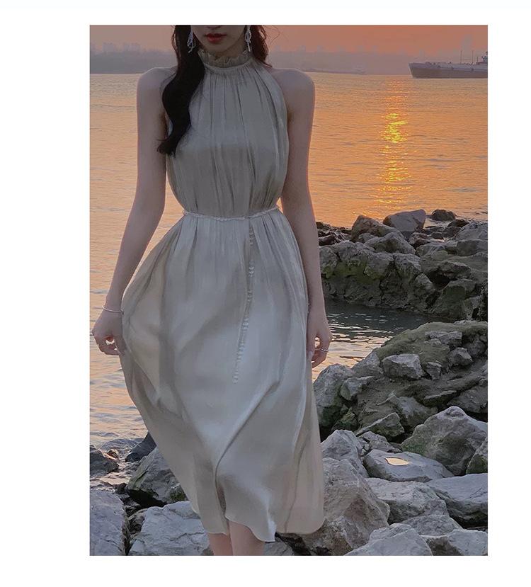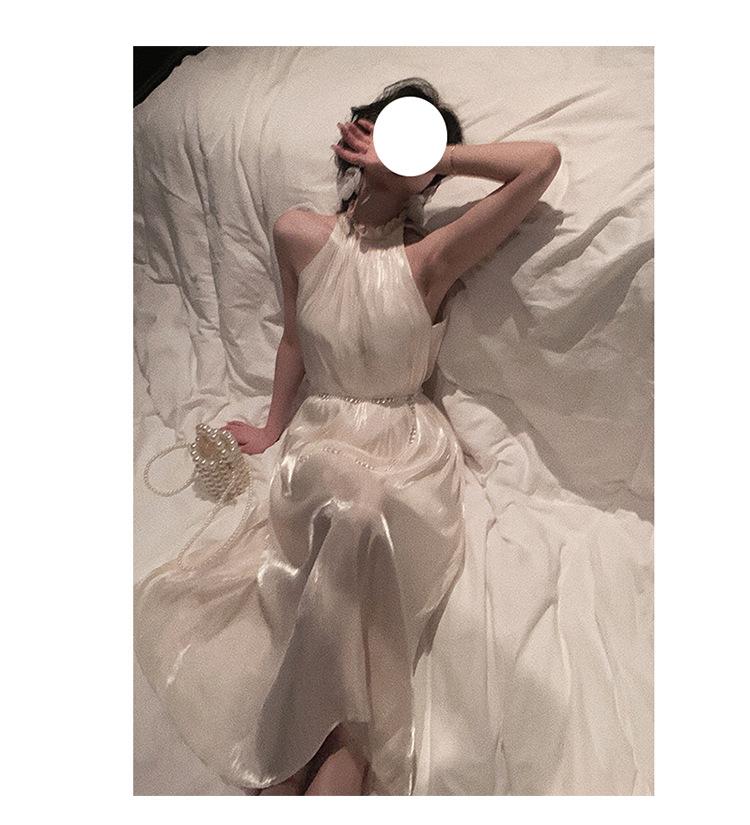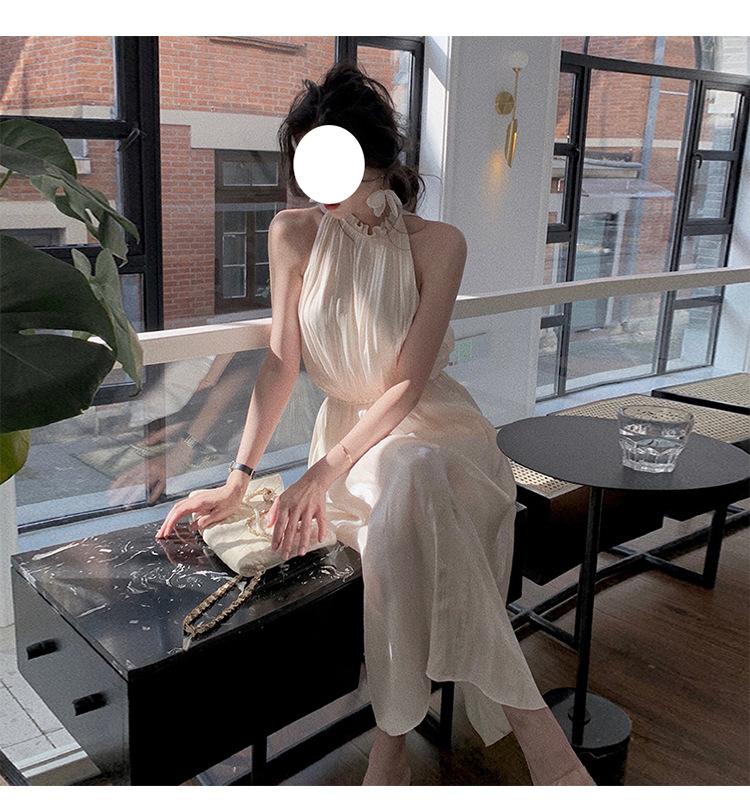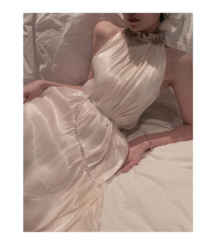 Vestido Brillante Sin Mangas para Mujer Verano Nuevo Estilo Francés Diseño Nicho Suave Vestido de Hada Falda Midi