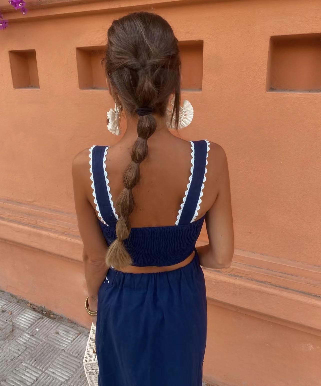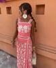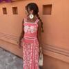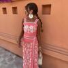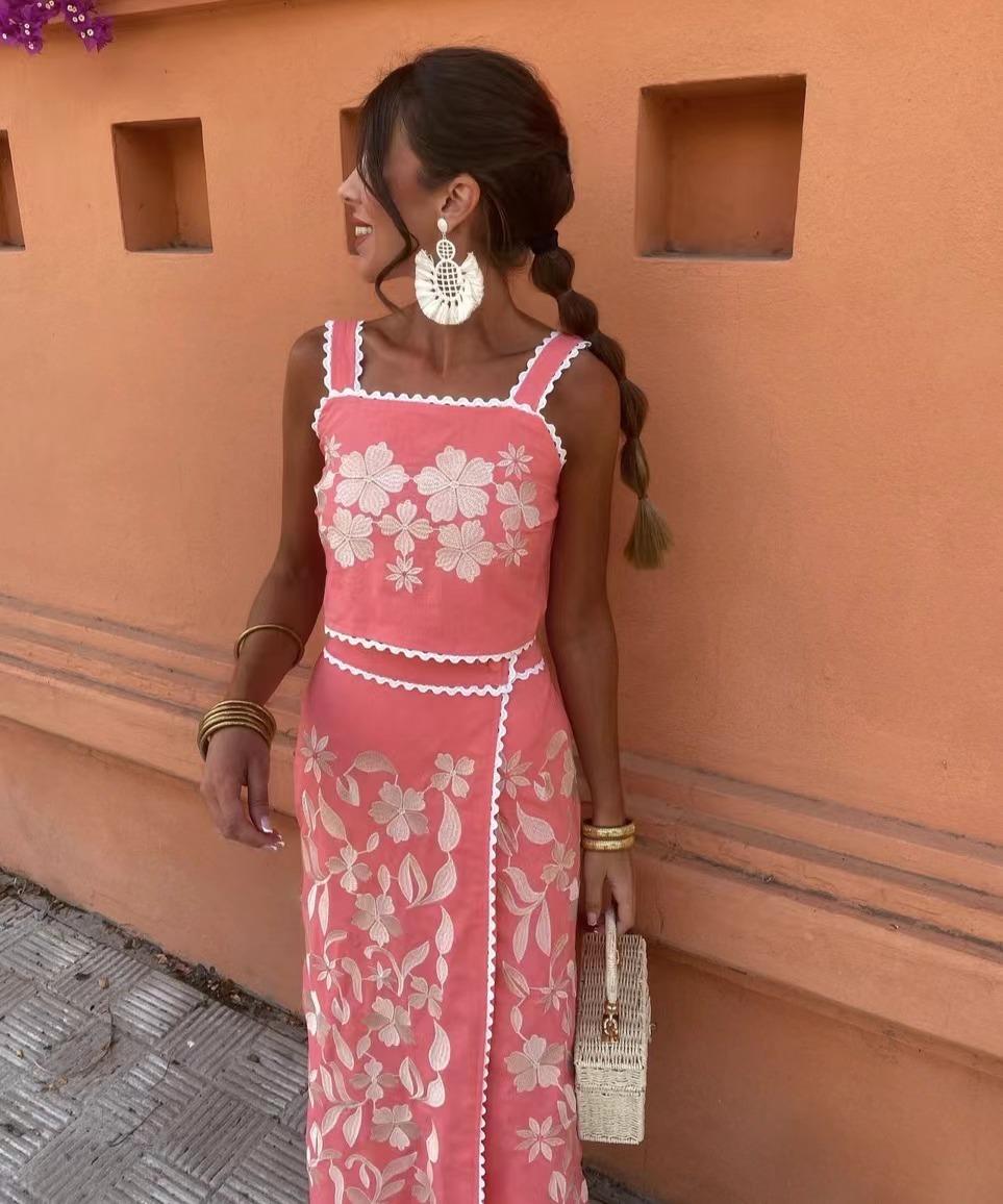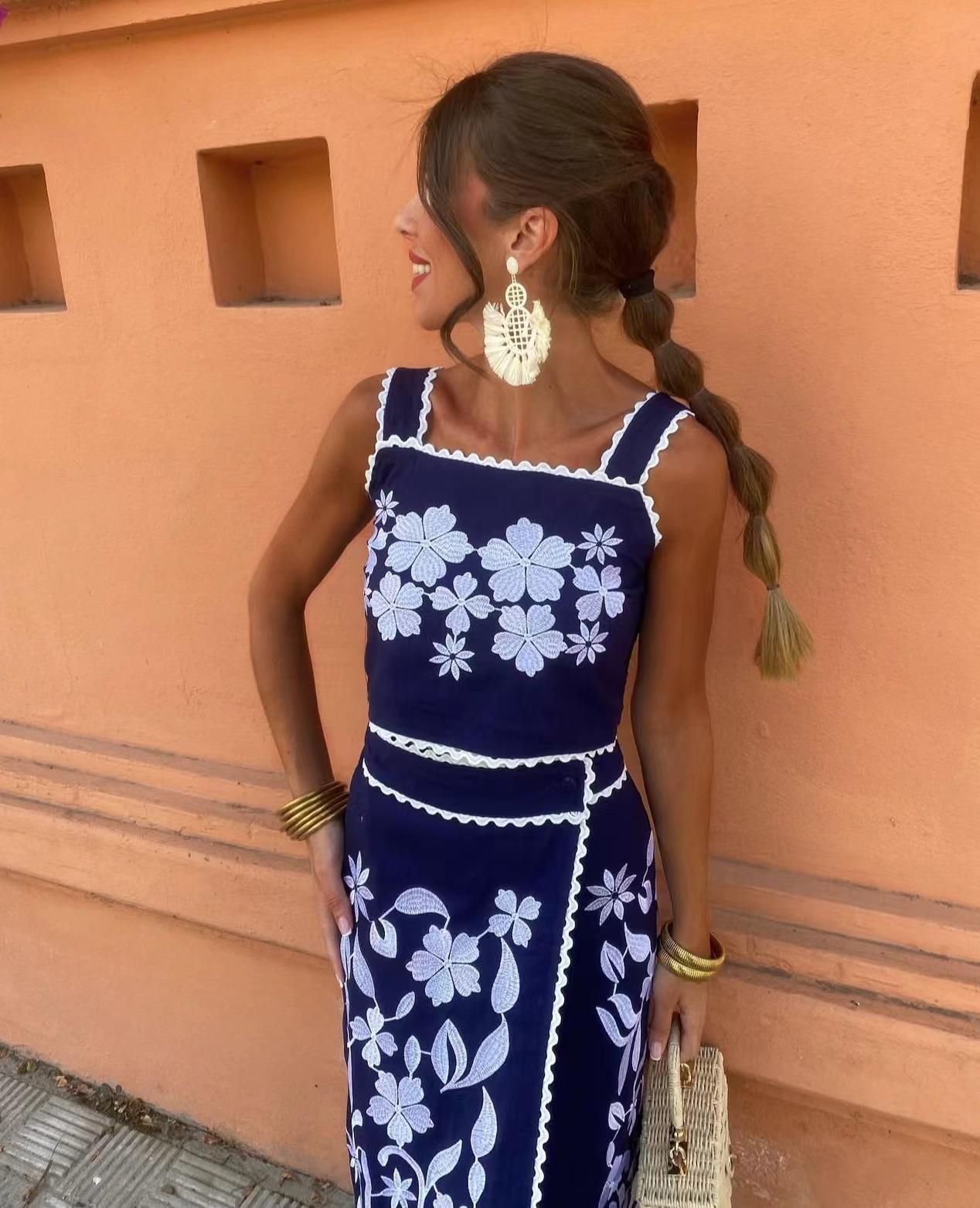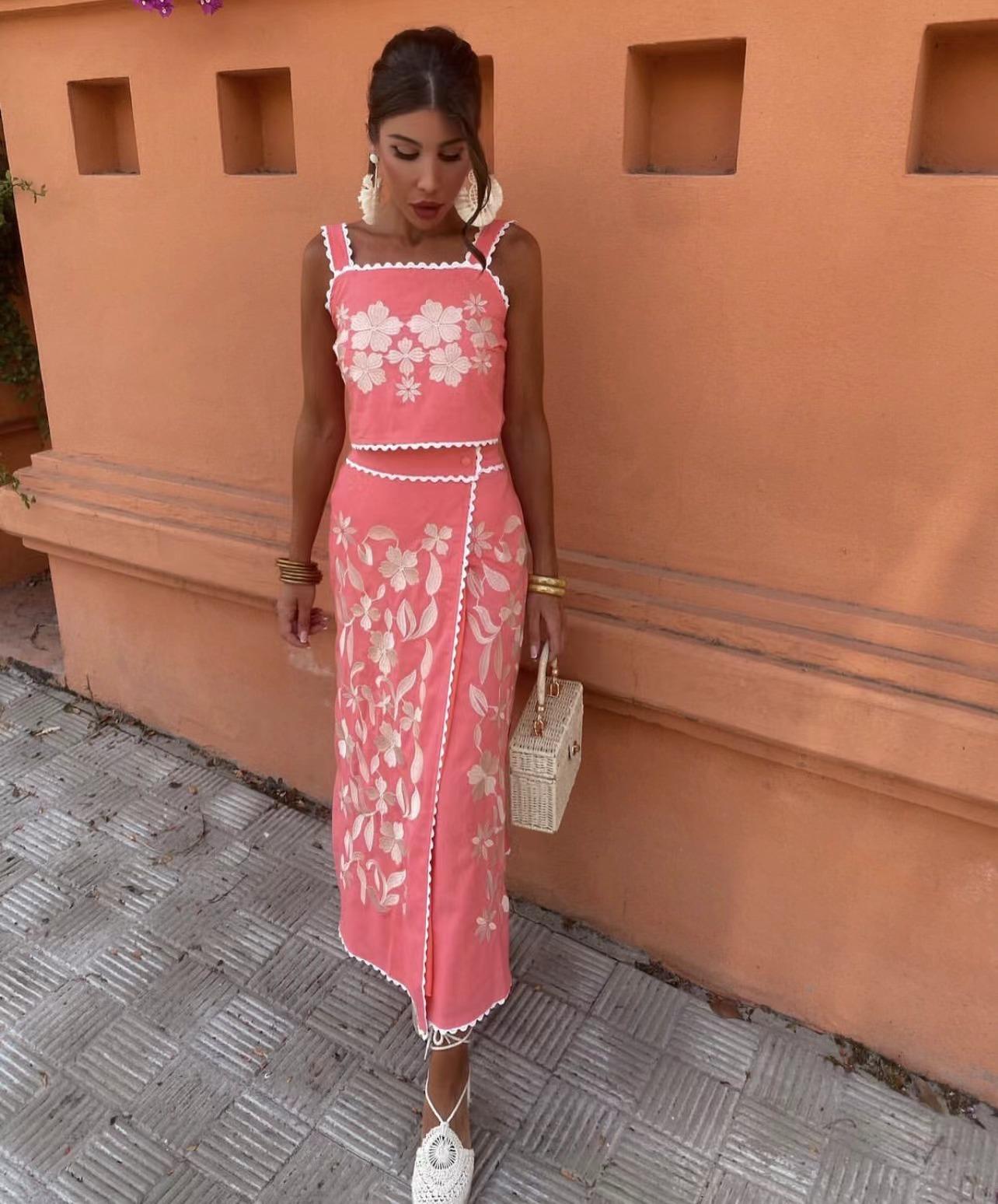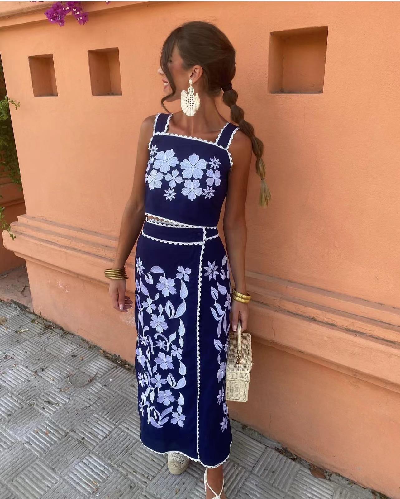 Exclusivo Transfronterizo Moda Europea y Americana Aliexpress Ins Popular Top de Tirantes Floral Bordado + Set de Falda Línea A