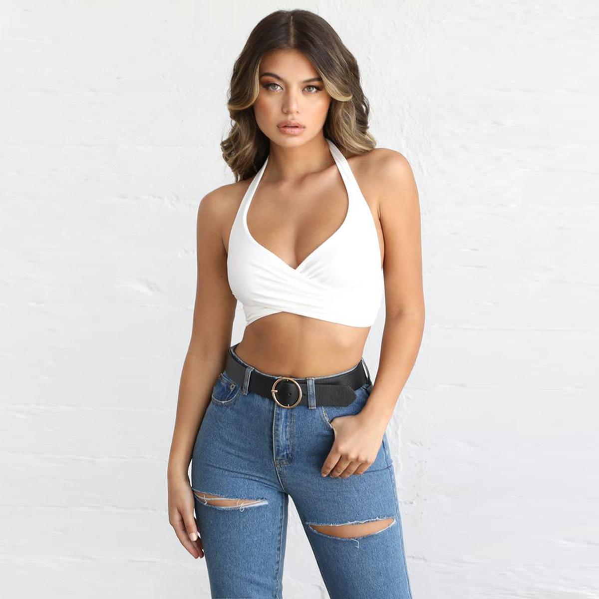 Crop top corto de moda europea y americana, escote cruzado, simple y versátil,Se puede usar en exteriores.