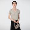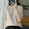 Eg* Camiseta Holgada de Cuello en V con Dobladillo Natural Enrollado para Mujer 25Ss Primavera y Verano Estilo Coreano Versátil Look Adelgazante Top de Manga Corta Color Puro