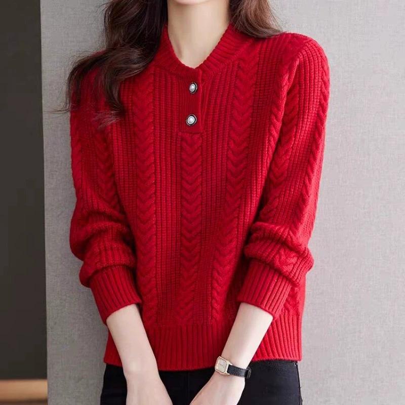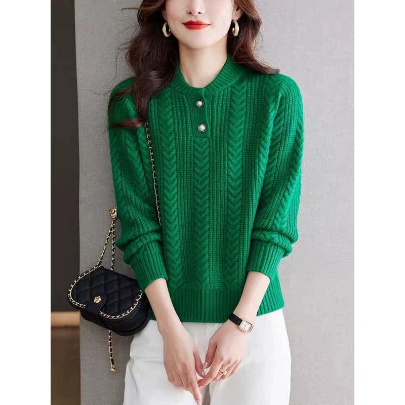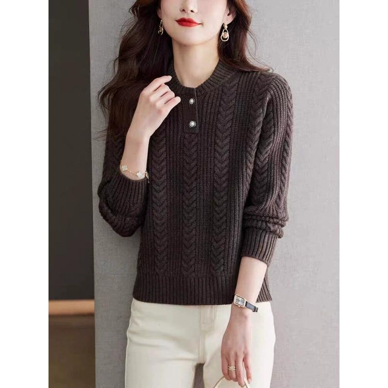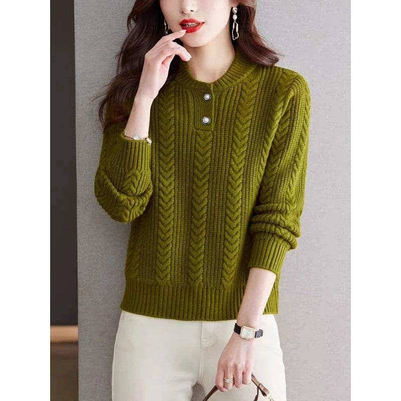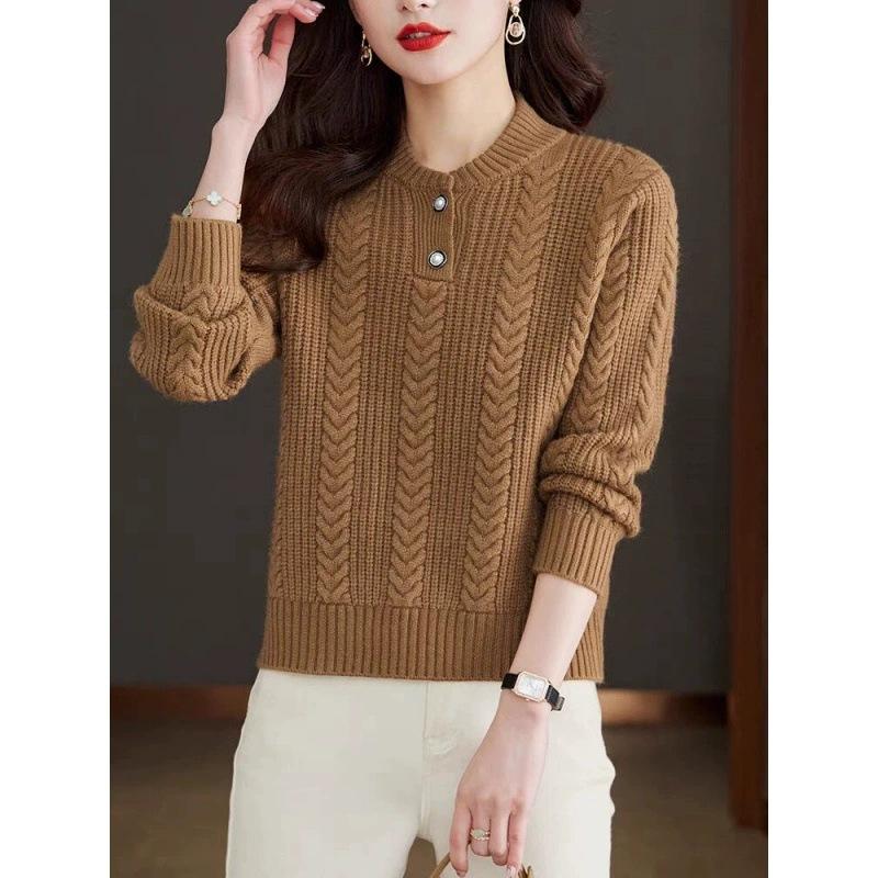 Camiseta Casual de Fondo para Mujer Top Holgado Tejido de Cuello Medio Alto Engrosado 2025 Otoño e Invierno Tejido de Punto Estilo Relajado para Mujer