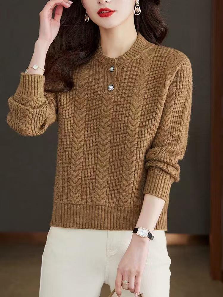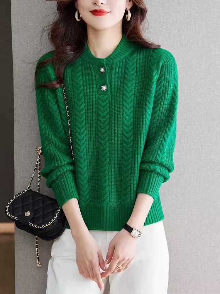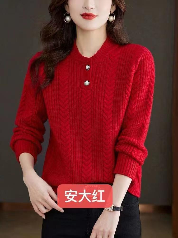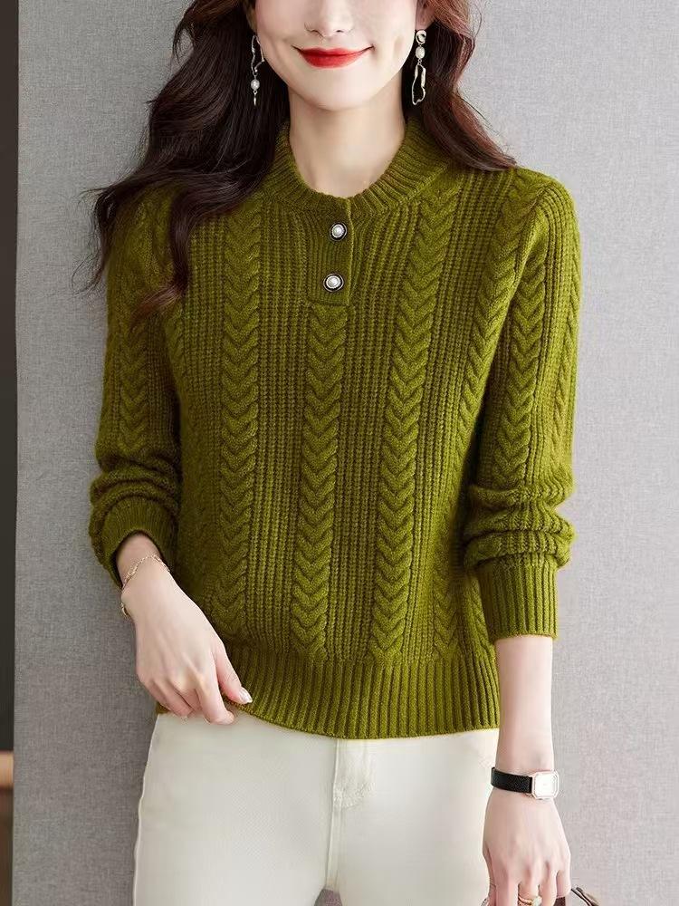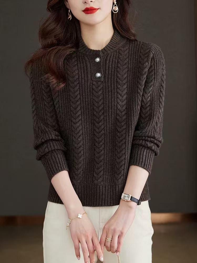 Camiseta Casual de Fondo para Mujer Top Holgado Tejido de Cuello Medio Alto Engrosado 2025 Otoño e Invierno Tejido de Punto Estilo Relajado para Mujer