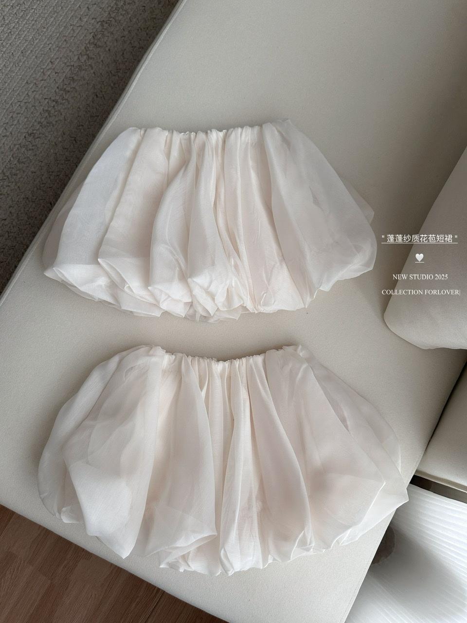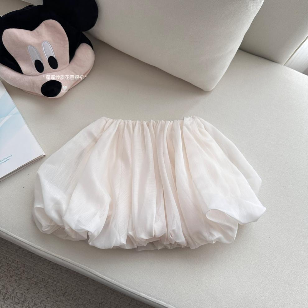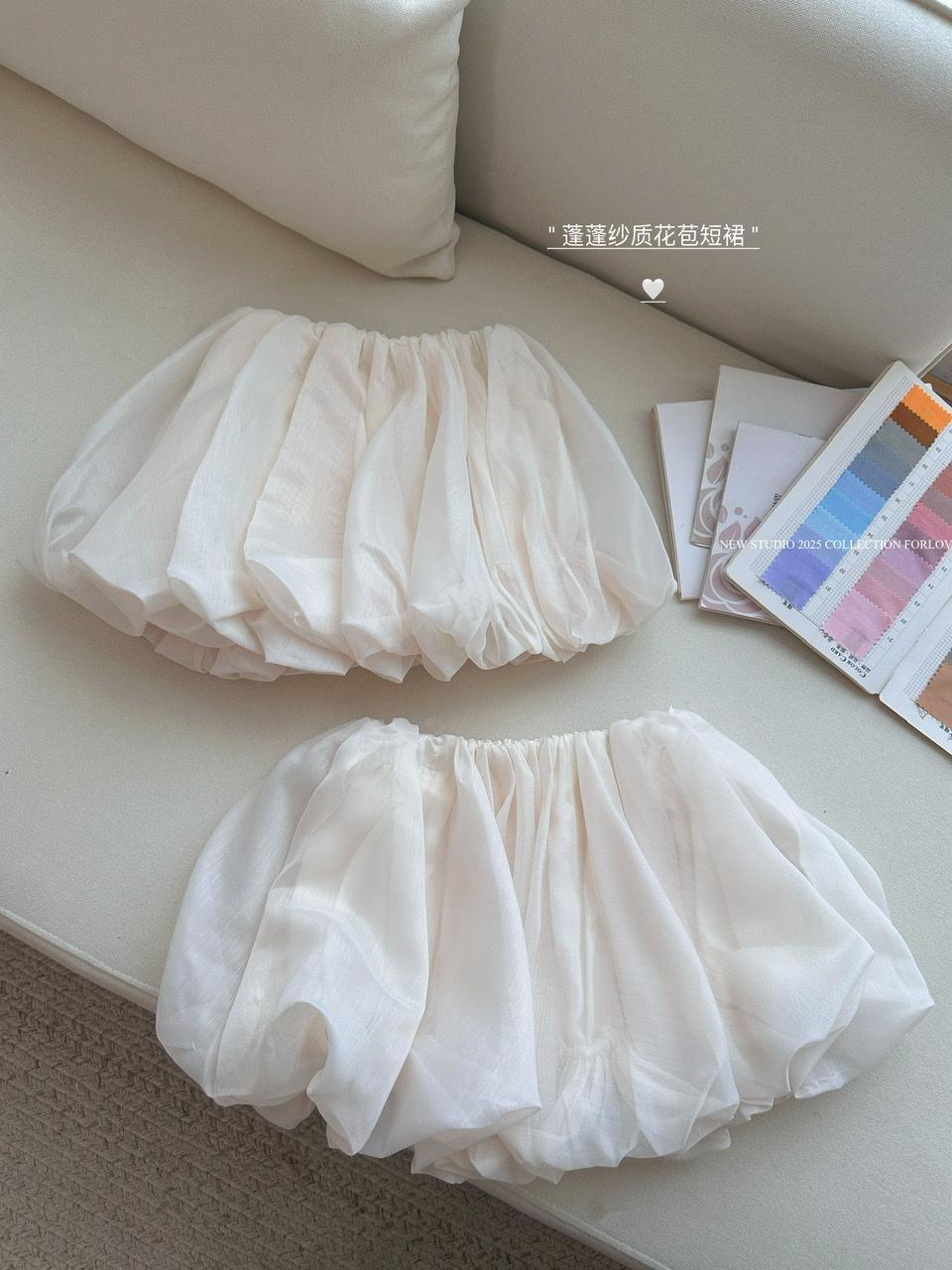 Falda plisada de capullo para mujer, falda corta acampanada de talle alto con velo ligero de burbuja