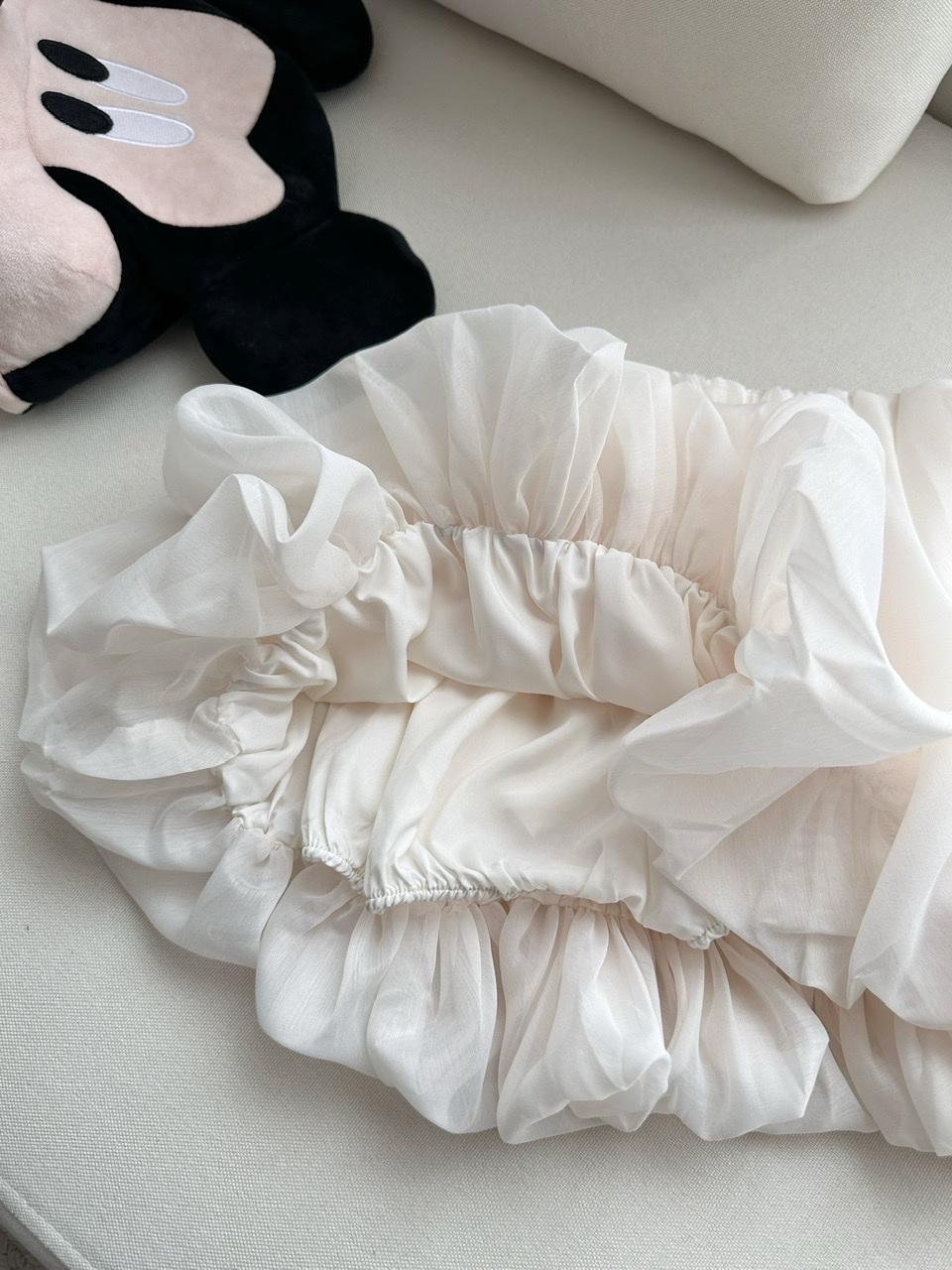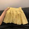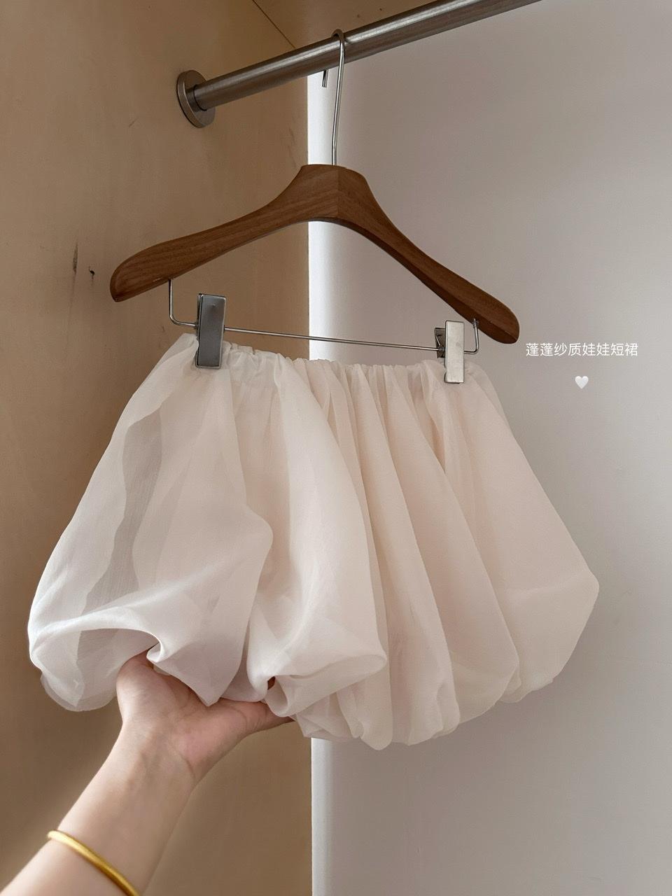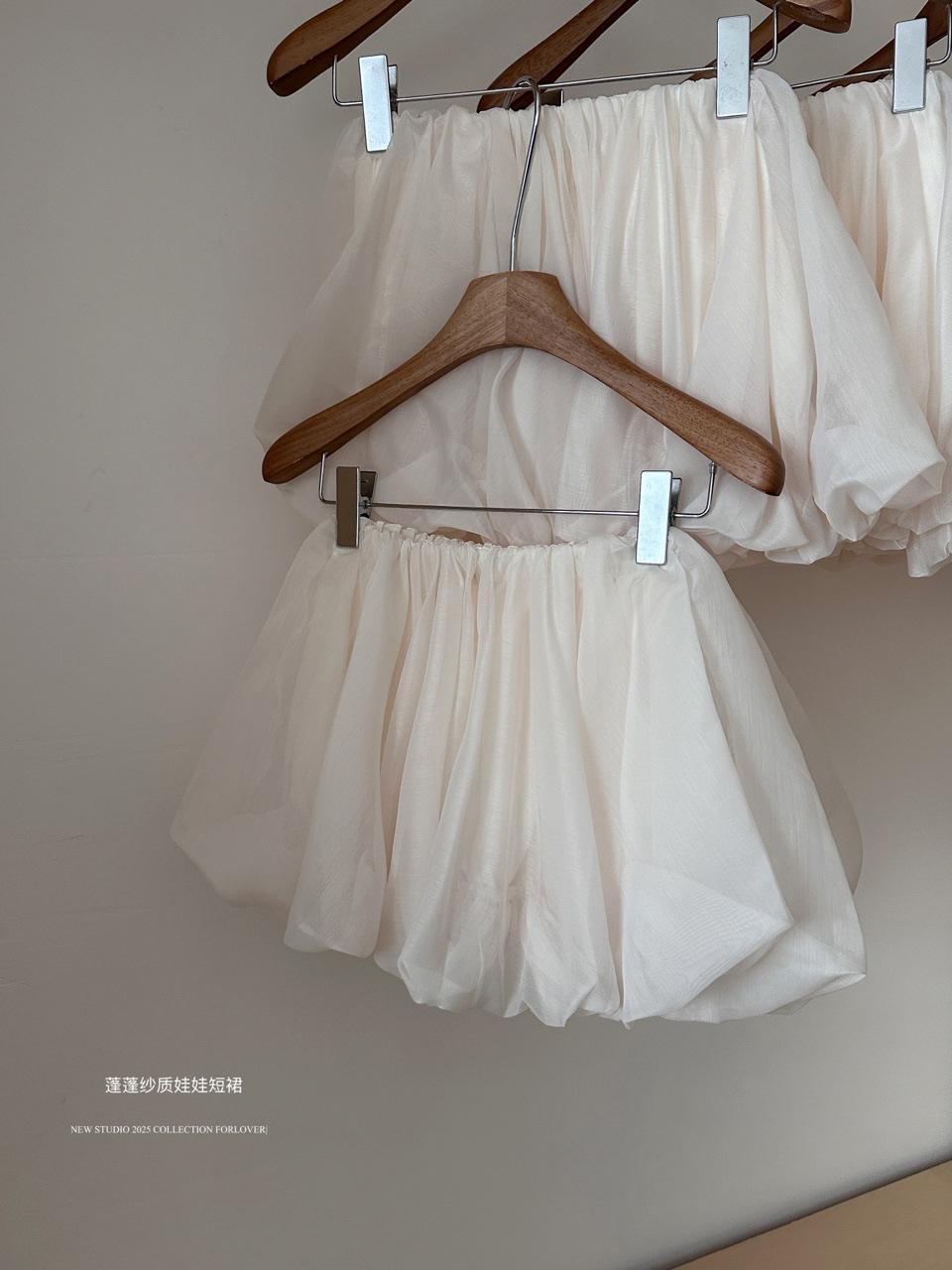 Falda plisada de capullo para mujer, falda corta acampanada de talle alto con velo ligero de burbuja