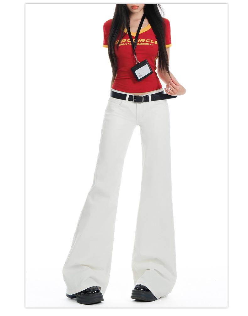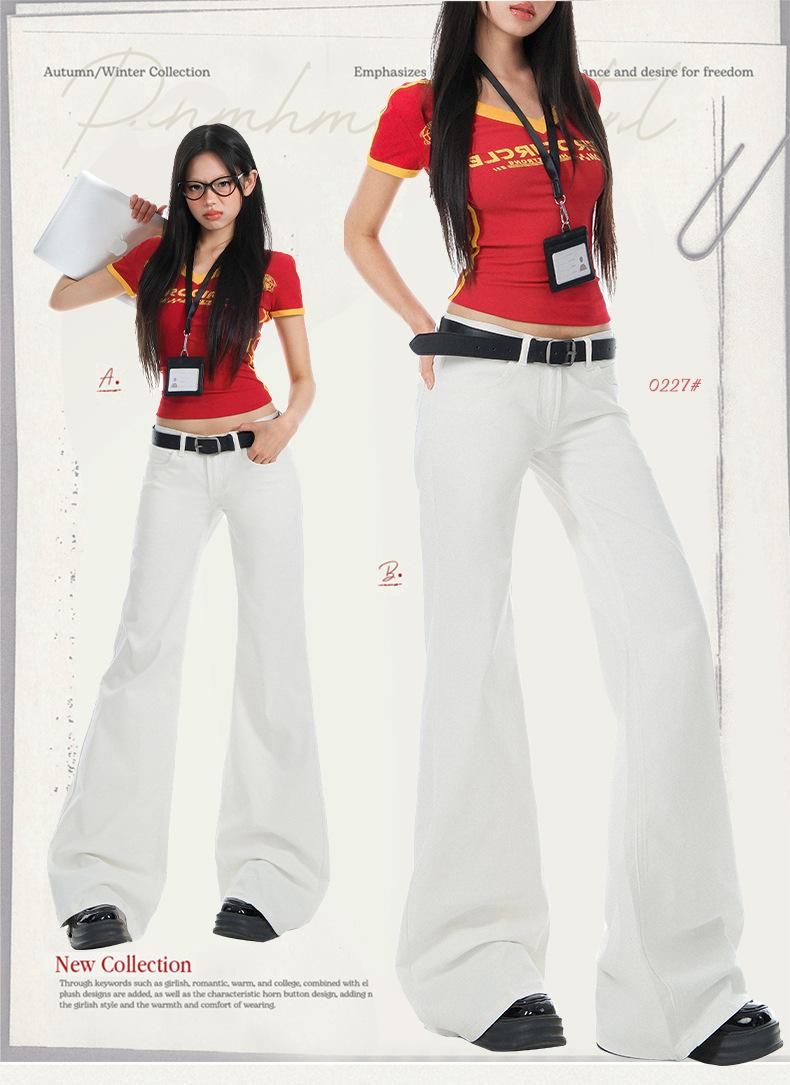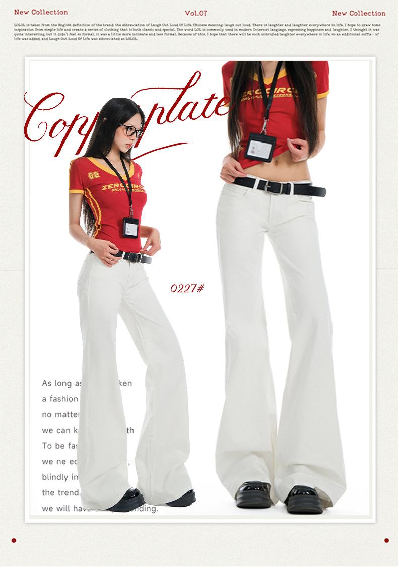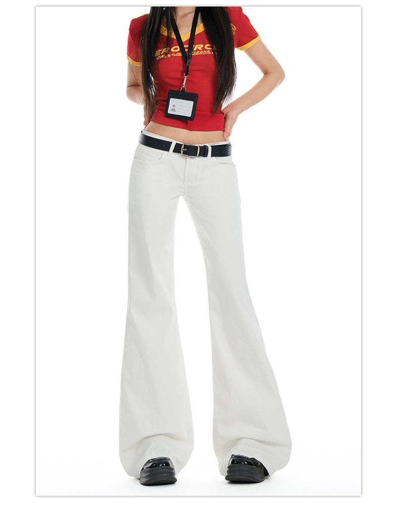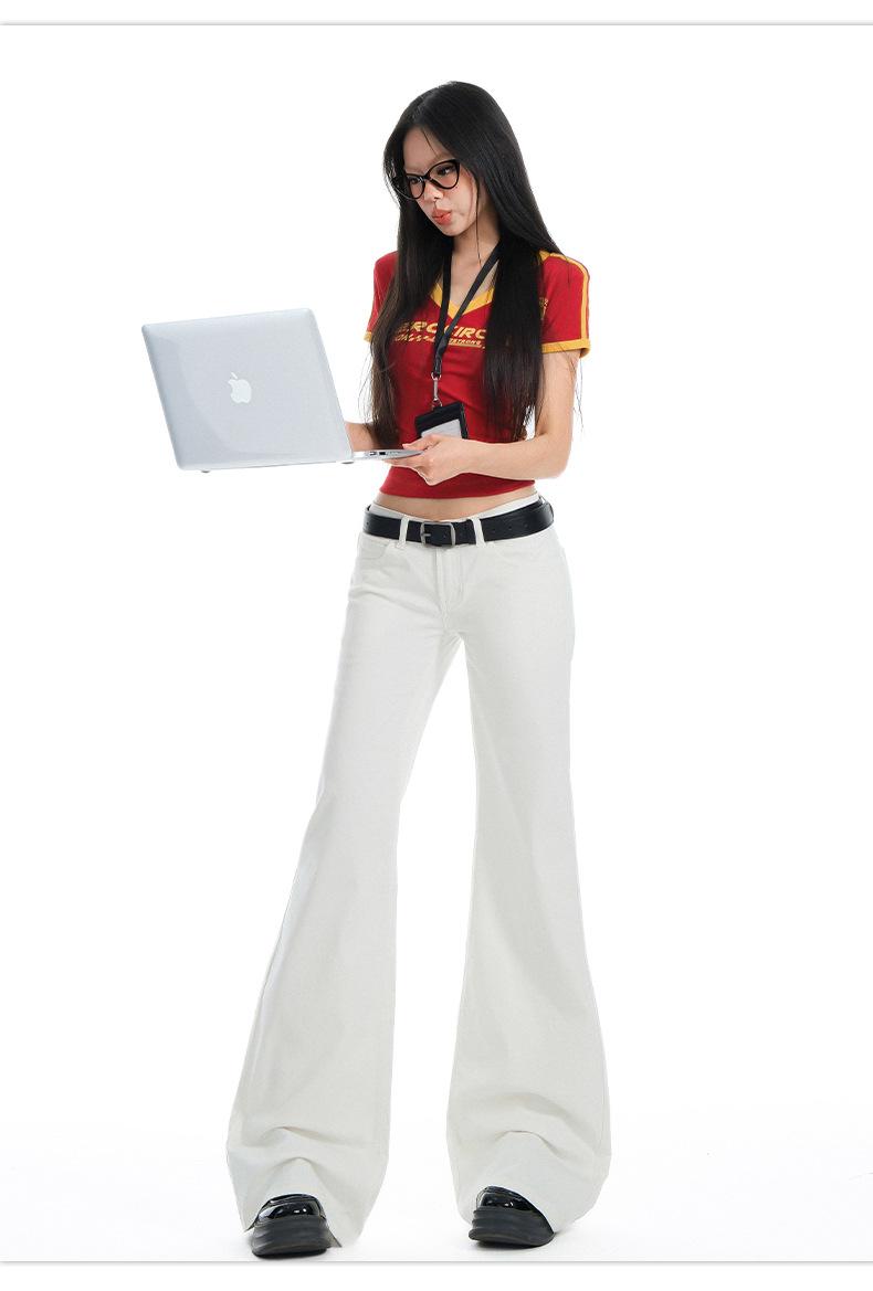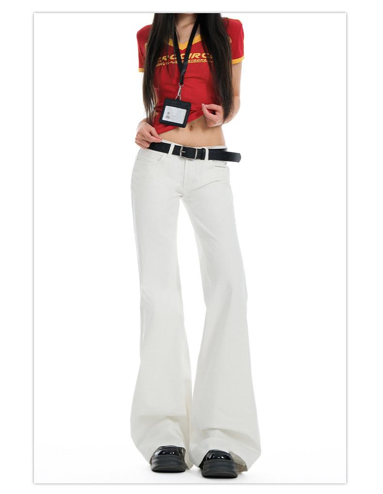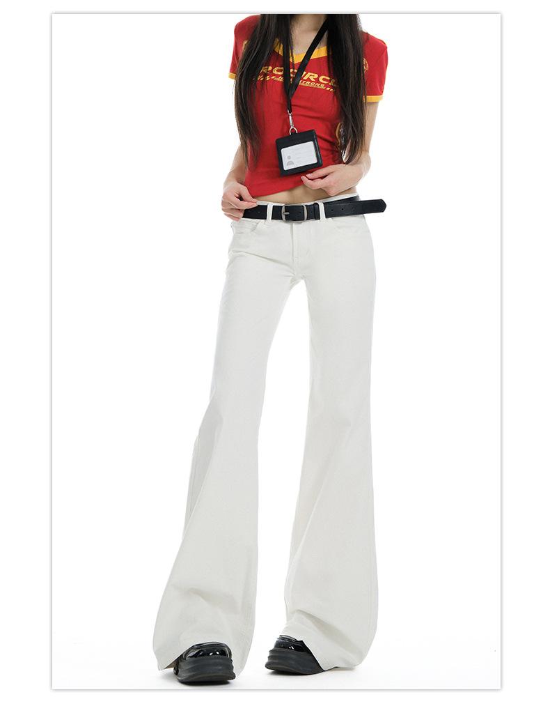 Jeans Acampanados de Tiro Bajo Blancos para Mujer, Nuevo Estilo de Primavera y Verano, Ajuste Slim sin Elasticidad, Versátiles Pantalones Acampanados de Pierna Recta