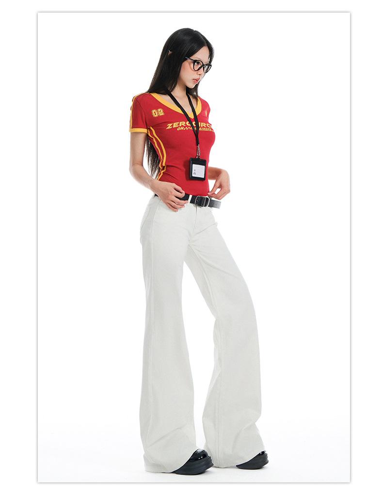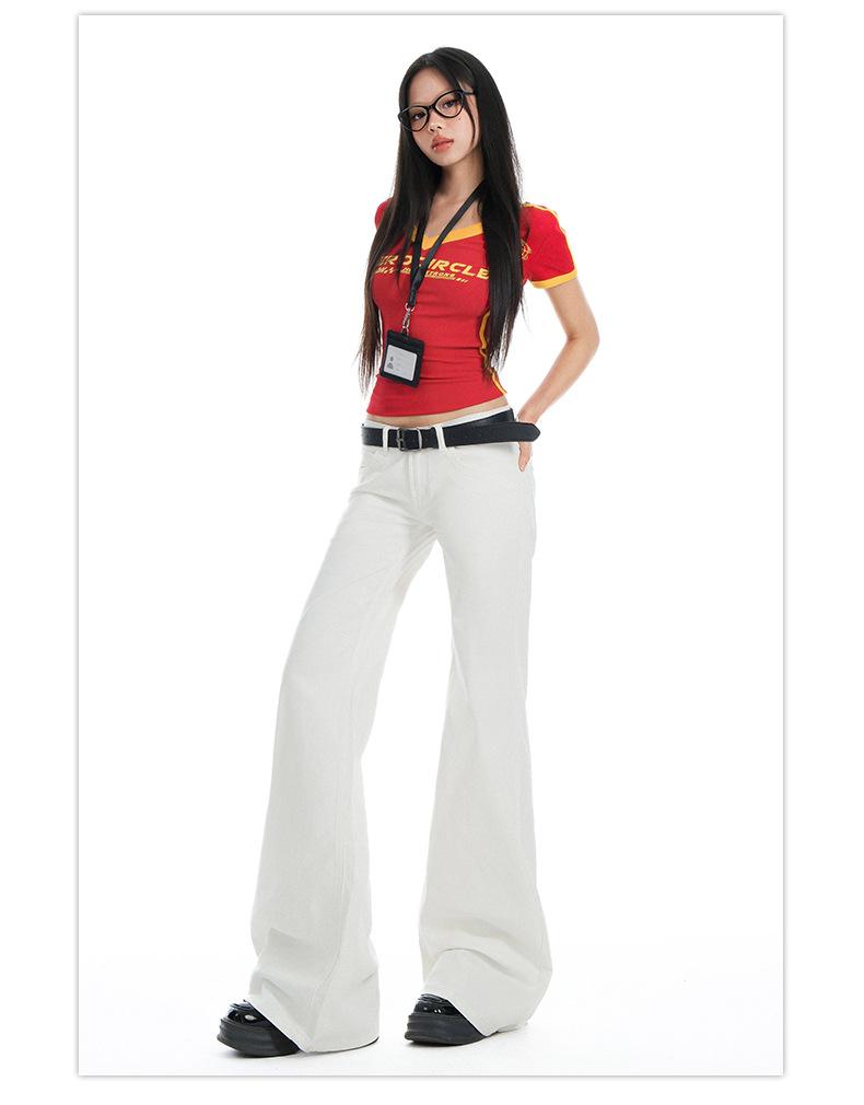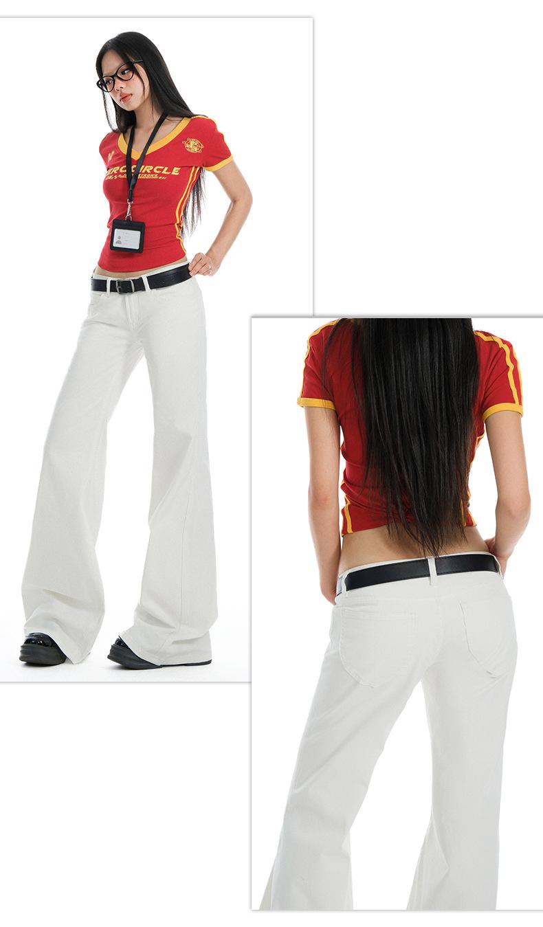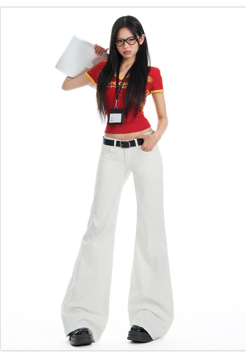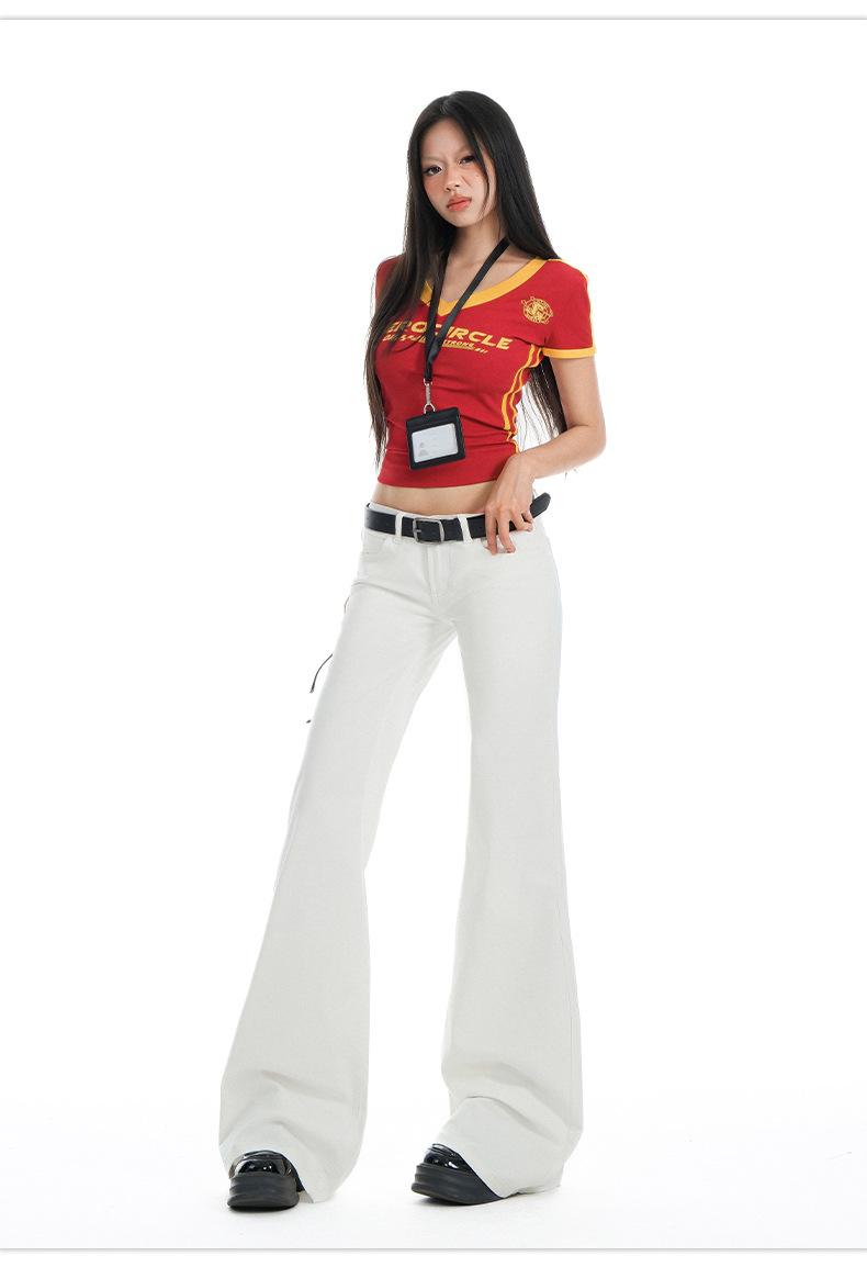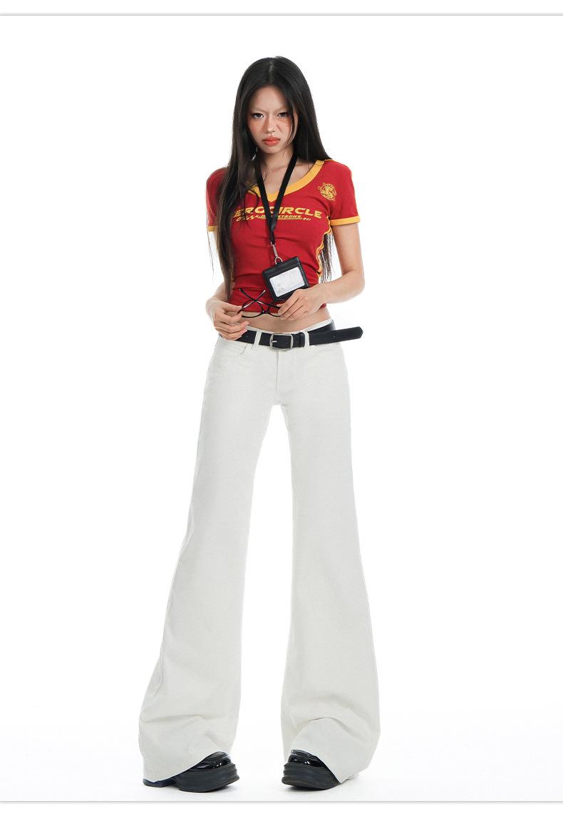Jeans Acampanados de Tiro Bajo Blancos para Mujer, Nuevo Estilo de Primavera y Verano, Ajuste Slim sin Elasticidad, Versátiles Pantalones Acampanados de Pierna Recta