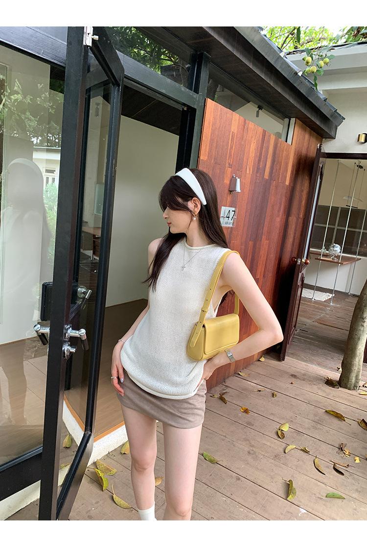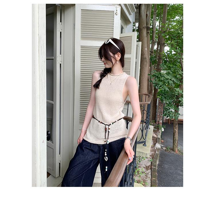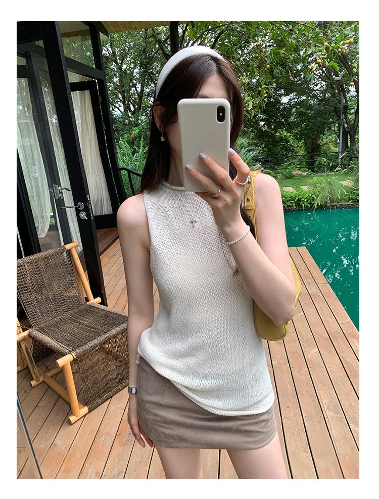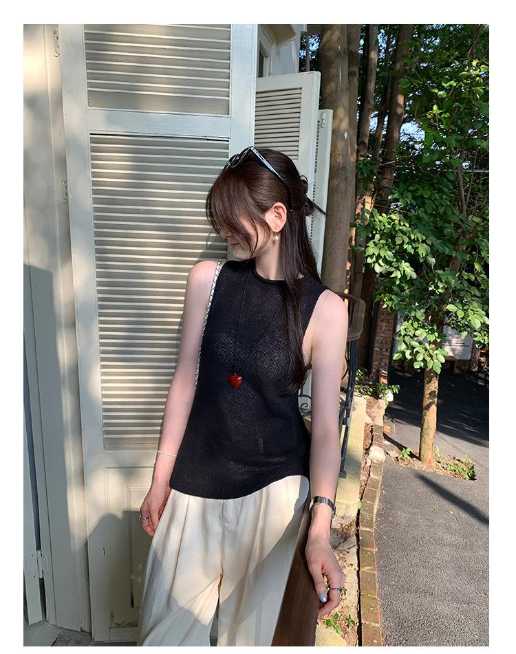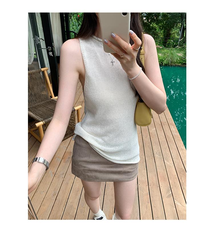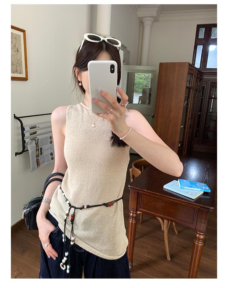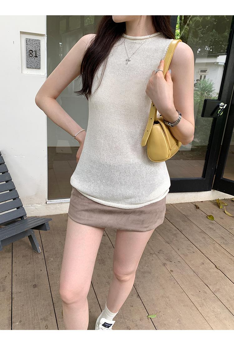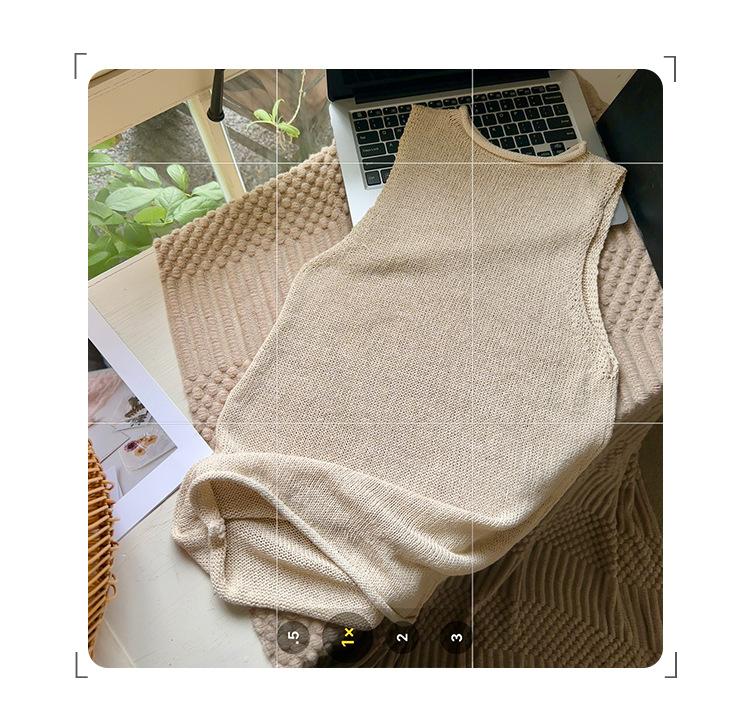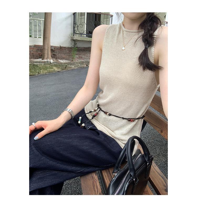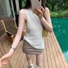 Camisola de Punto sin Mangas con Borde Enrollado Nicho para Mujer Verano 2025 Nuevo Diseño Estilo Coreano Top Interior Holgado