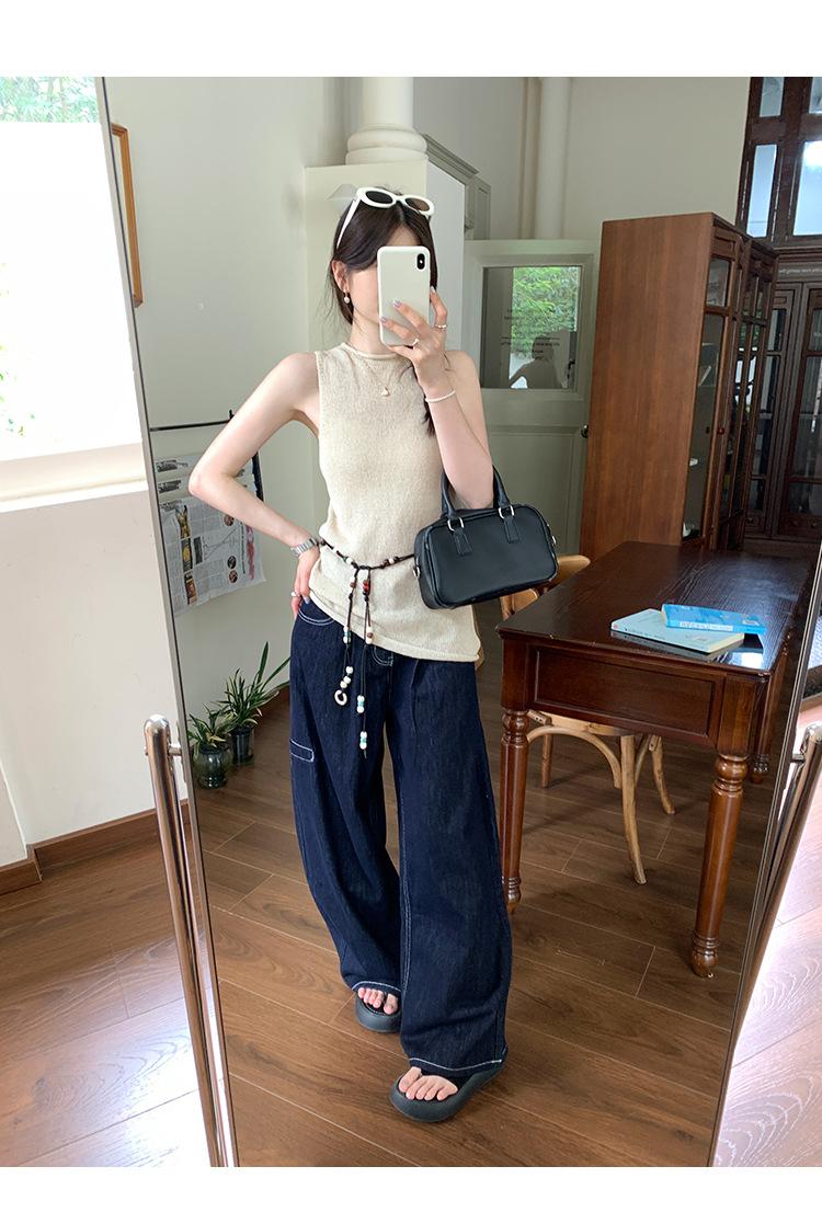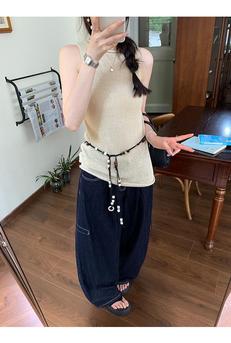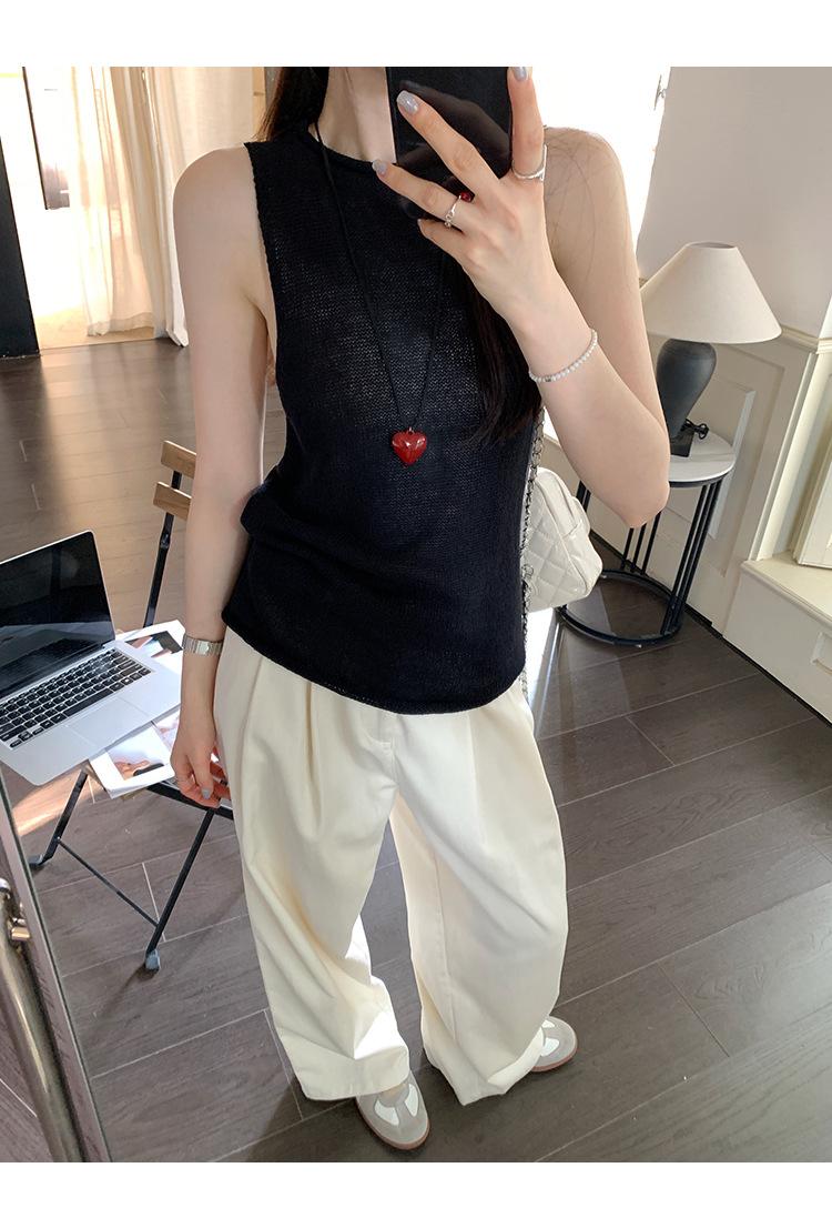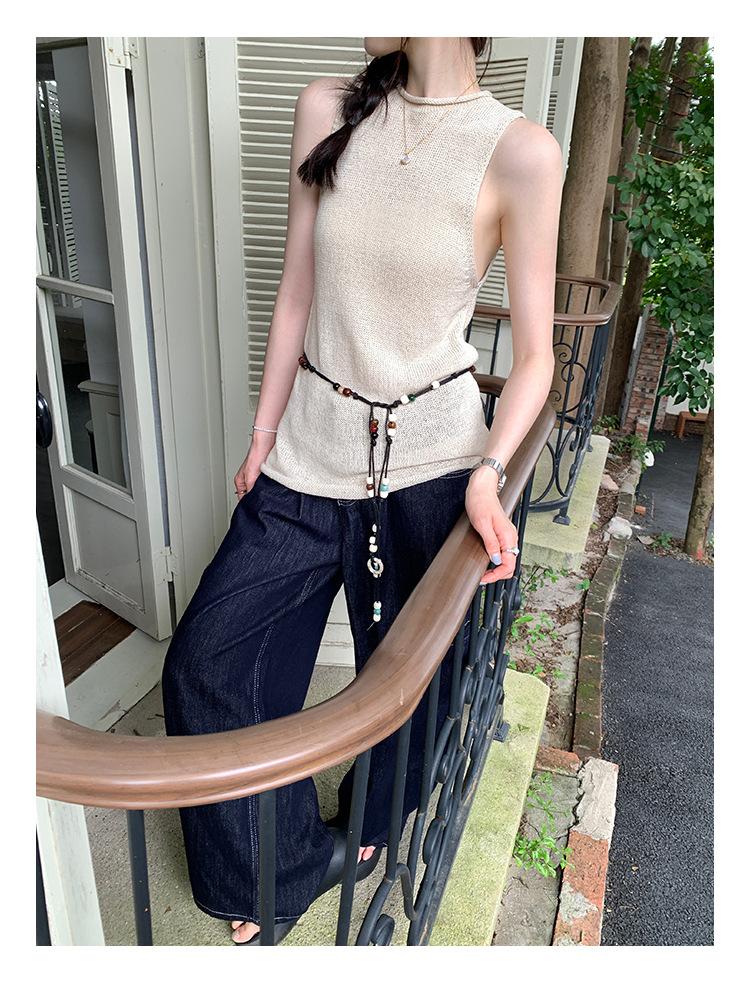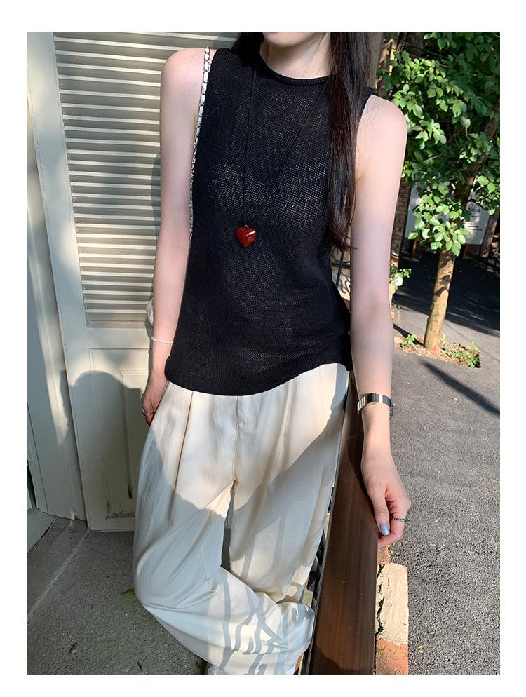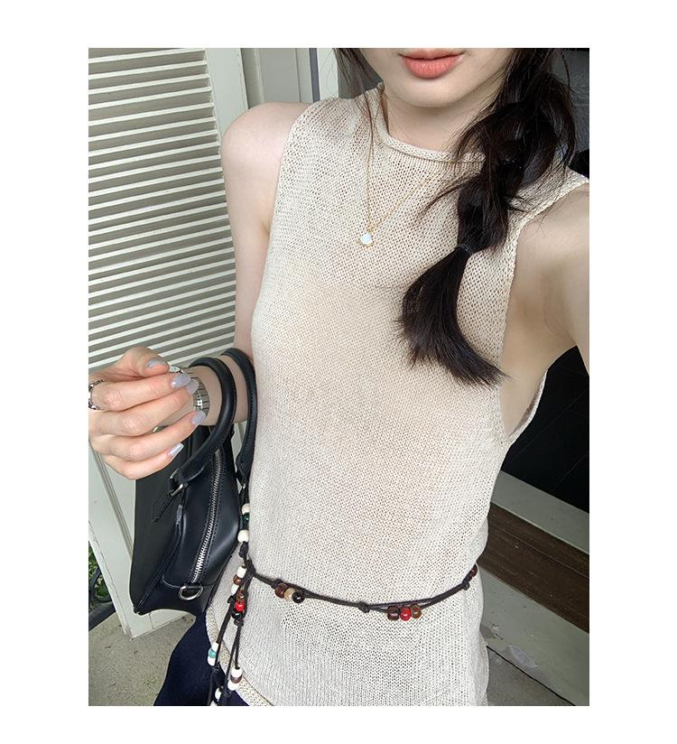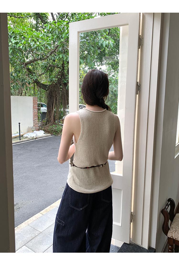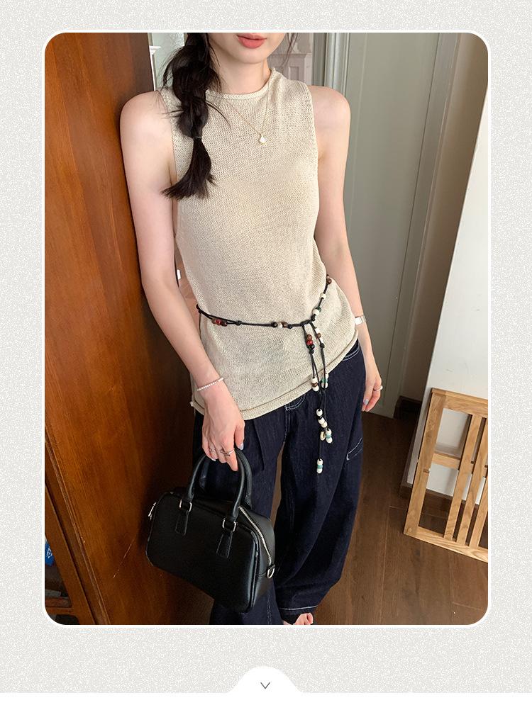 Camisola de Punto sin Mangas con Borde Enrollado Nicho para Mujer Verano 2025 Nuevo Diseño Estilo Coreano Top Interior Holgado
