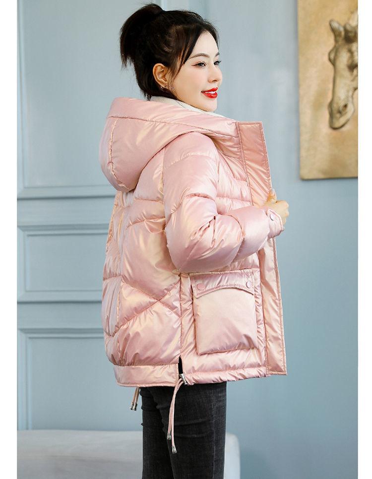 2024 Nuevo Invierno Plumón Algodón Chaqueta Mujer Corta Estilo Coreano Brillante Suelta Engrosada Chaqueta de Algodón Chaqueta