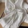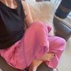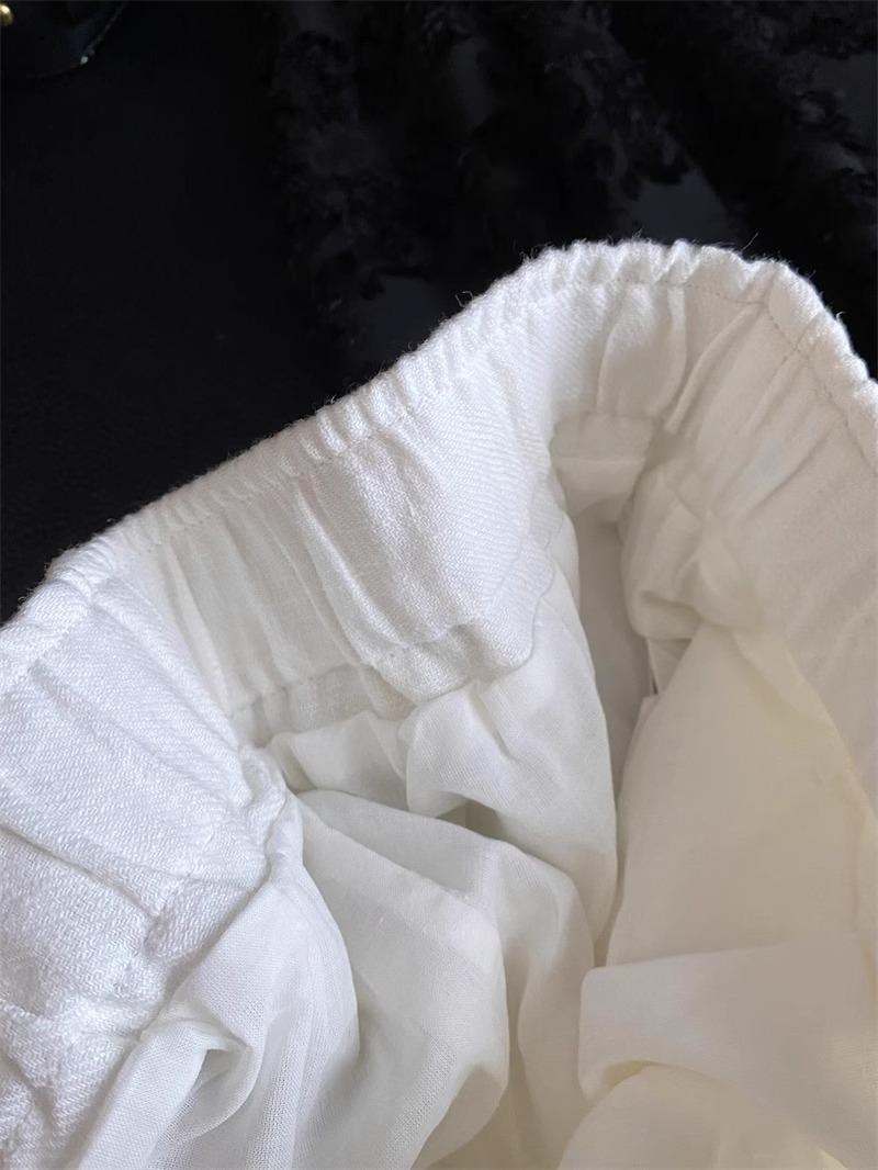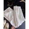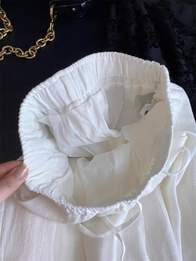 Estilo Vacacional Pantalones Largos Blancos Adelgazantes de Pierna Ancha con Cintura Elástica con Cordón de Alta Calidad Más de 1,000 Personas Agregadas al Carrito