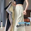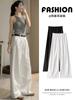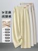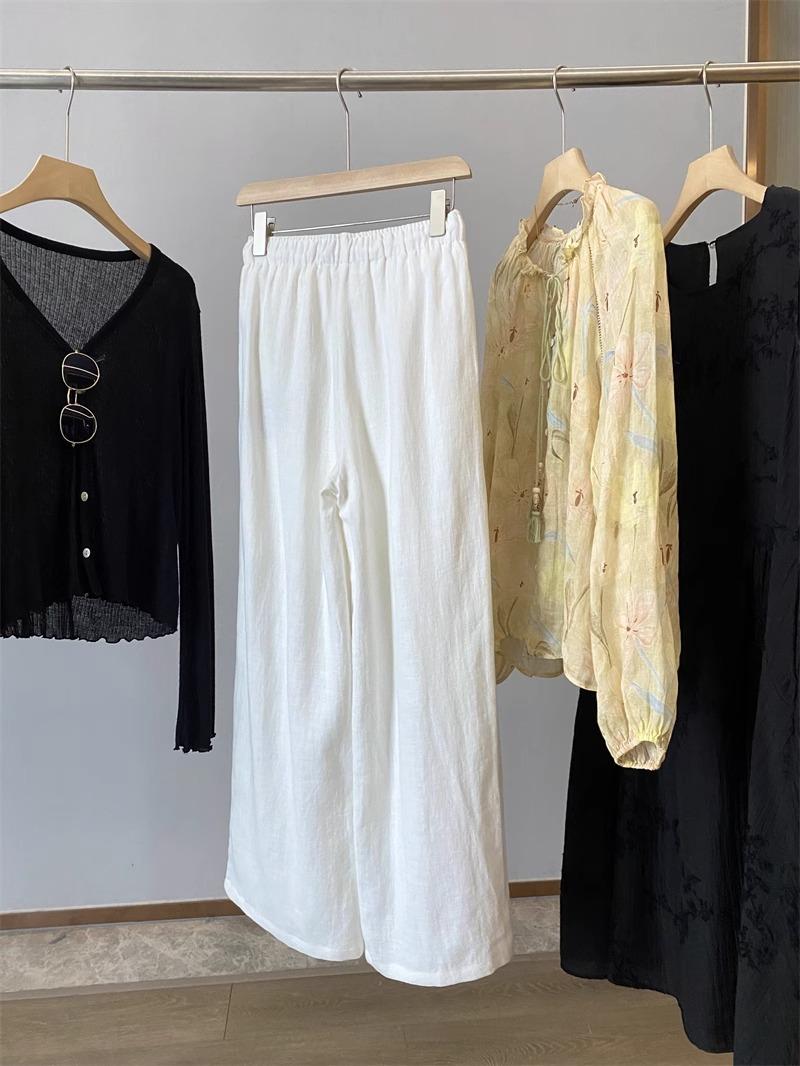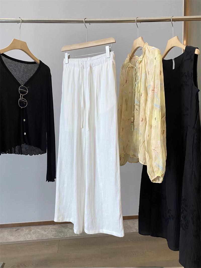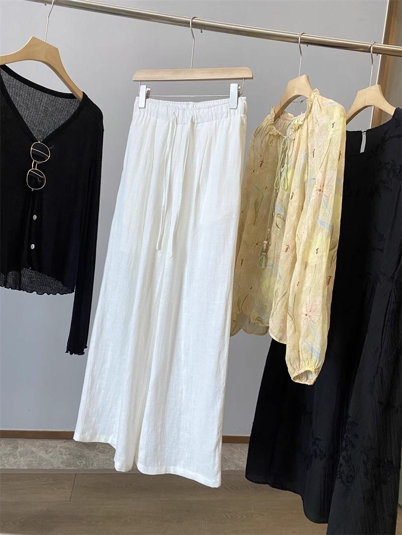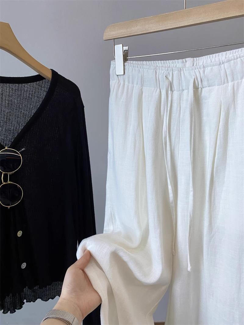 Pantalones de Lino Blanco de Pierna Ancha con Cintura Elástica con Cordón Estilo Vacacional Delgado para Mujer Verano 2025 Nuevo Estilo