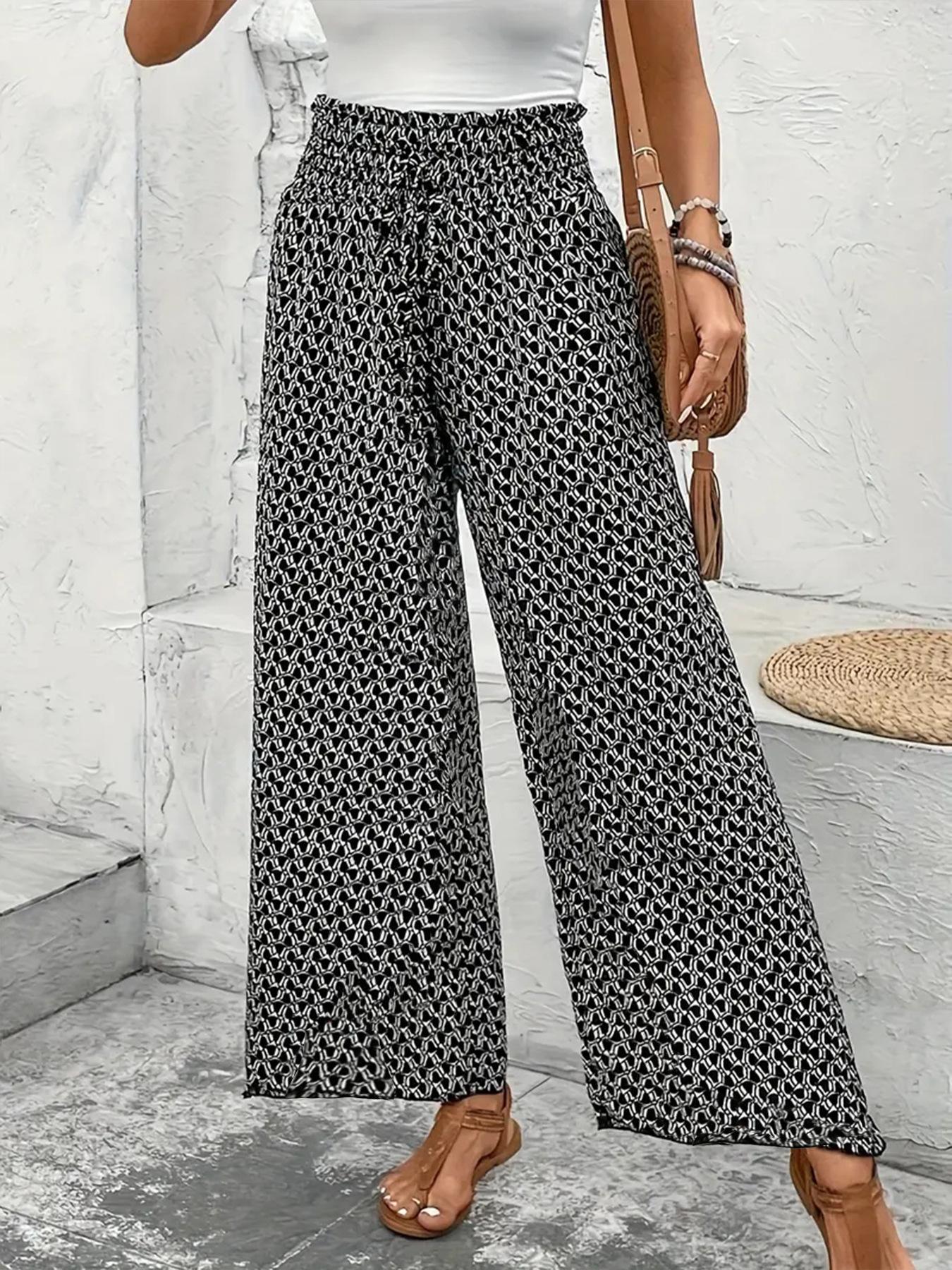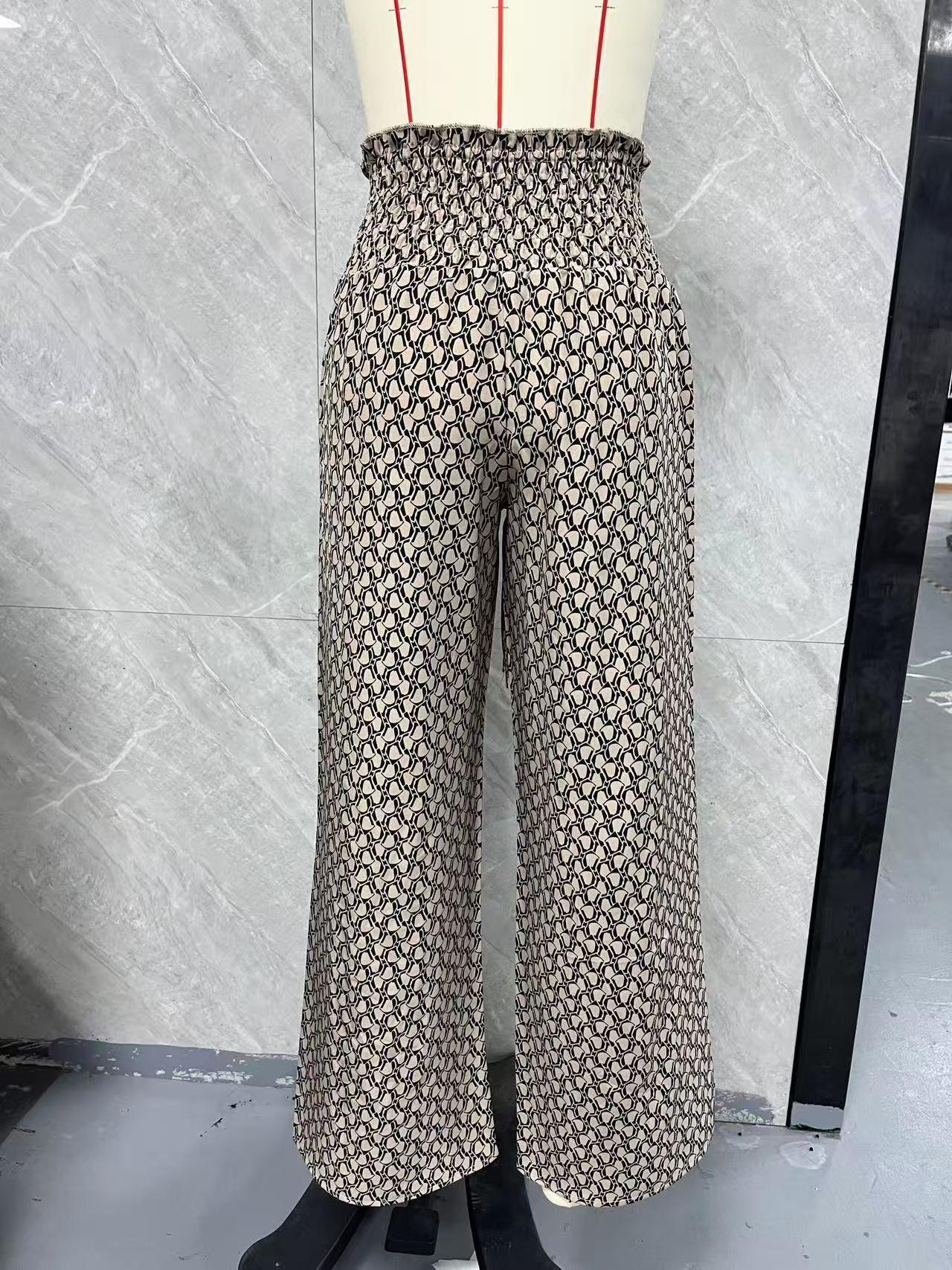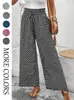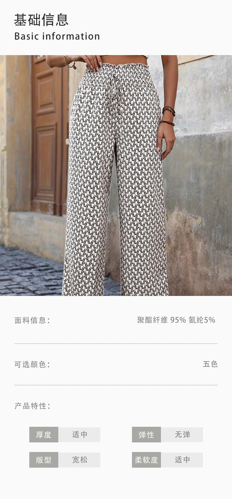 Pantalones casuales de moda europea y americana transfronteriza 2025 Cintura alta Estampado étnico retro Primavera y otoño Sueltos Pierna ancha Pantalones largos de mujer