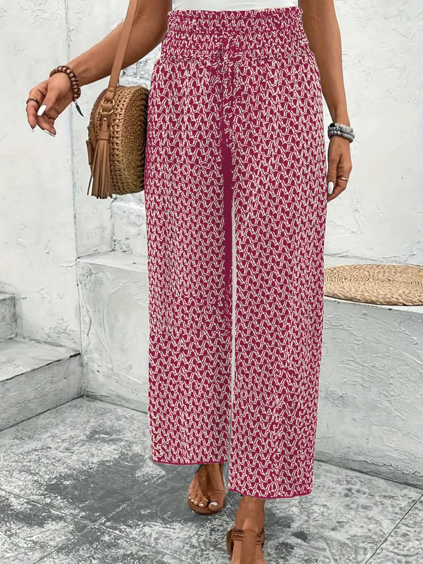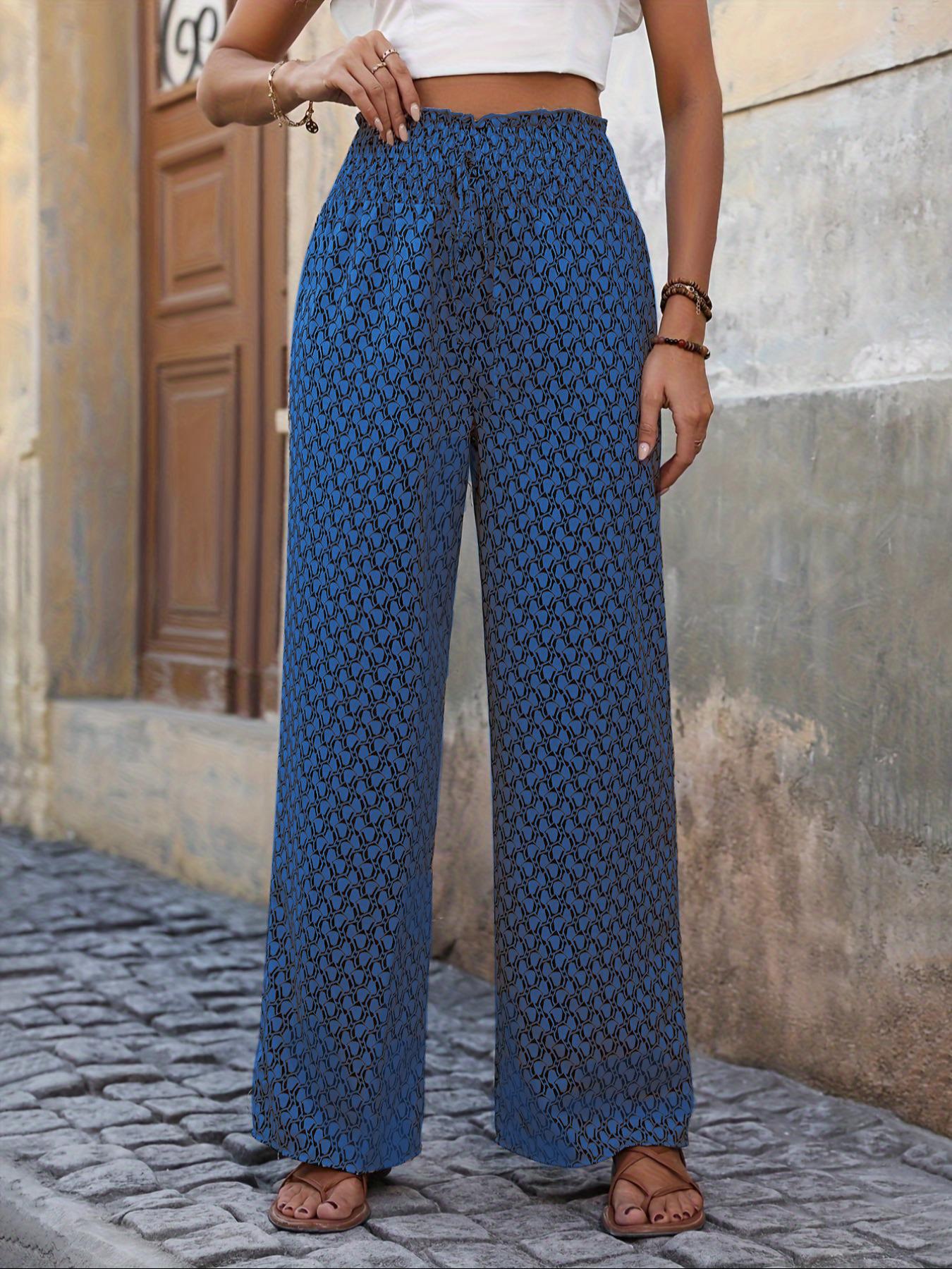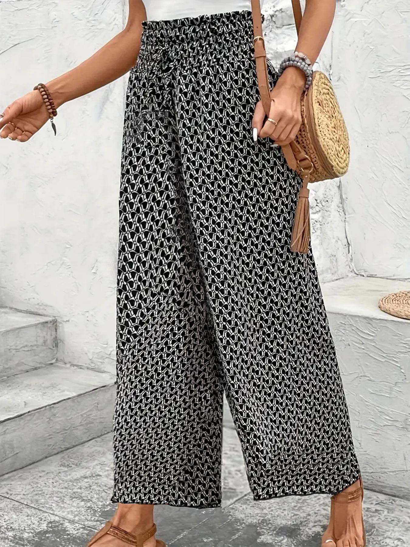 Pantalones casuales de moda europea y americana transfronteriza 2025 Cintura alta Estampado étnico retro Primavera y otoño Sueltos Pierna ancha Pantalones largos de mujer