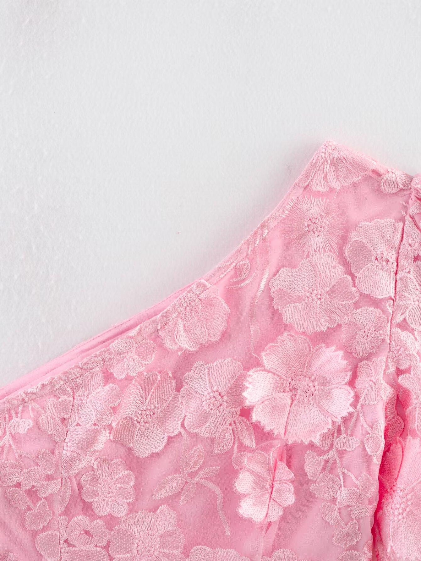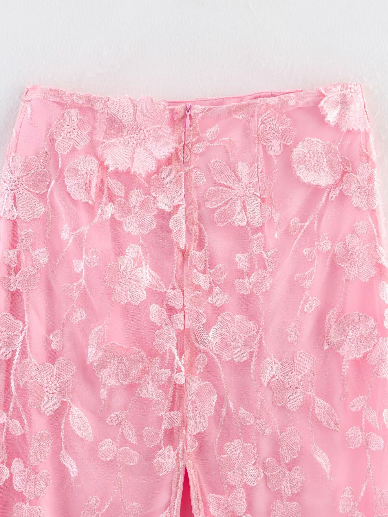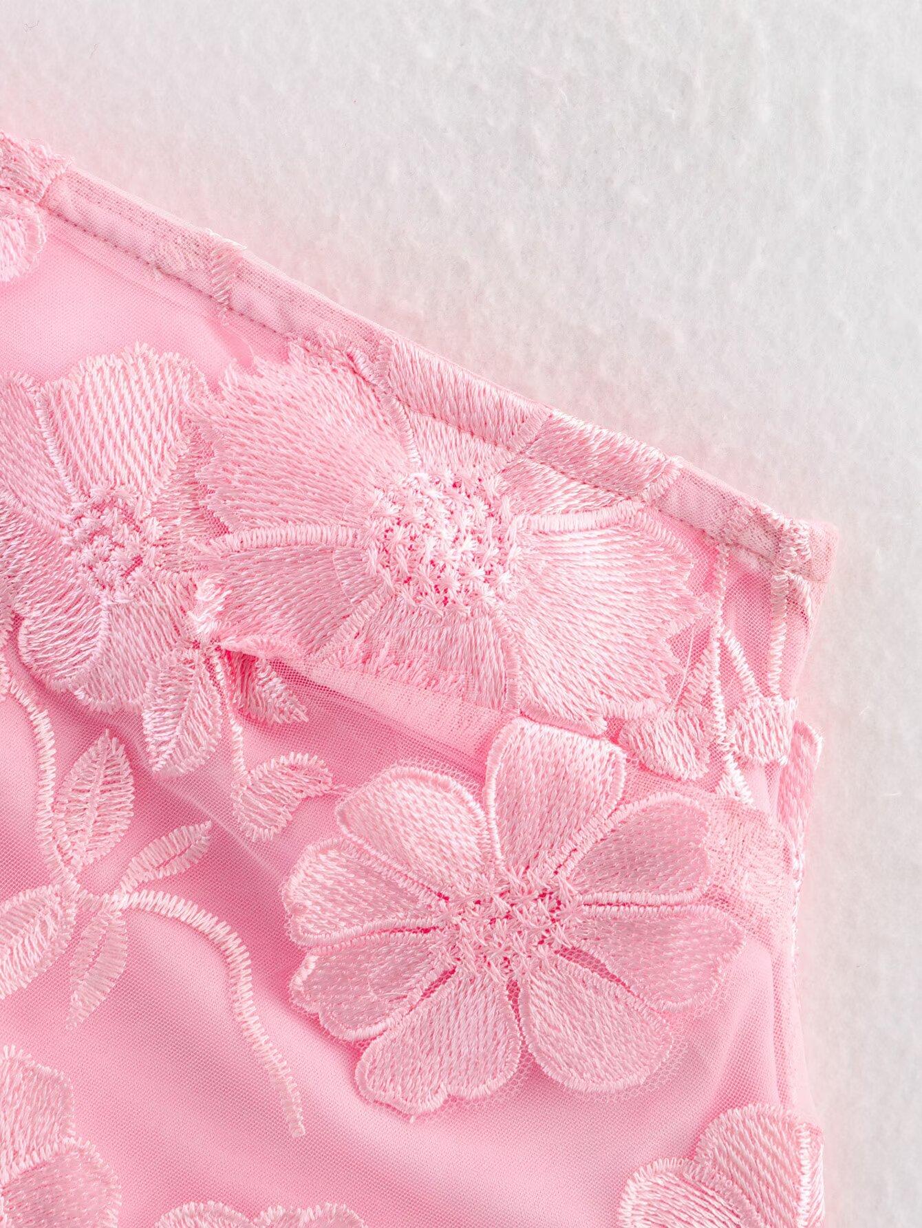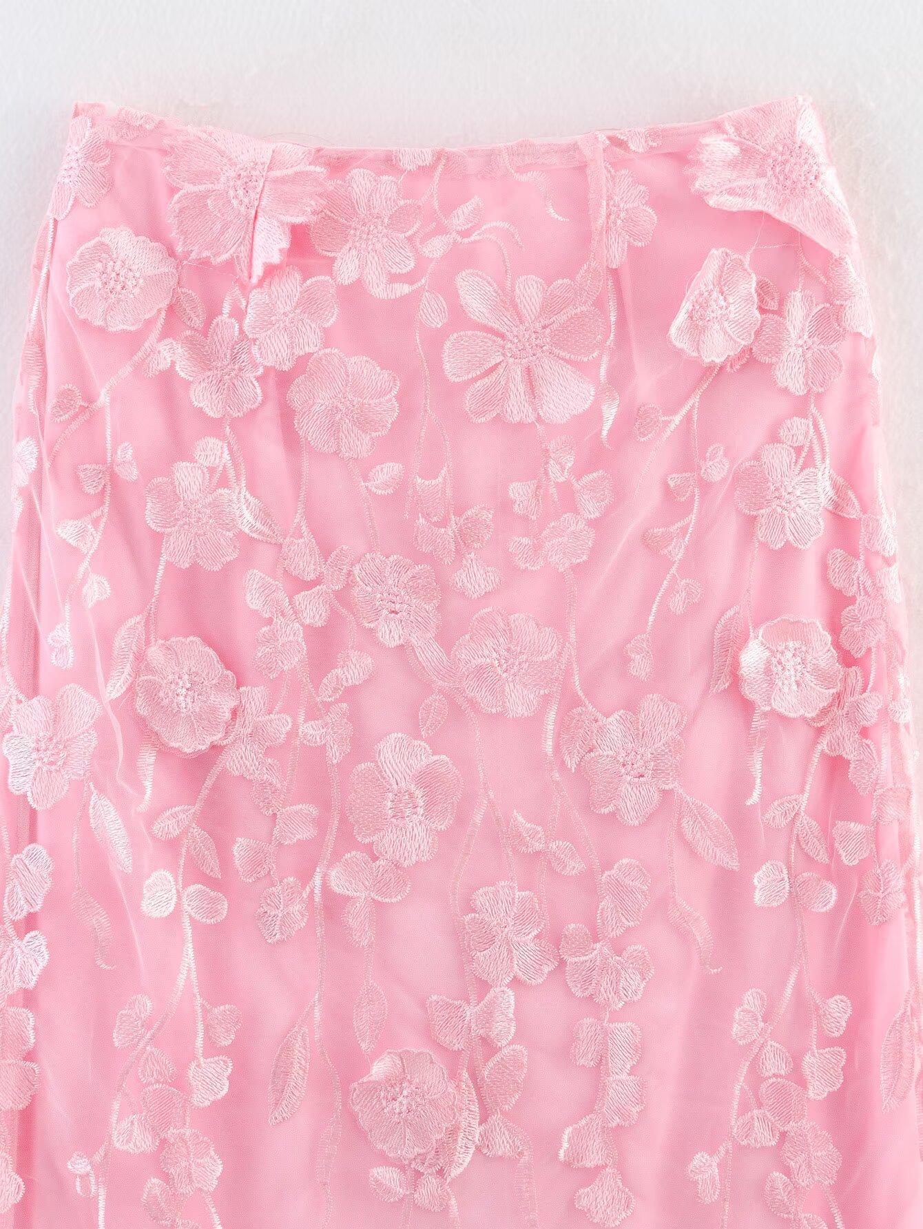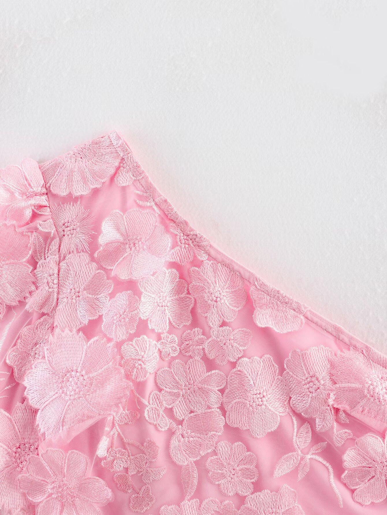 2025 Nueva Ropa de Verano para Mujer Estilo Europeo y Americano Moda Recorte Flor Estéreo Top Corto y Traje de Falda