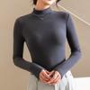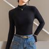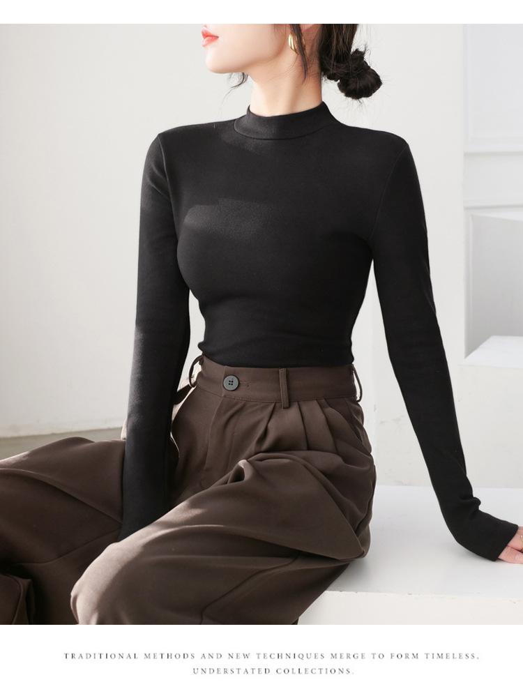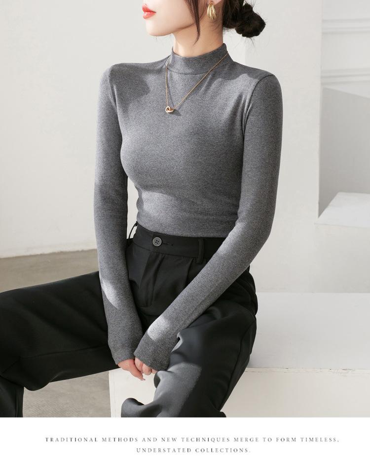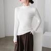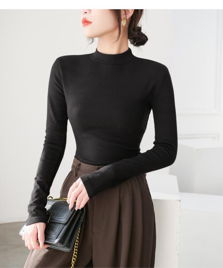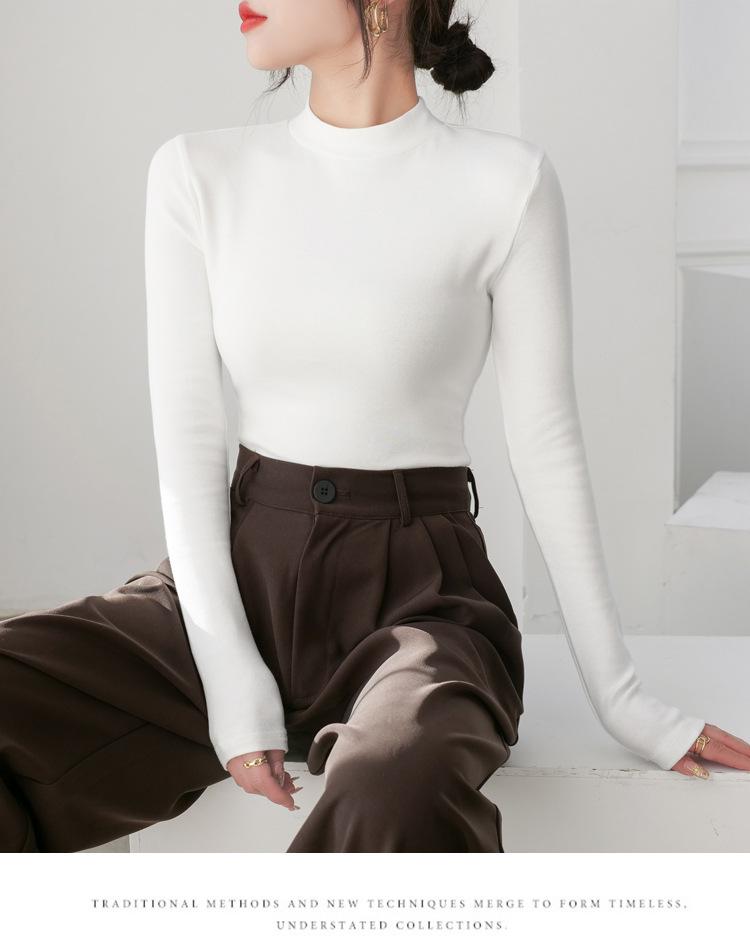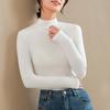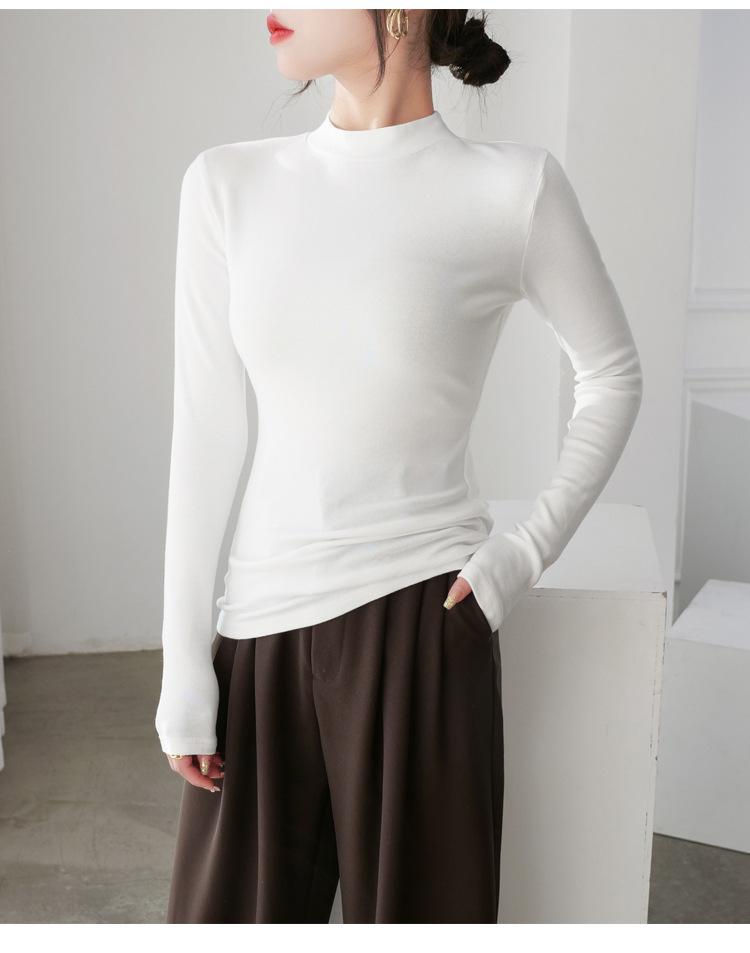Camiseta Base de Terciopelo para Mujer Otoño e Invierno Blanca Cuello Vertical Pequeño con Forro Polar Engrosada Cuello Medio Camiseta de Cuello Medio Alto Ajustada