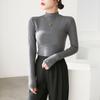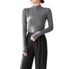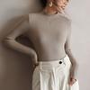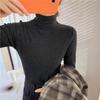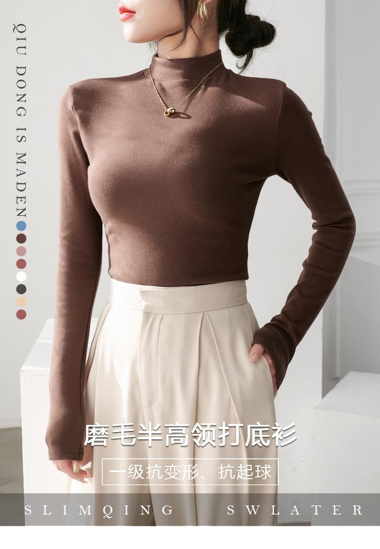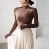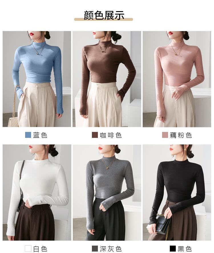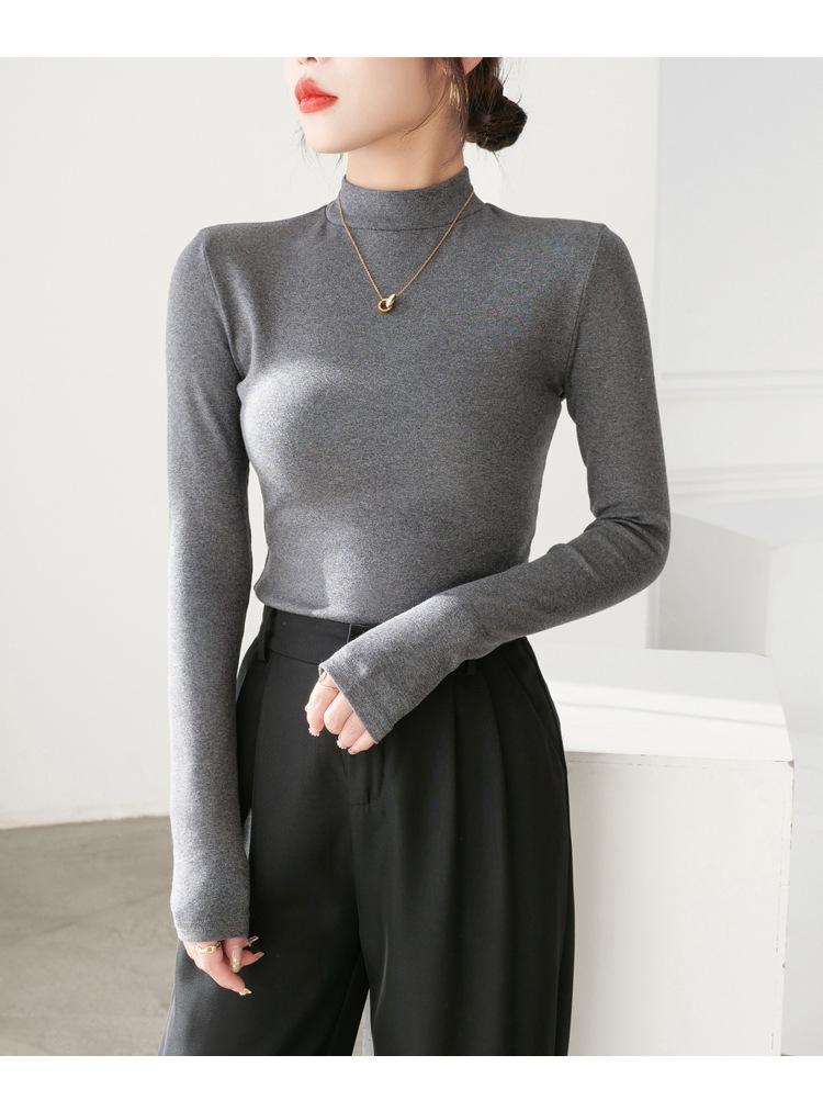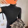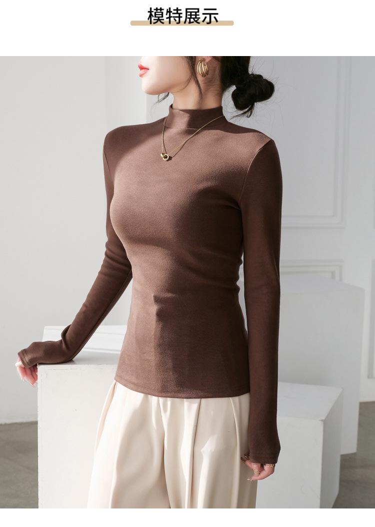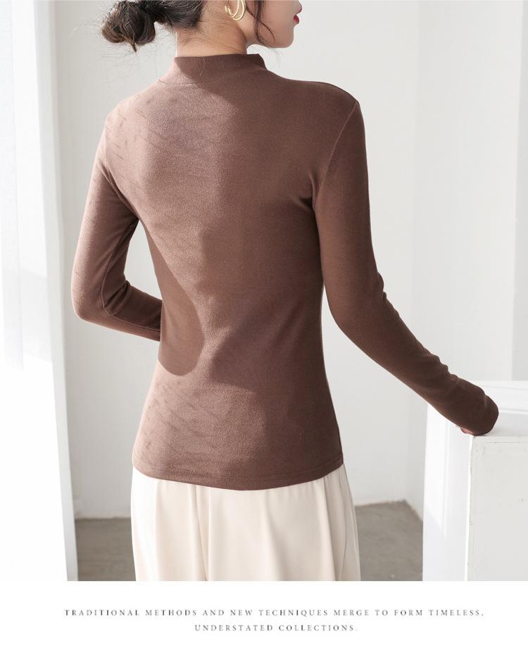 Camiseta Base de Terciopelo para Mujer Otoño e Invierno Blanca Cuello Vertical Pequeño con Forro Polar Engrosada Cuello Medio Camiseta de Cuello Medio Alto Ajustada