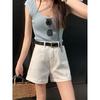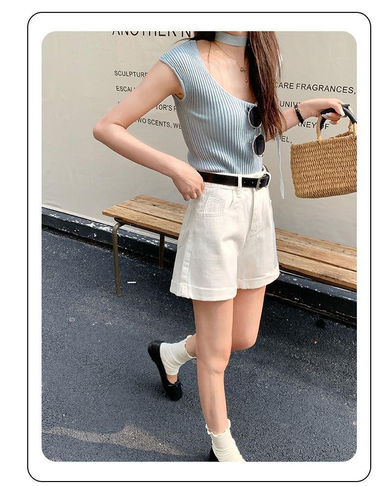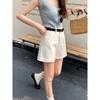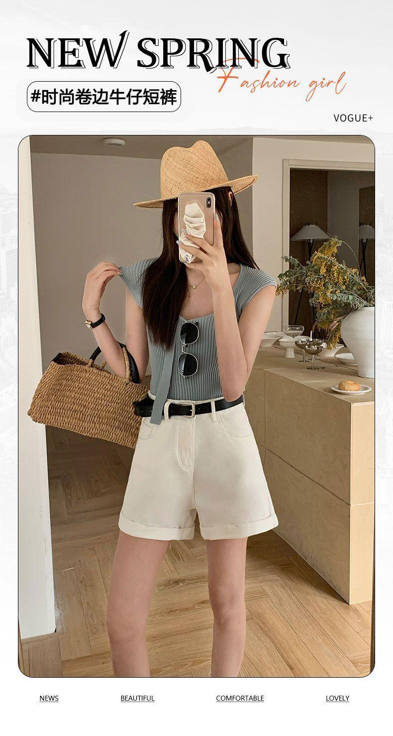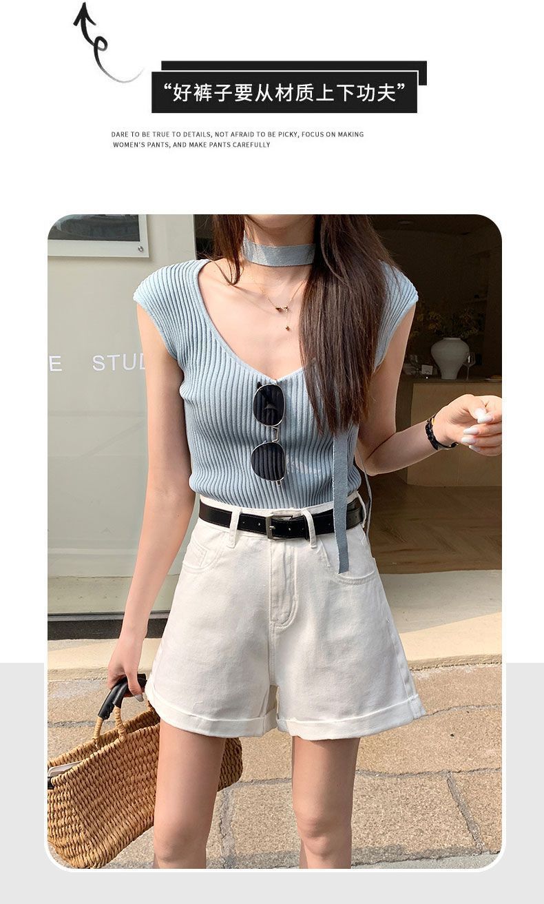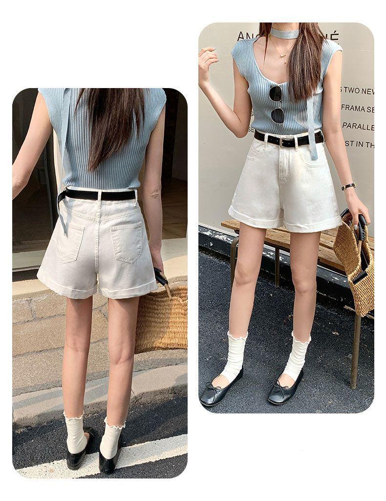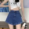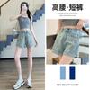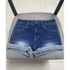 Shorts de mezclilla blancos rizados para mujer Verano 2025 Nuevo estilo caliente Cintura alta Americano Sexy Línea A Look adelgazante Pantalones cortos