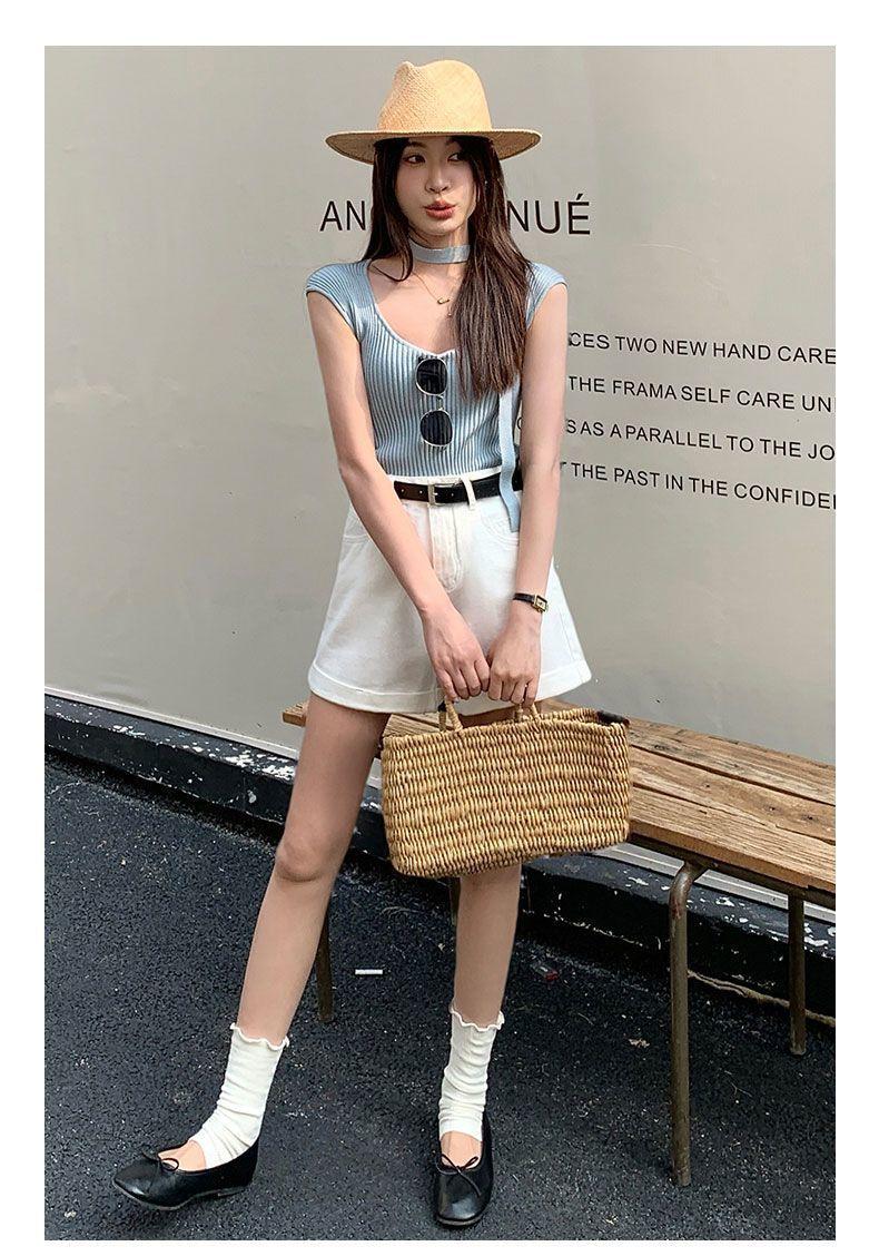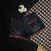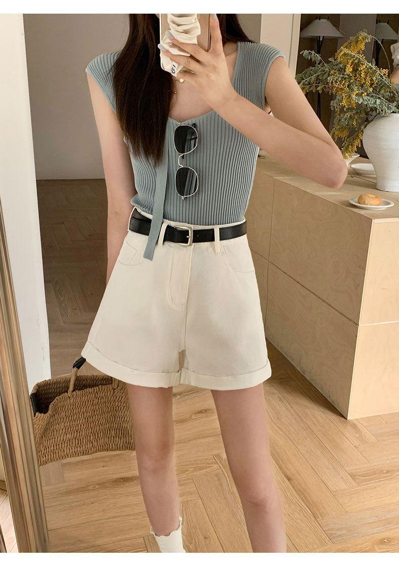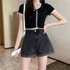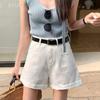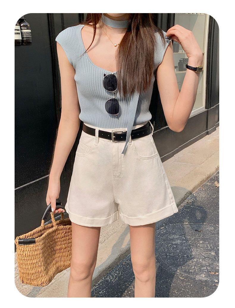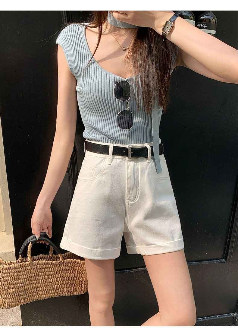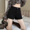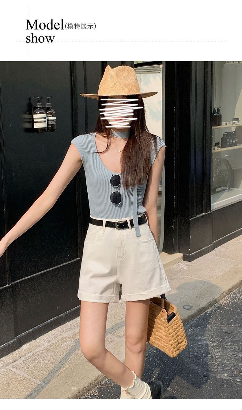 Shorts de mezclilla blancos rizados para mujer Verano 2025 Nuevo estilo caliente Cintura alta Americano Sexy Línea A Look adelgazante Pantalones cortos
