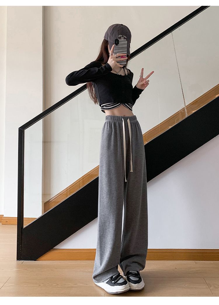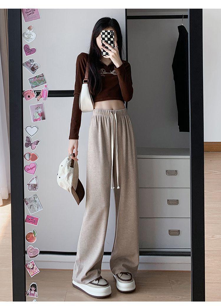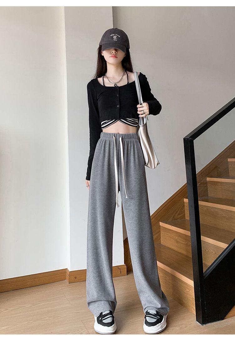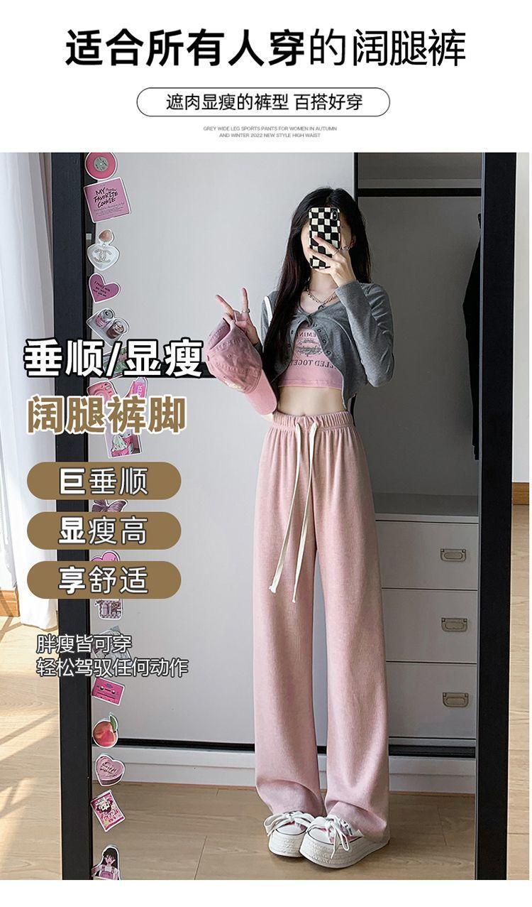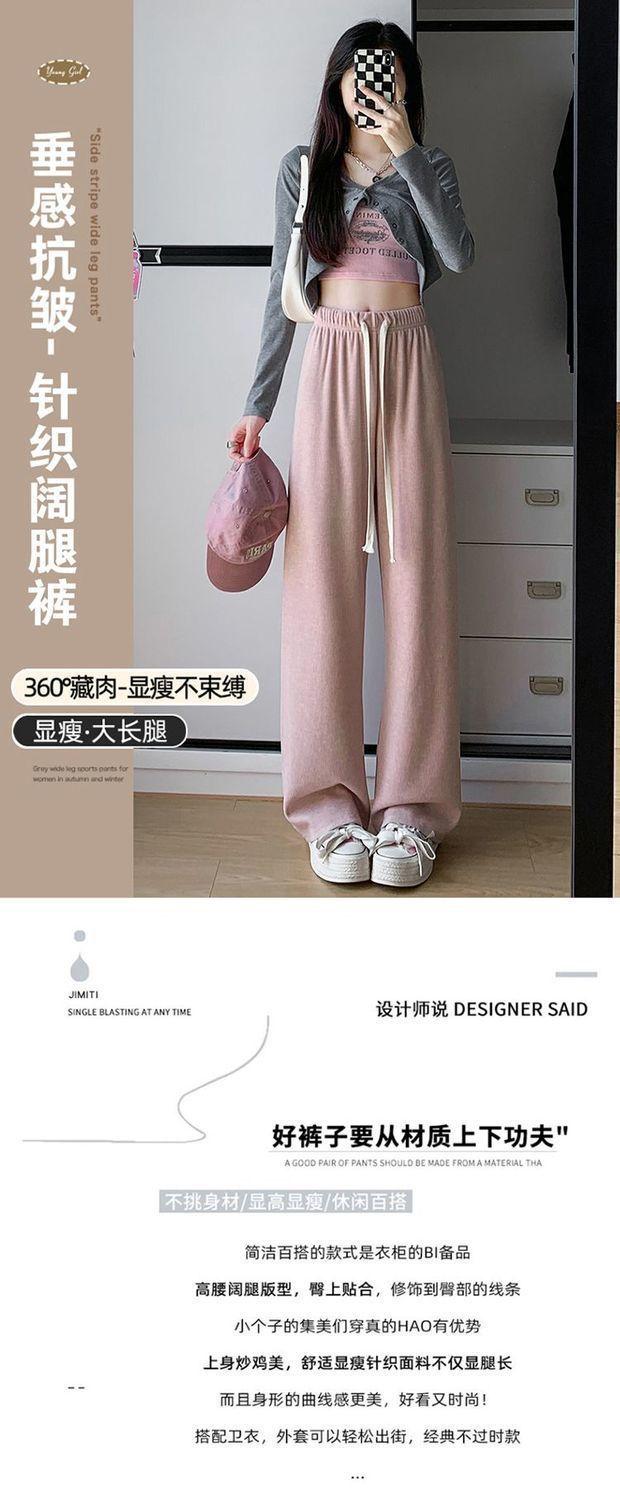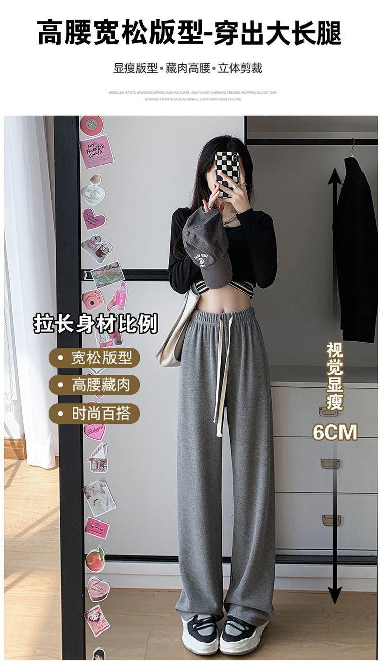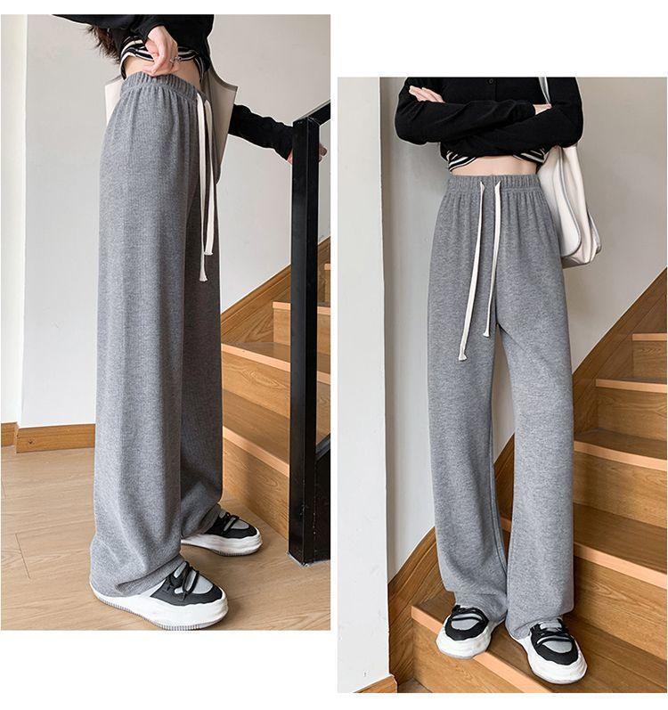 Pantalones de Pierna Ancha para Mujer 2024 Nuevo Otoño Sentido de Dosis Pequeño Deportivo Casual Gris Suelto Recto Pantalones de Otoño e Invierno para Mujer