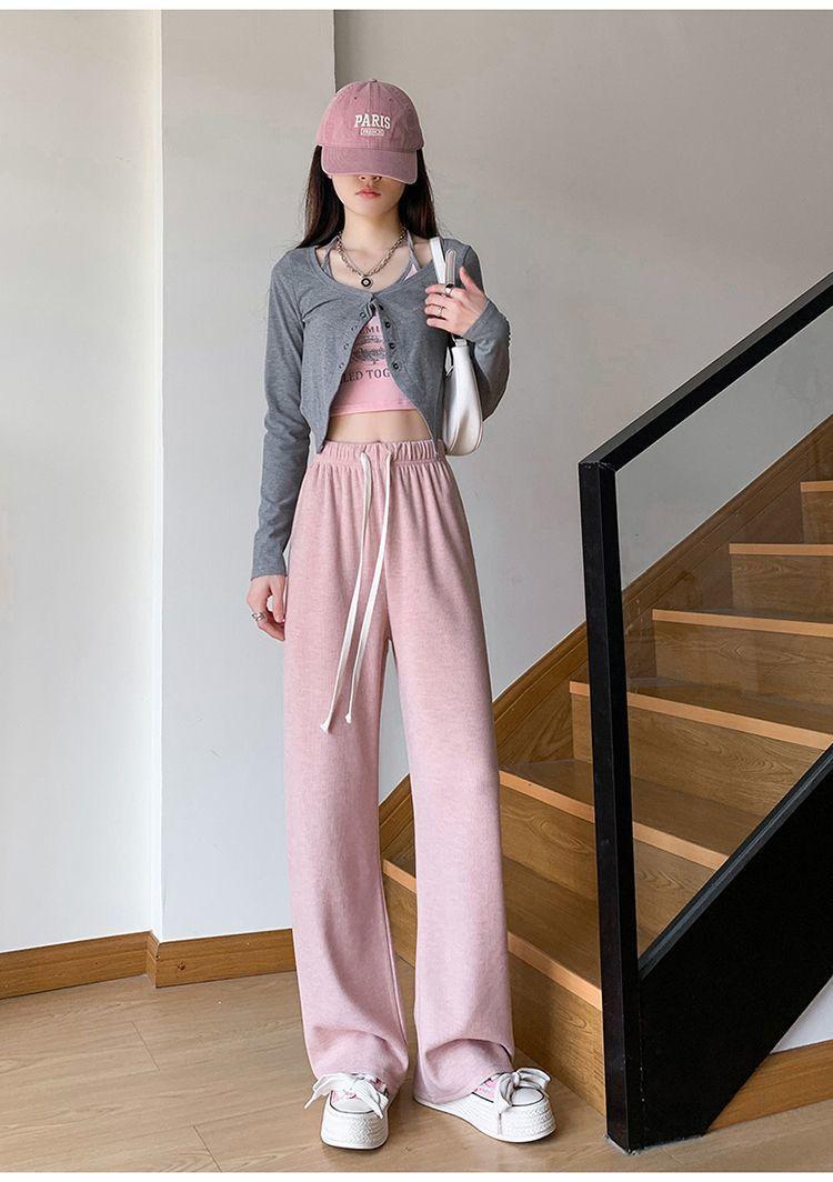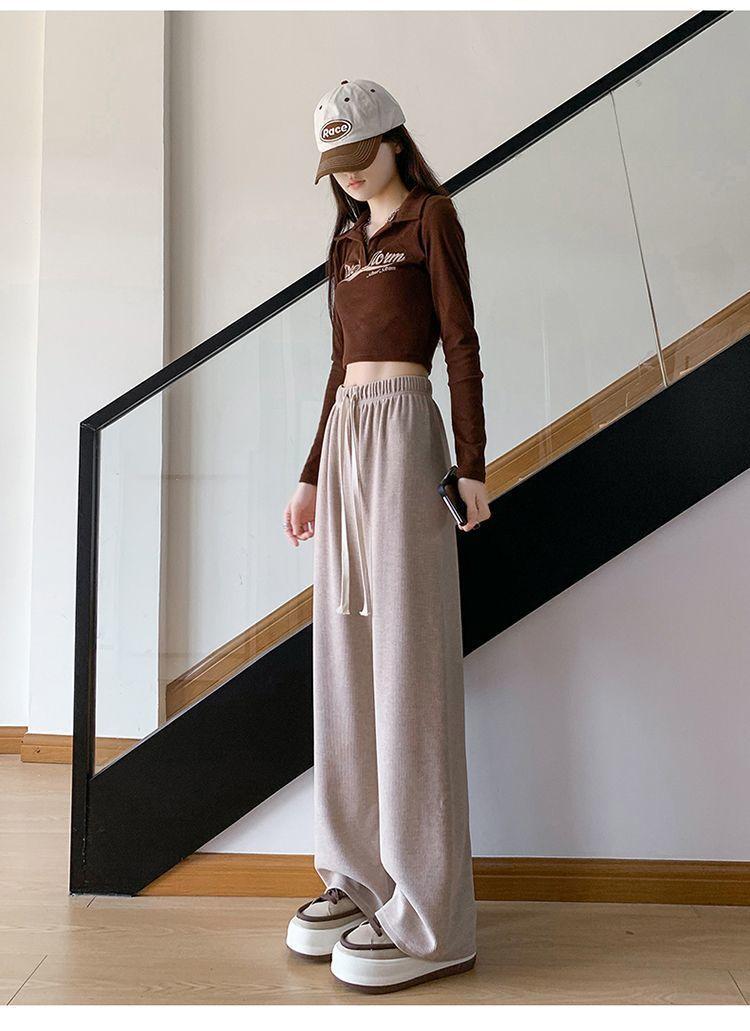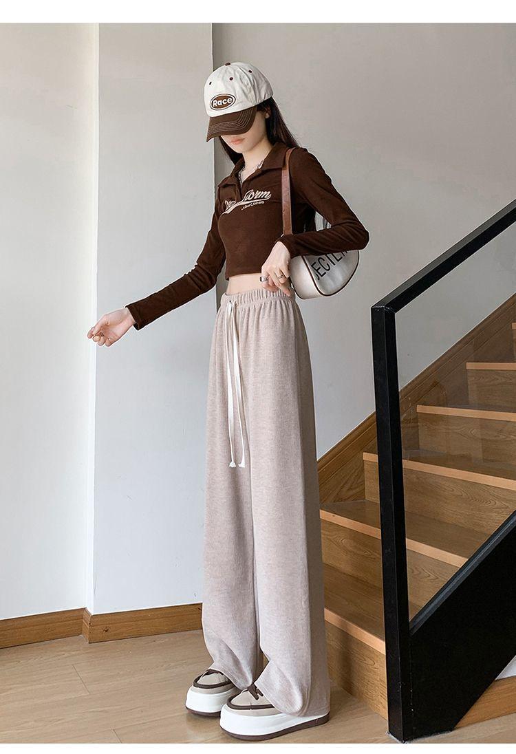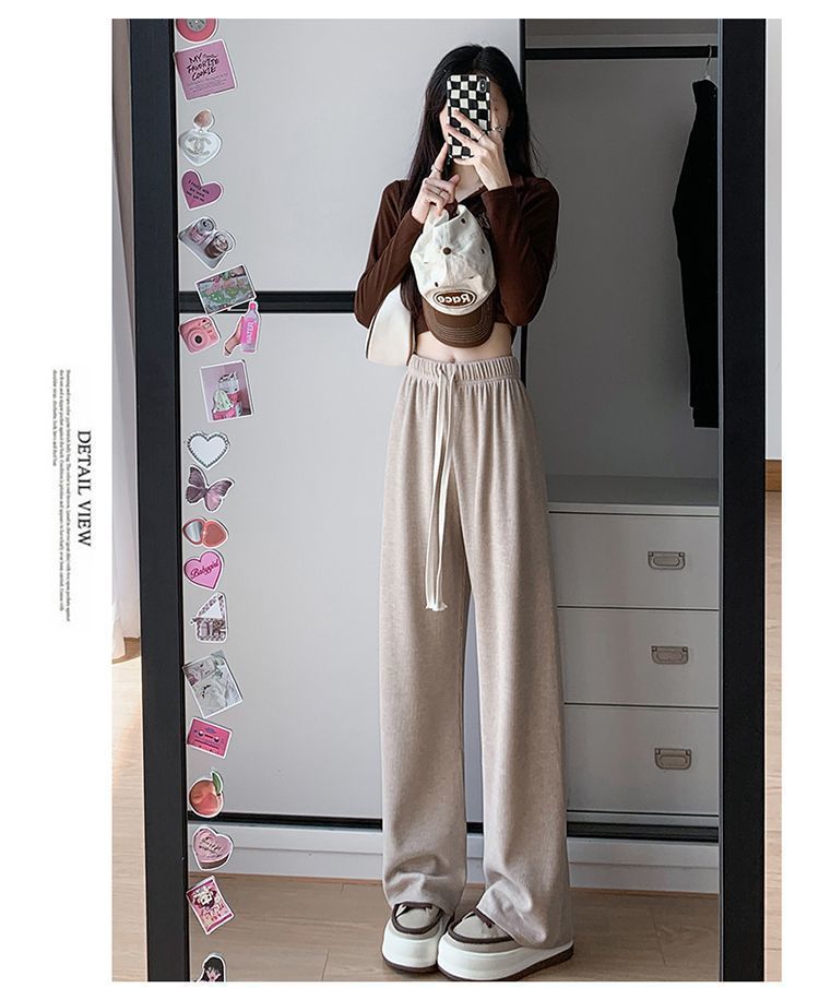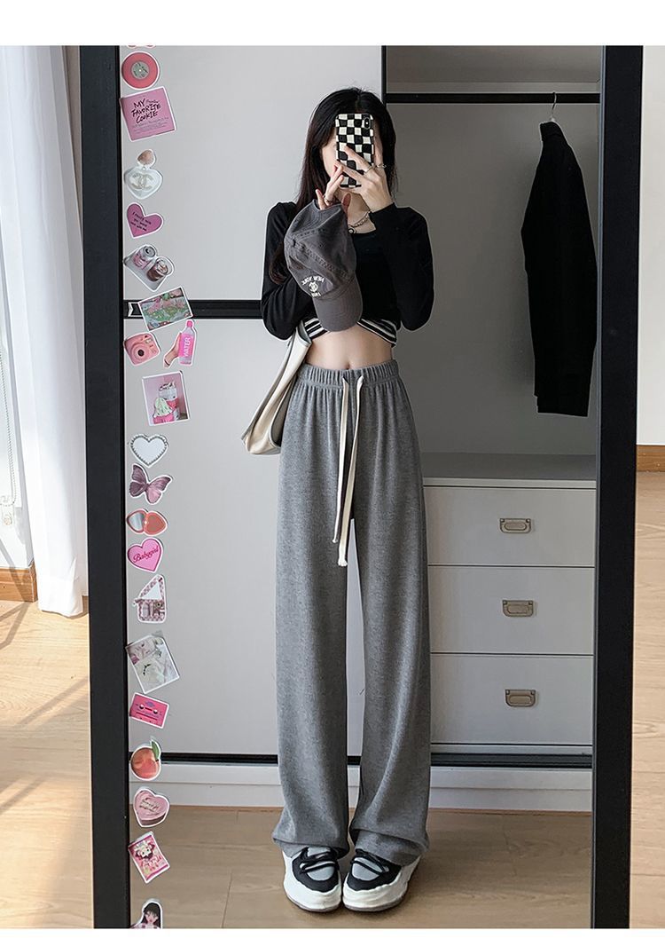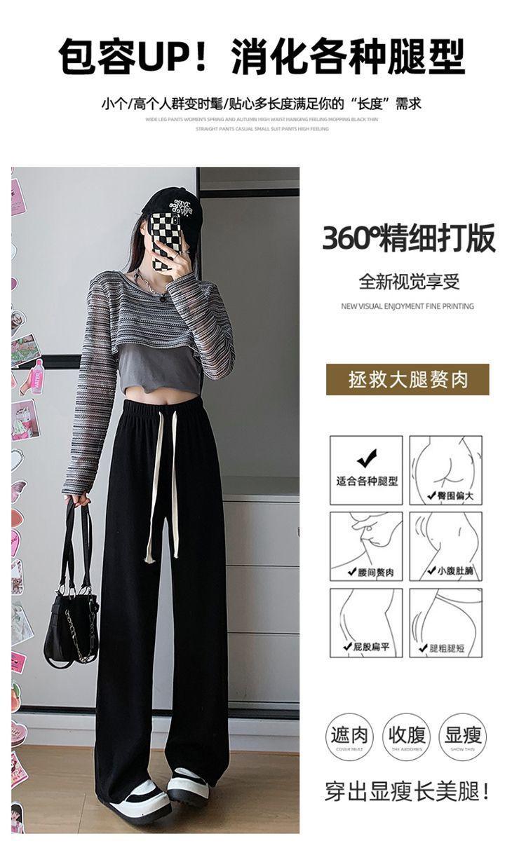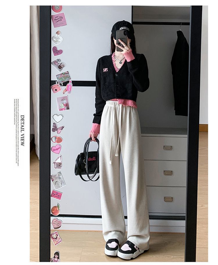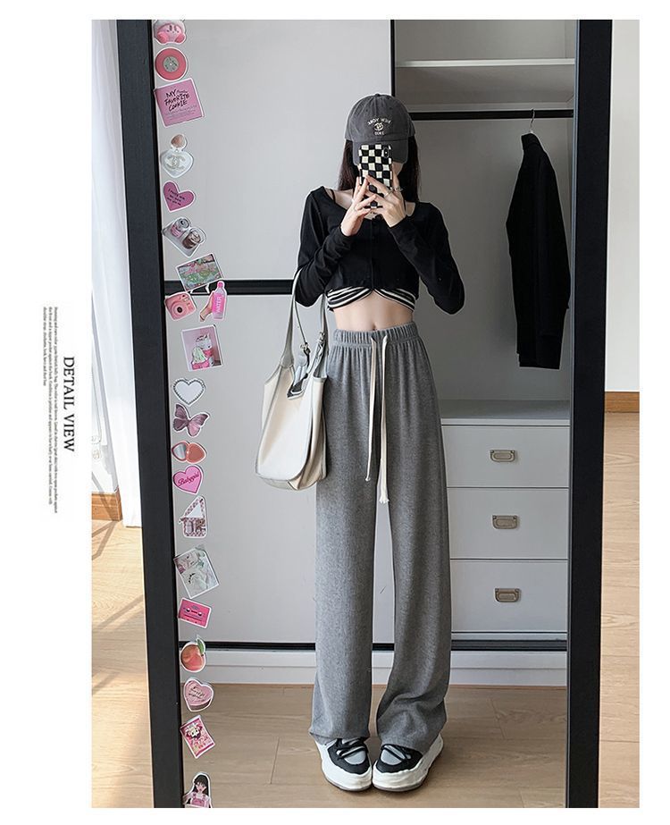 Pantalones de Pierna Ancha para Mujer 2024 Nuevo Otoño Sentido de Dosis Pequeño Deportivo Casual Gris Suelto Recto Pantalones de Otoño e Invierno para Mujer
