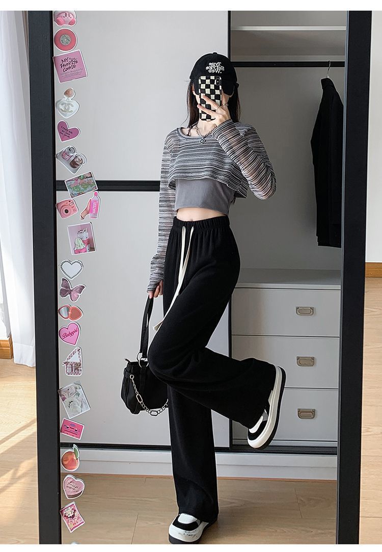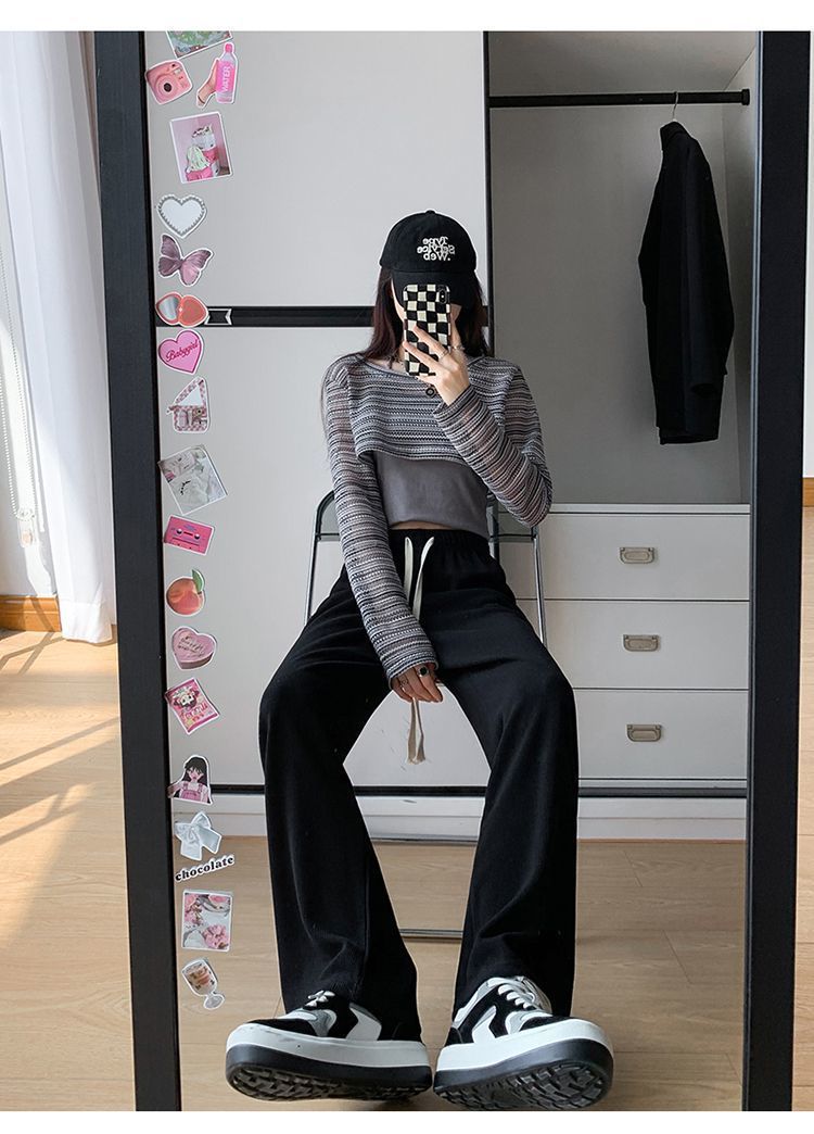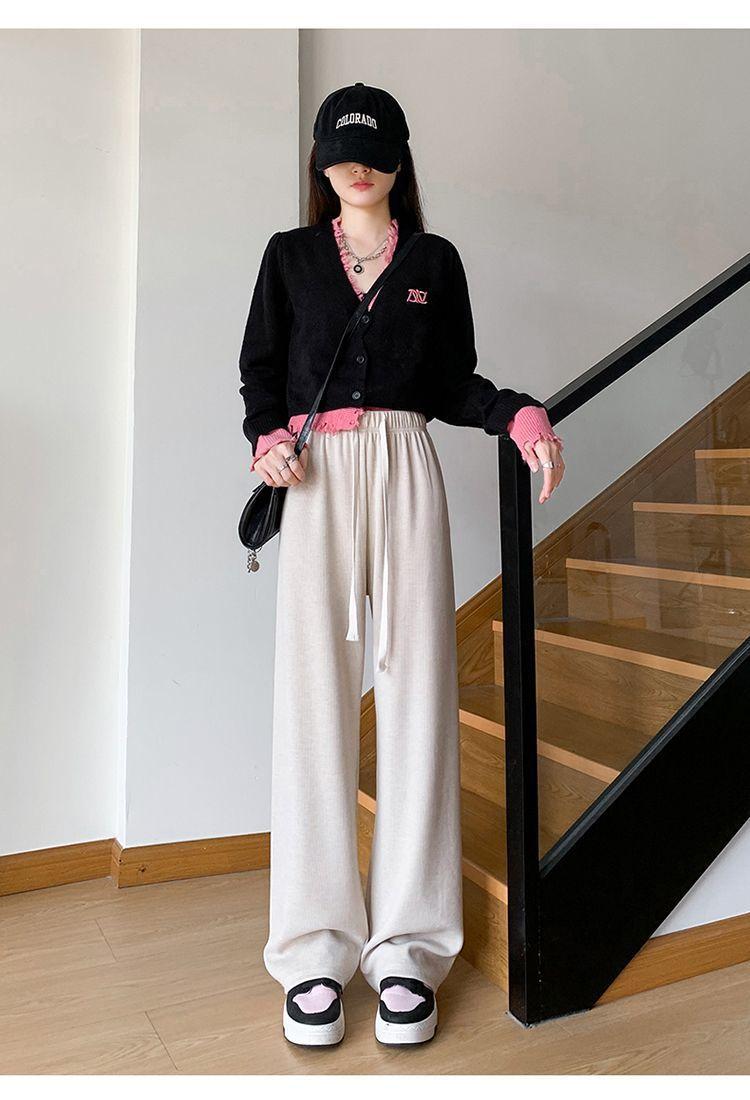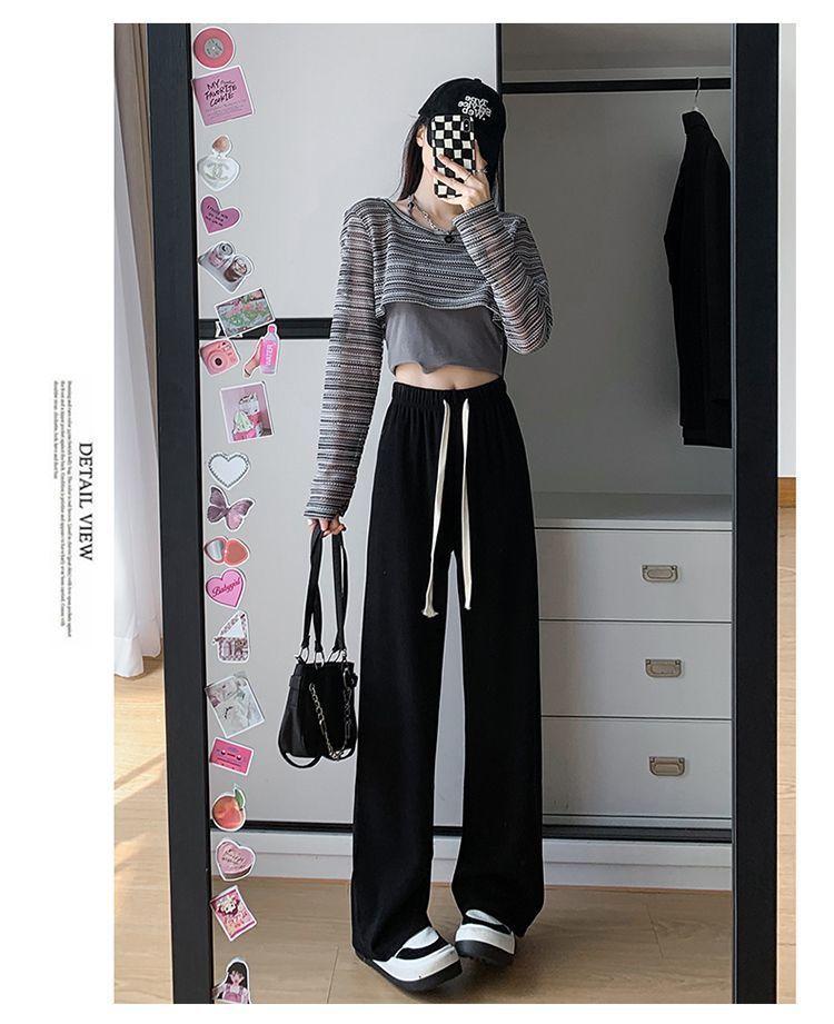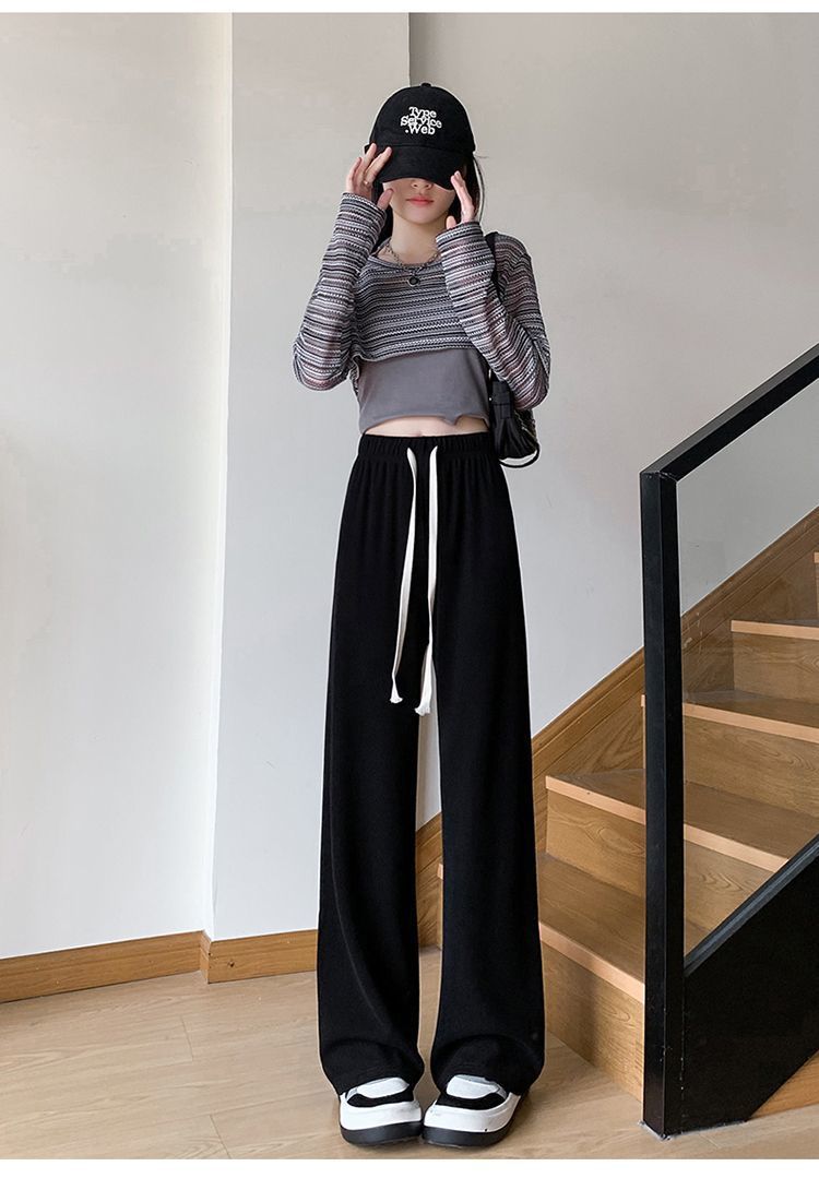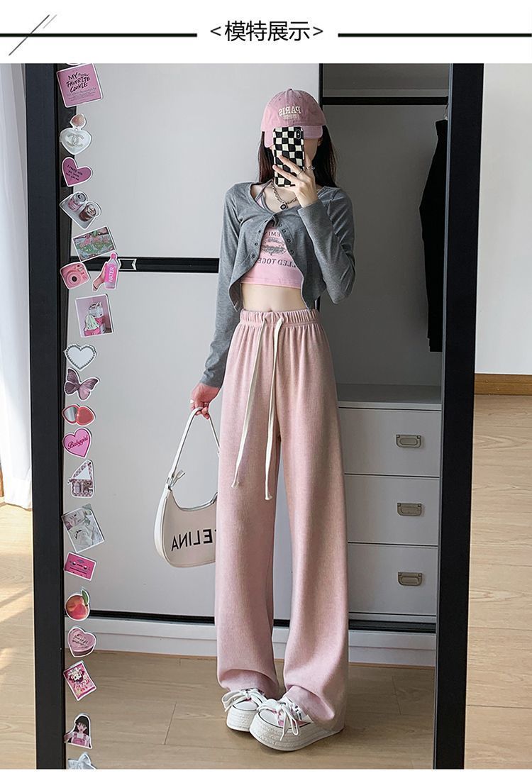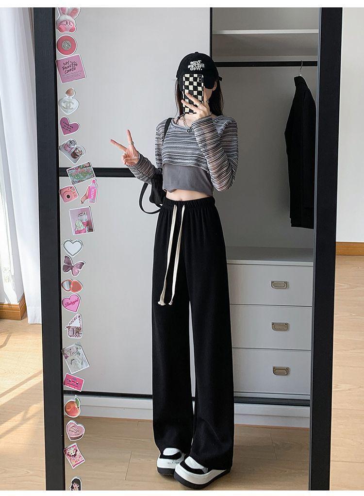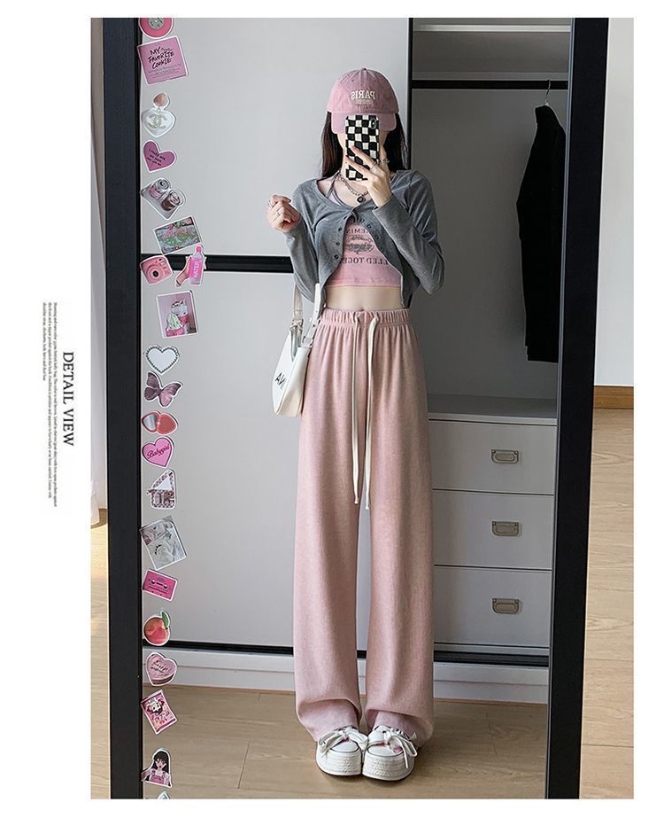 Pantalones de Pierna Ancha para Mujer 2024 Nuevo Otoño Sentido de Dosis Pequeño Deportivo Casual Gris Suelto Recto Pantalones de Otoño e Invierno para Mujer