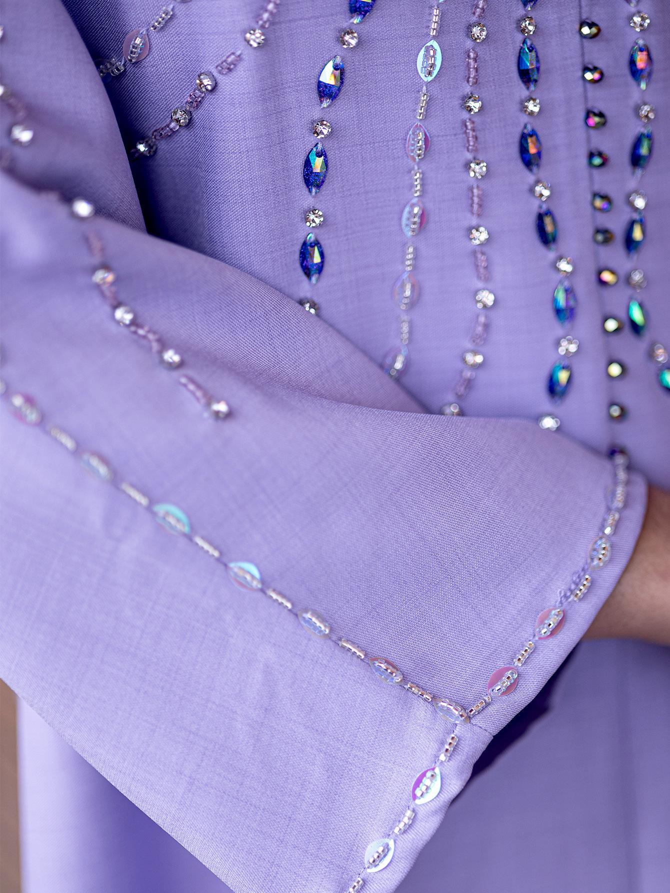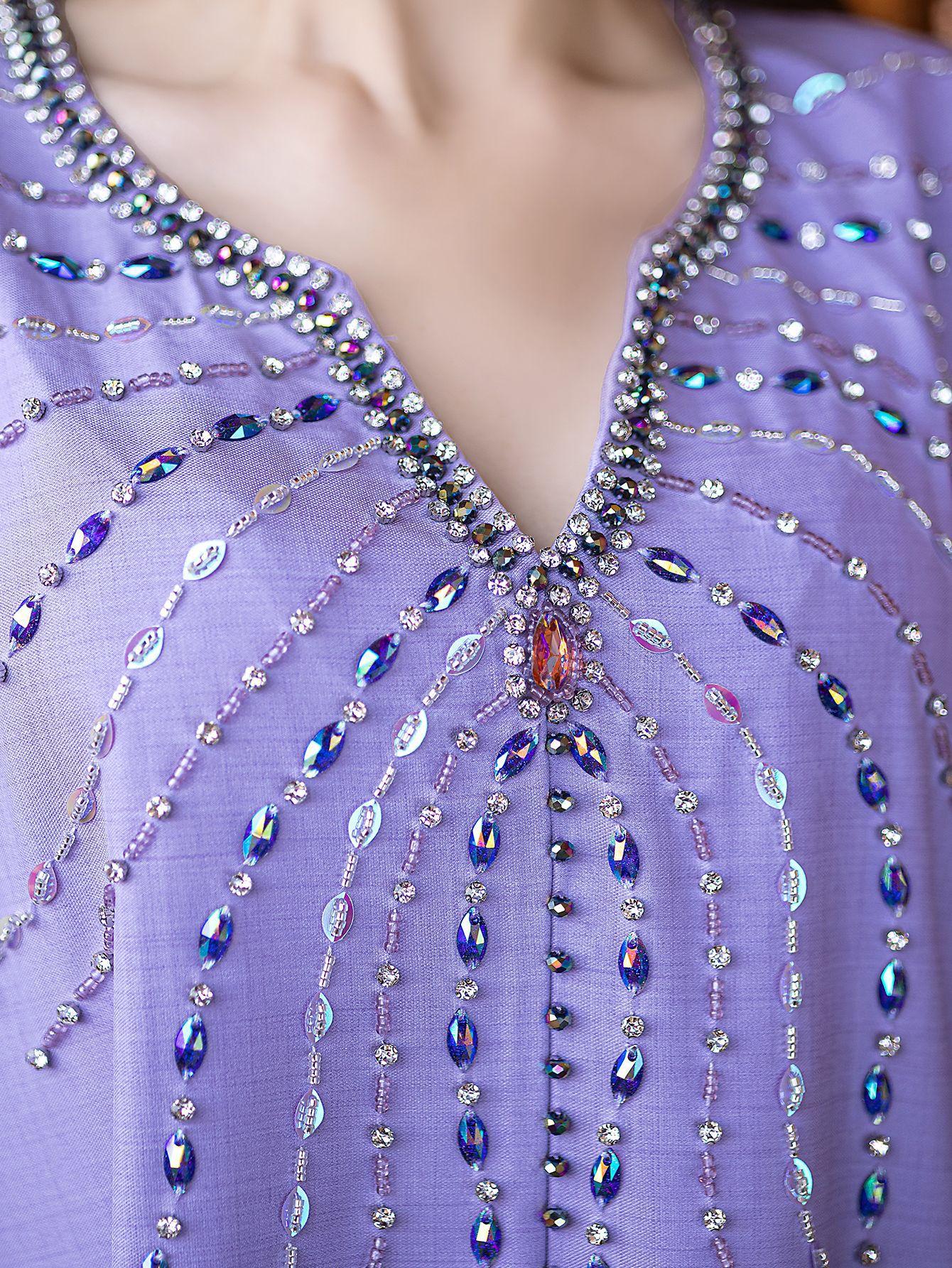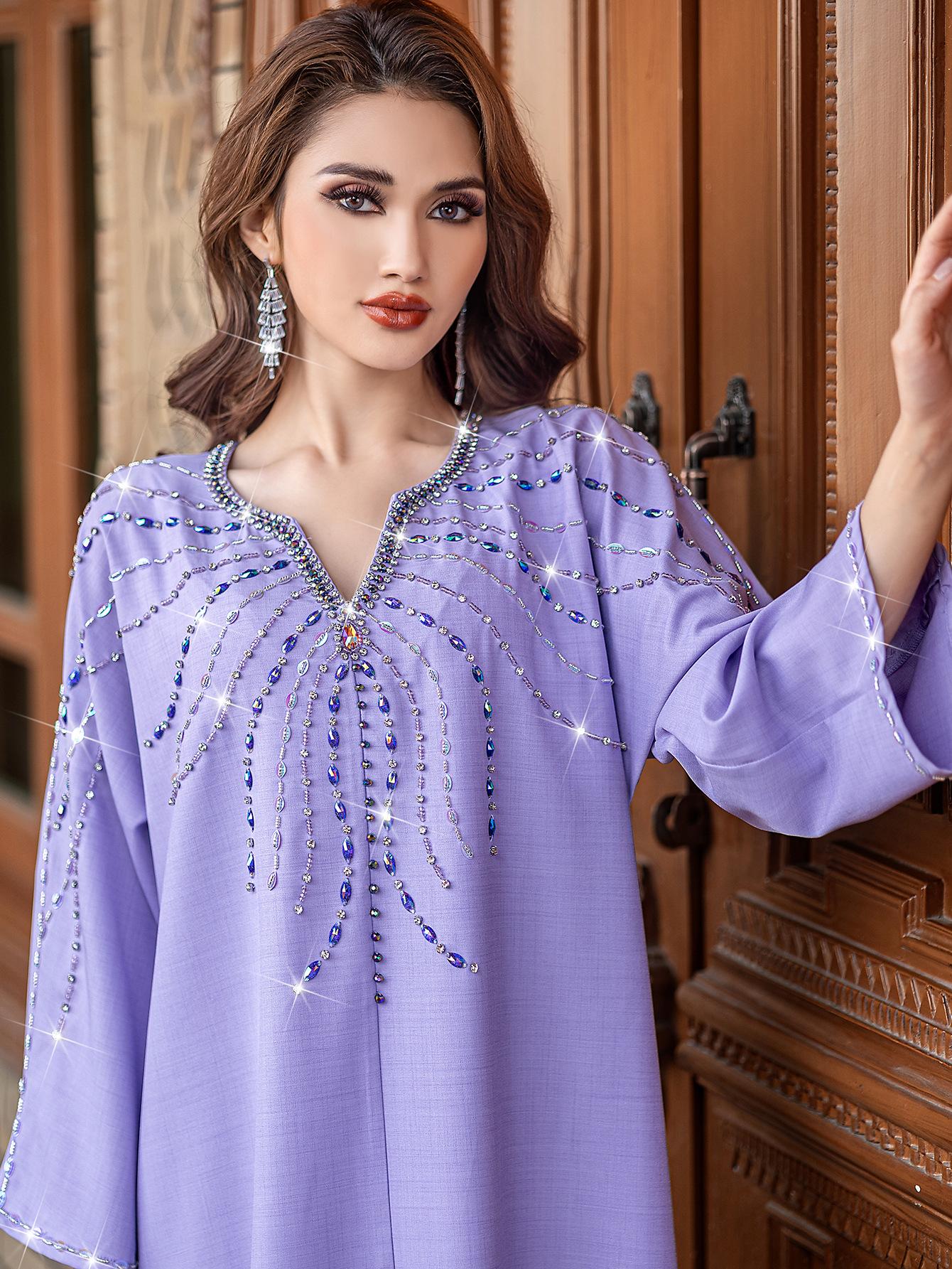 BA5149 Nuevo Vestido Lila Púrpura de Alta Resistencia Cosido a Mano con Pedrería